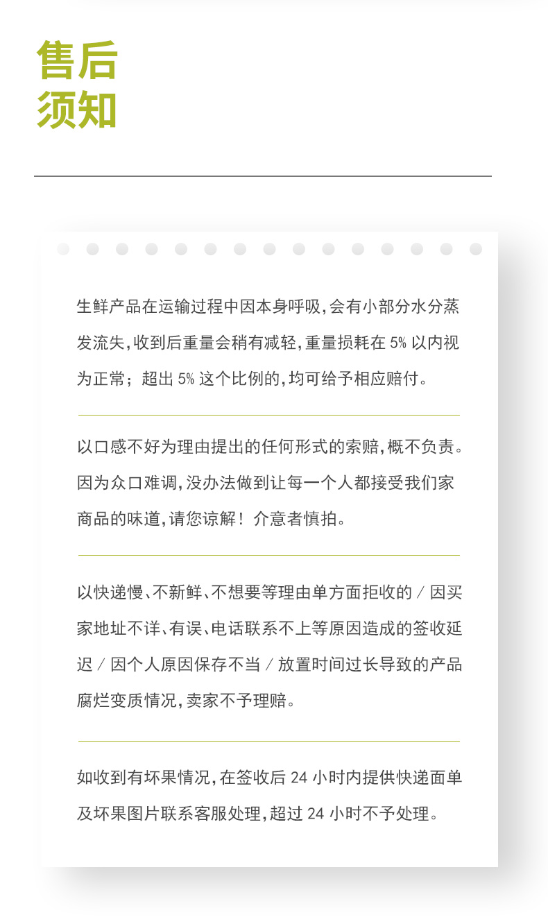 发霉、虫果、死包问题,补发或退款