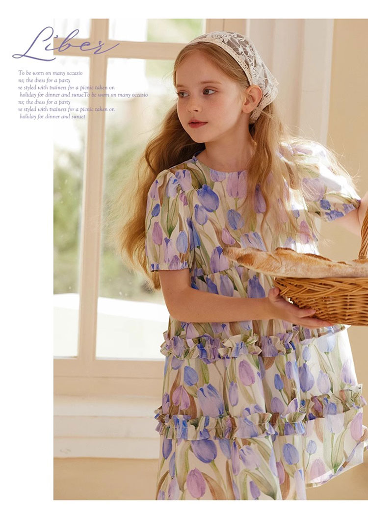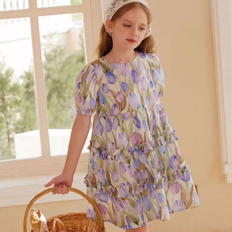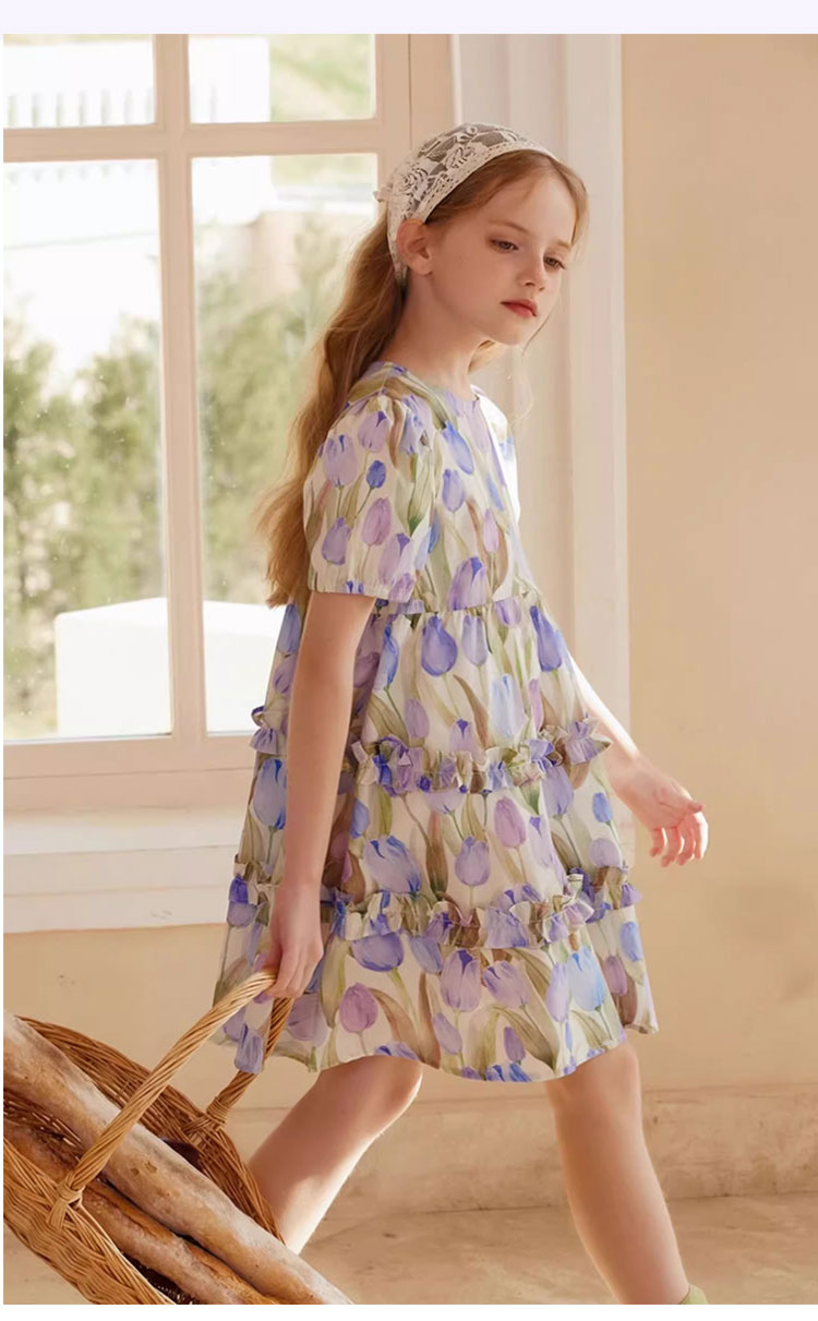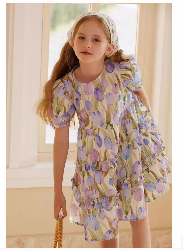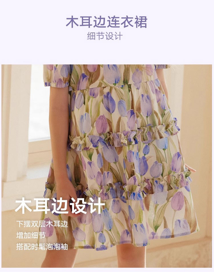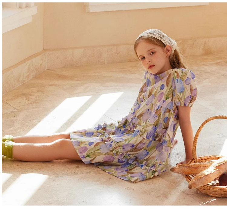 【39.9元起】儿童纯棉连衣裙莫奈花园郁金香女童夏季裙子涂鸦裙