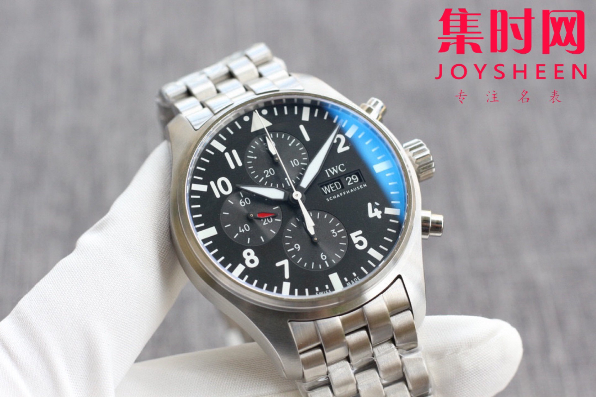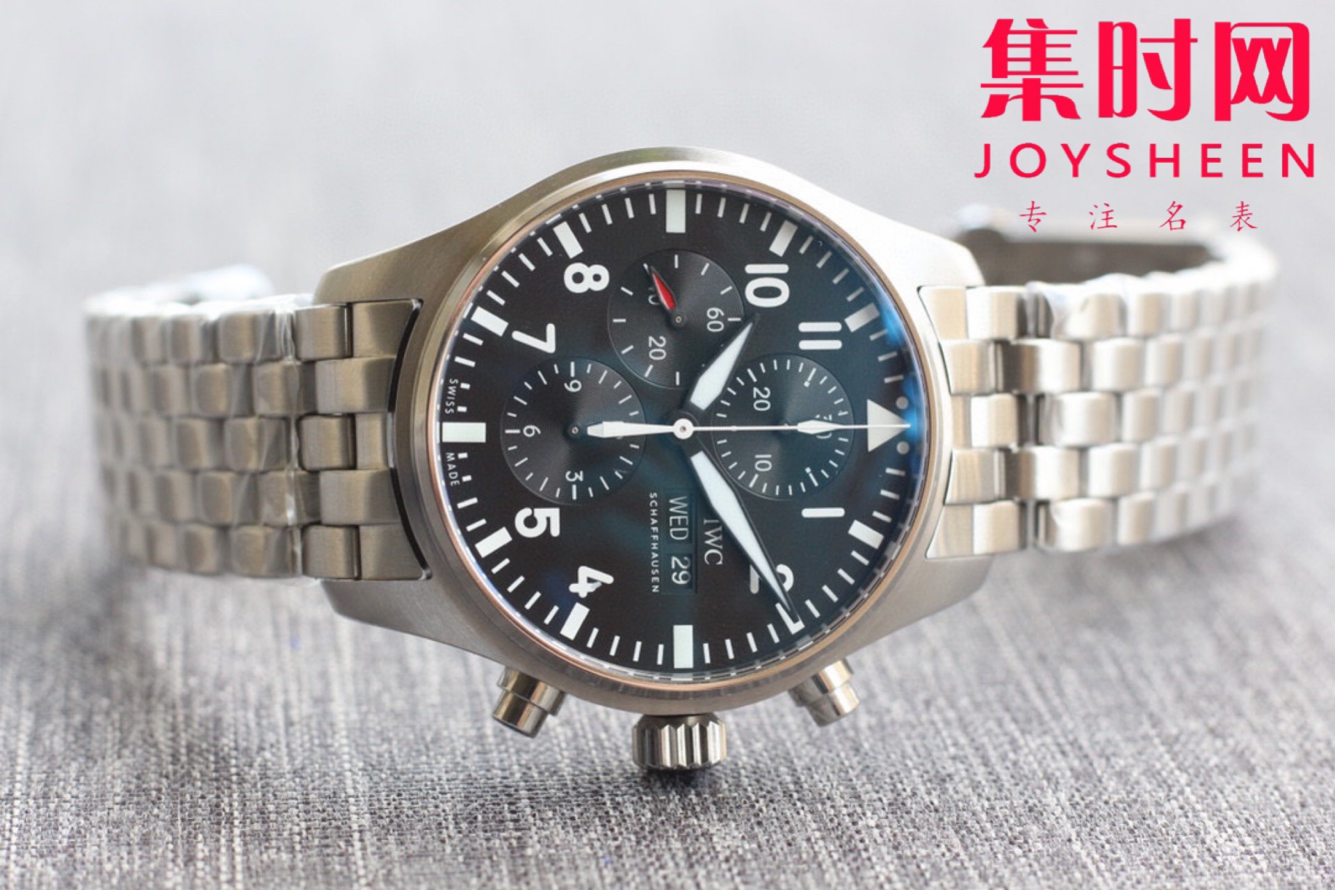 万国IWC3777飞行员计时系列,机芯同步原装,表针尾部微微弯曲,双面防眩晕蓝色镀膜。成就此非凡经典。