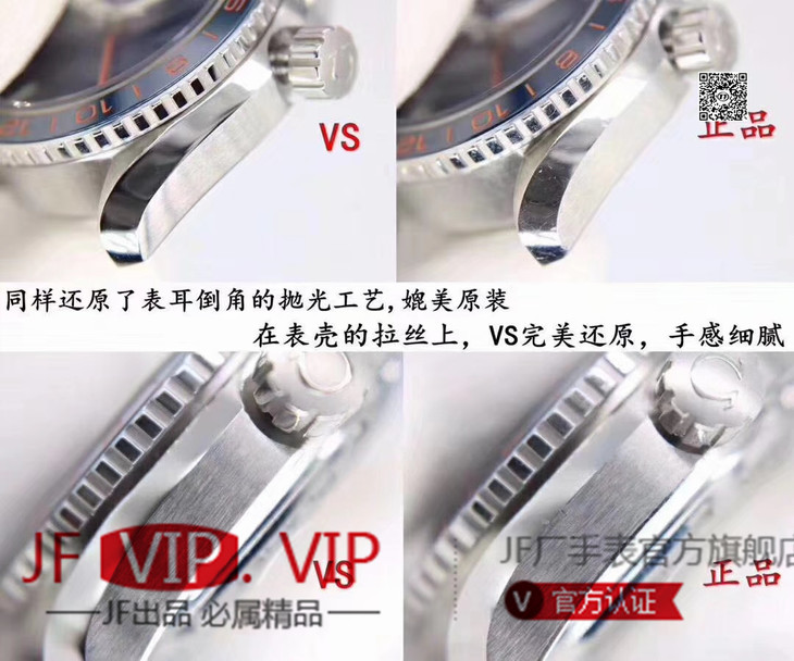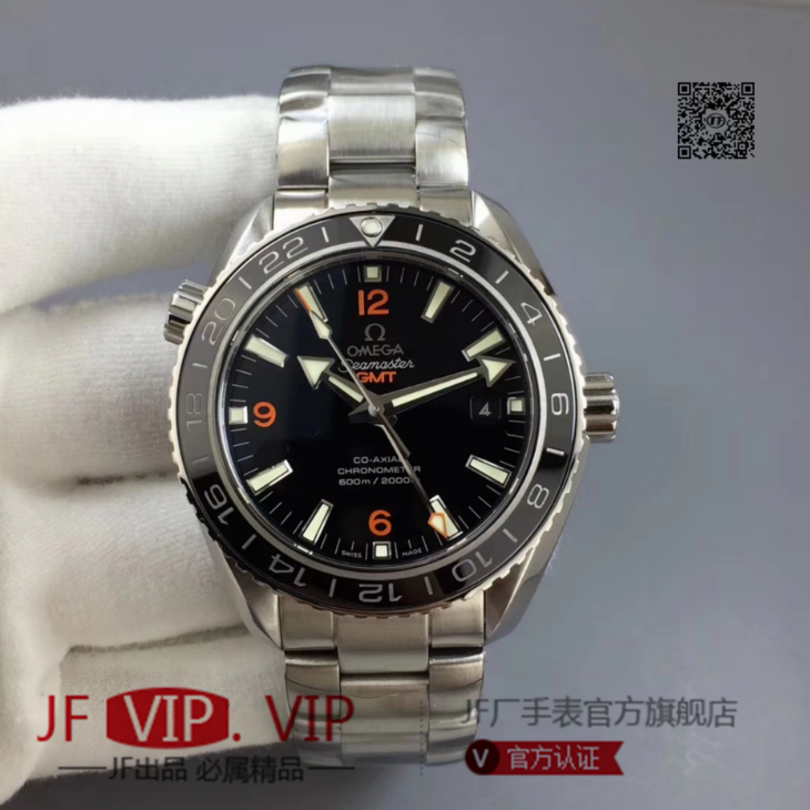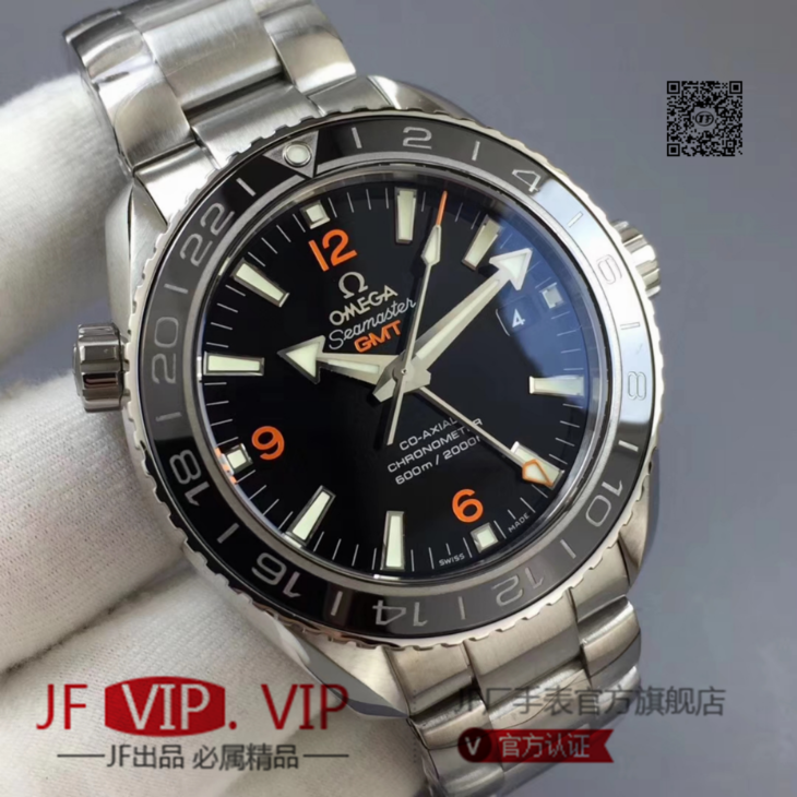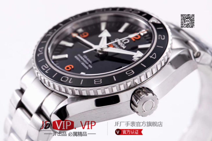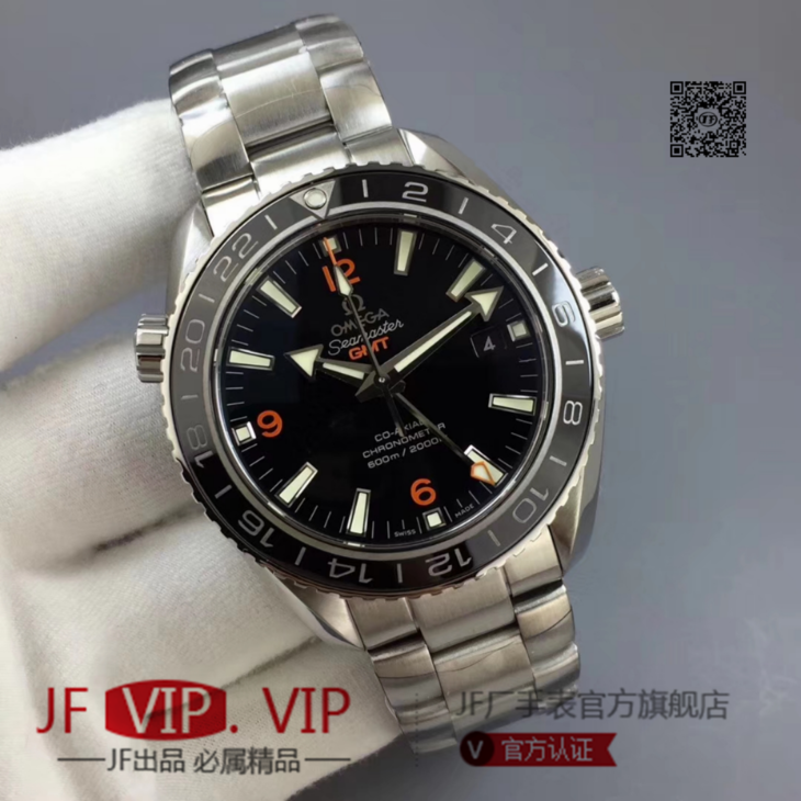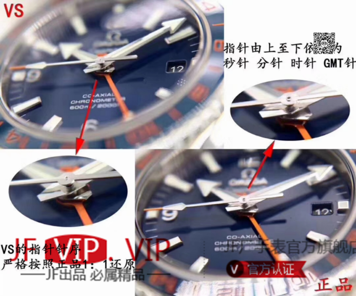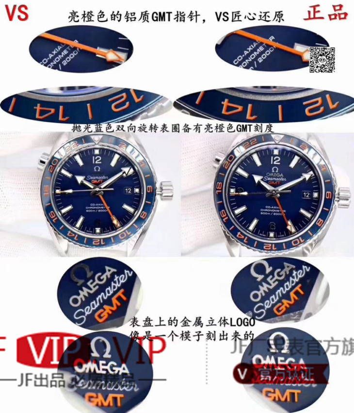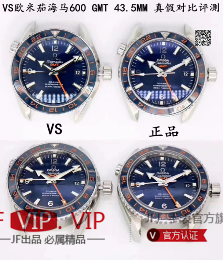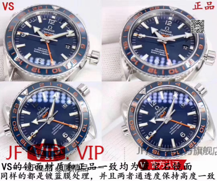 VS欧米茄海洋宇宙GMT 43.5mm (市场与正品一致!对版机芯,圈口,字面)1:机芯升级1:1 8605 机芯。2:玻璃升级与正品一致,双面防反光弧形抗磨损 蓝宝石玻璃。比市场普通本通透。3:圈口刻度升级与正品一致,激光刻字,真空电镀刻度,有磨砂凹凸感。不再是市场上的普通填油版本,圈口光亮无凹凸感。4:字面升级与正品一致 光亮 光滑漆面,不再是市场普通版本的 哑光砂面!出货实拍