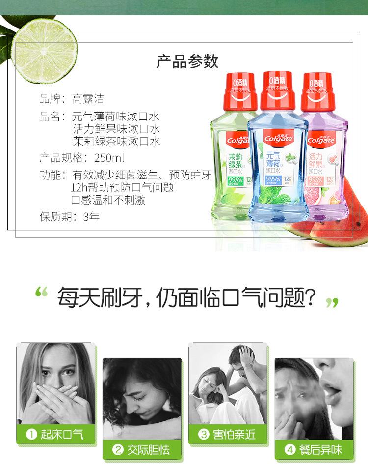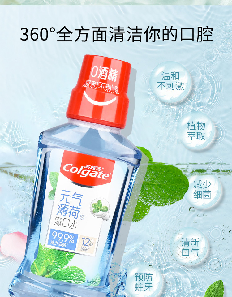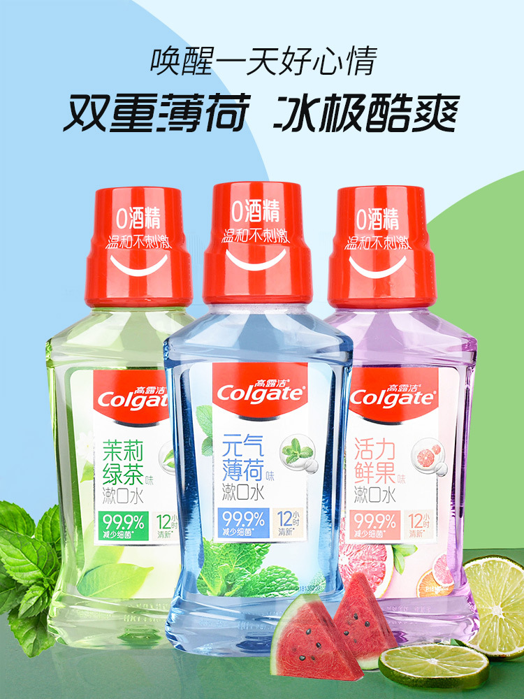 「三款口味!便携装」高露洁漱口水口气清新薄荷鲜果250mL清洁口腔护理便携