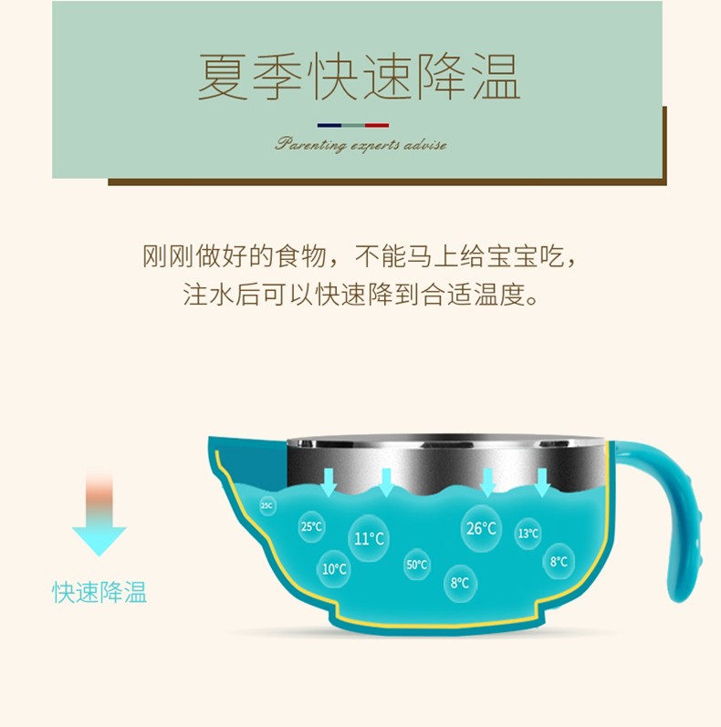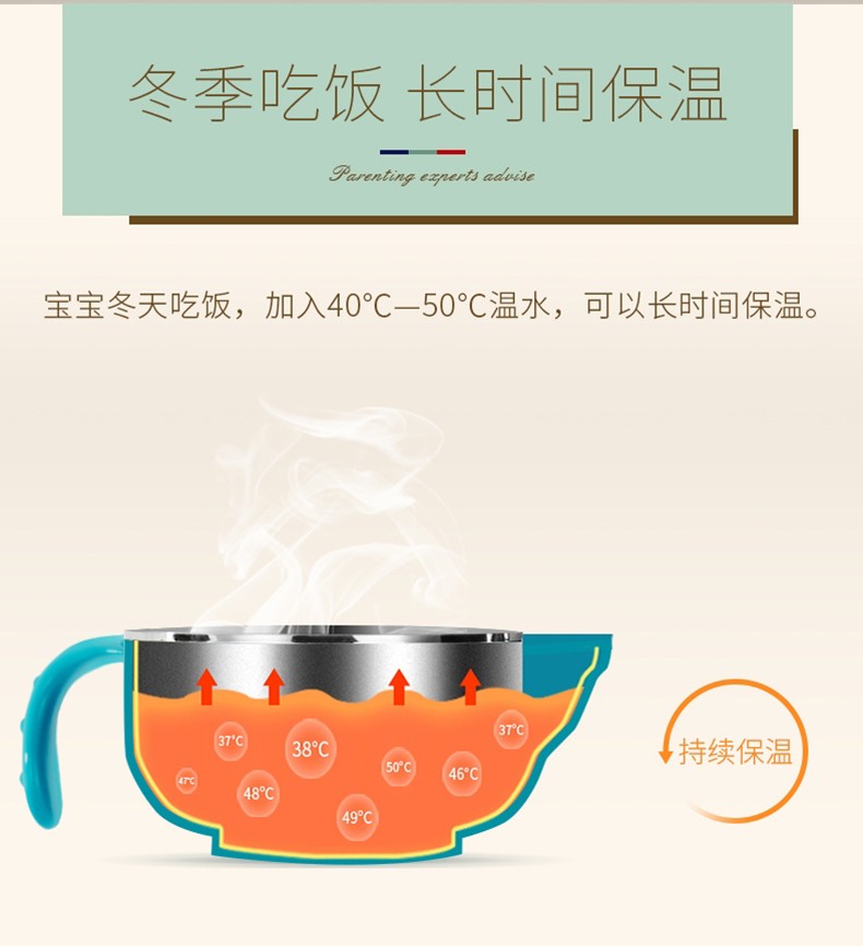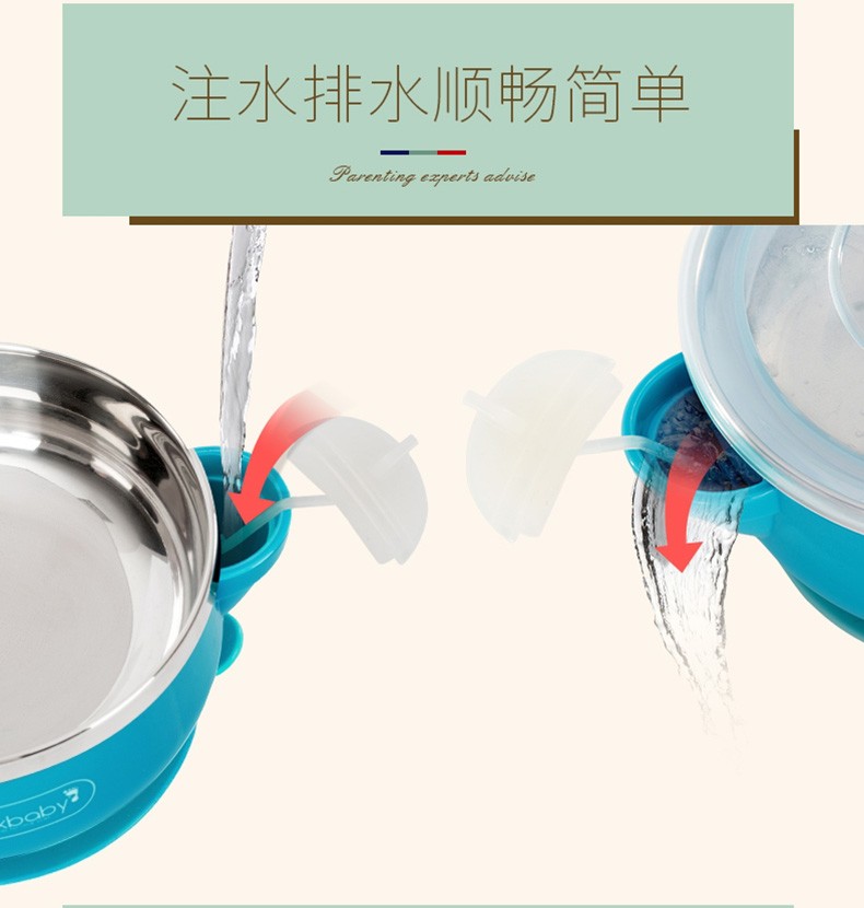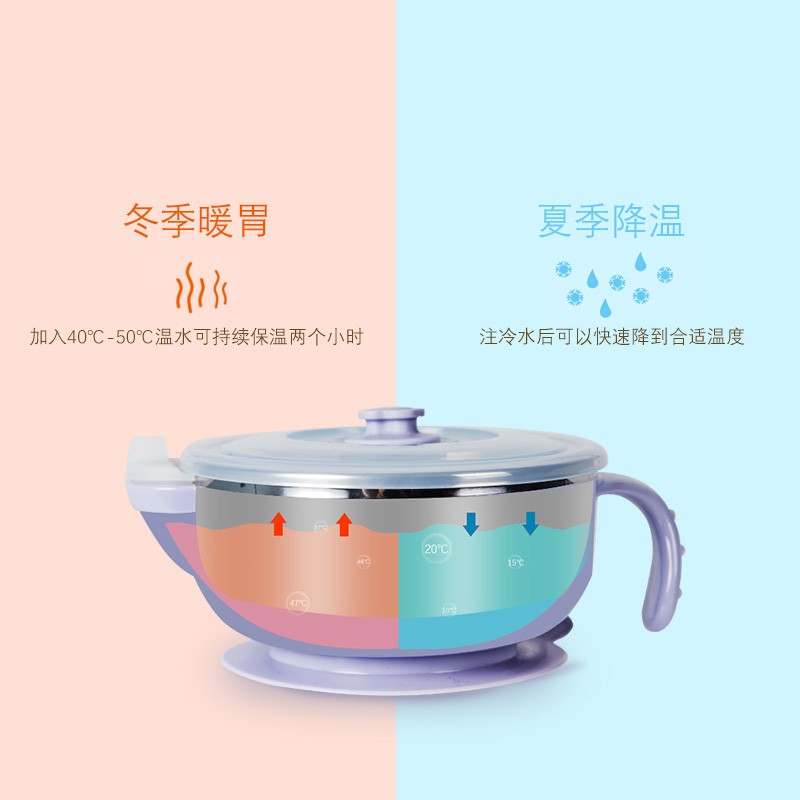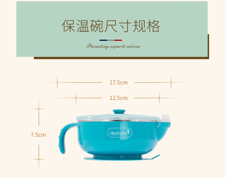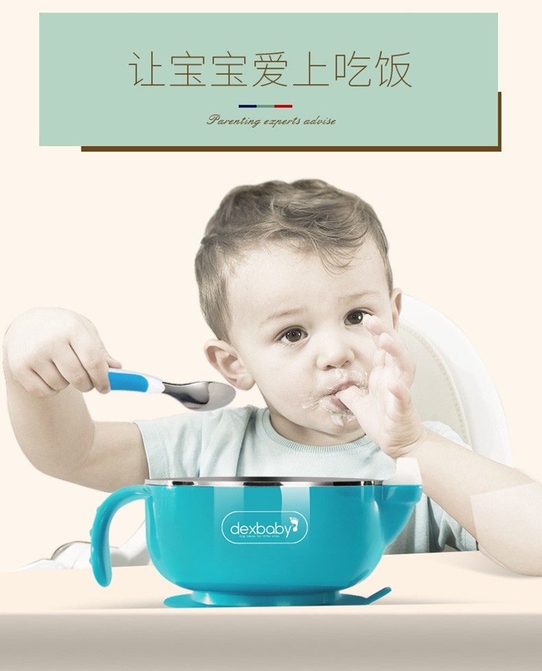 DEXBABY 美国注水保温不锈钢宝宝碗吸盘碗辅食碗 不带勺子JPY带授权招加盟代理