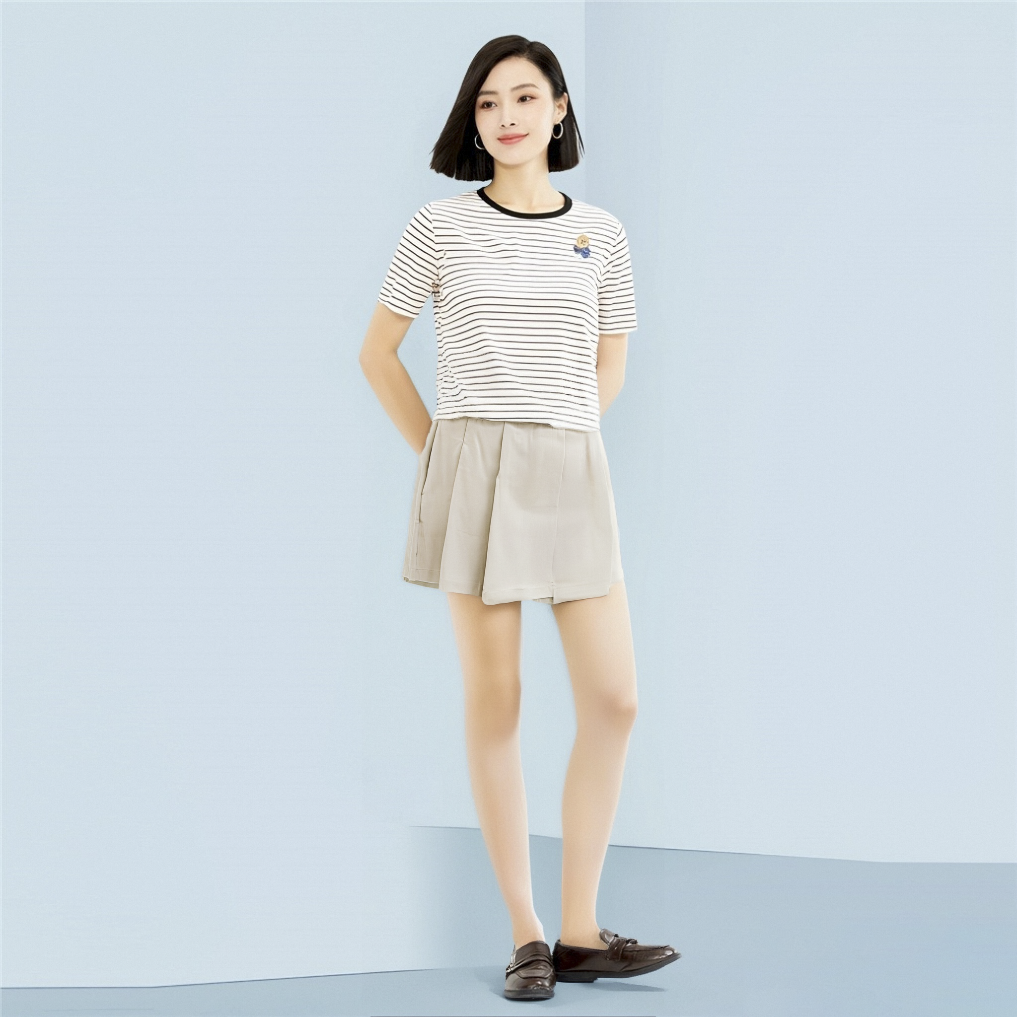 佐丹奴女装26年新款全棉舒适版型条纹短袖T恤衫05396255