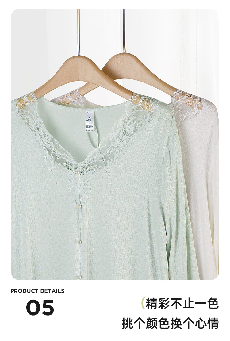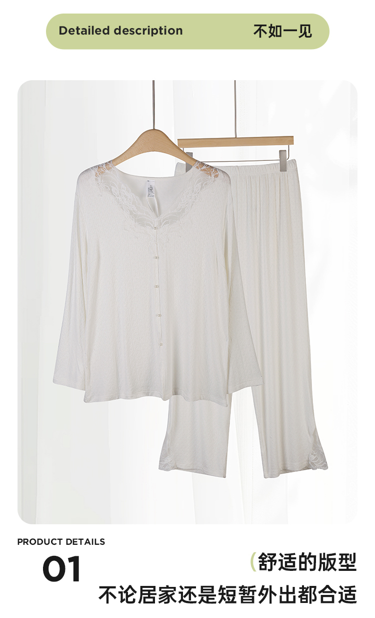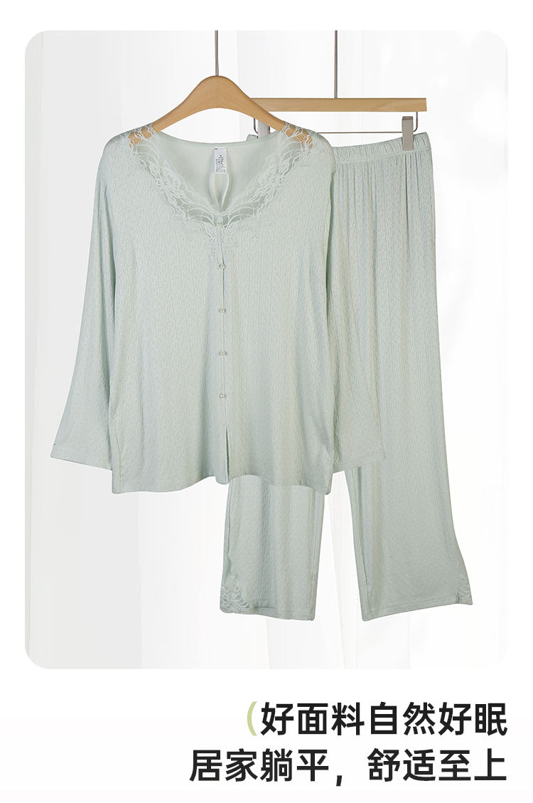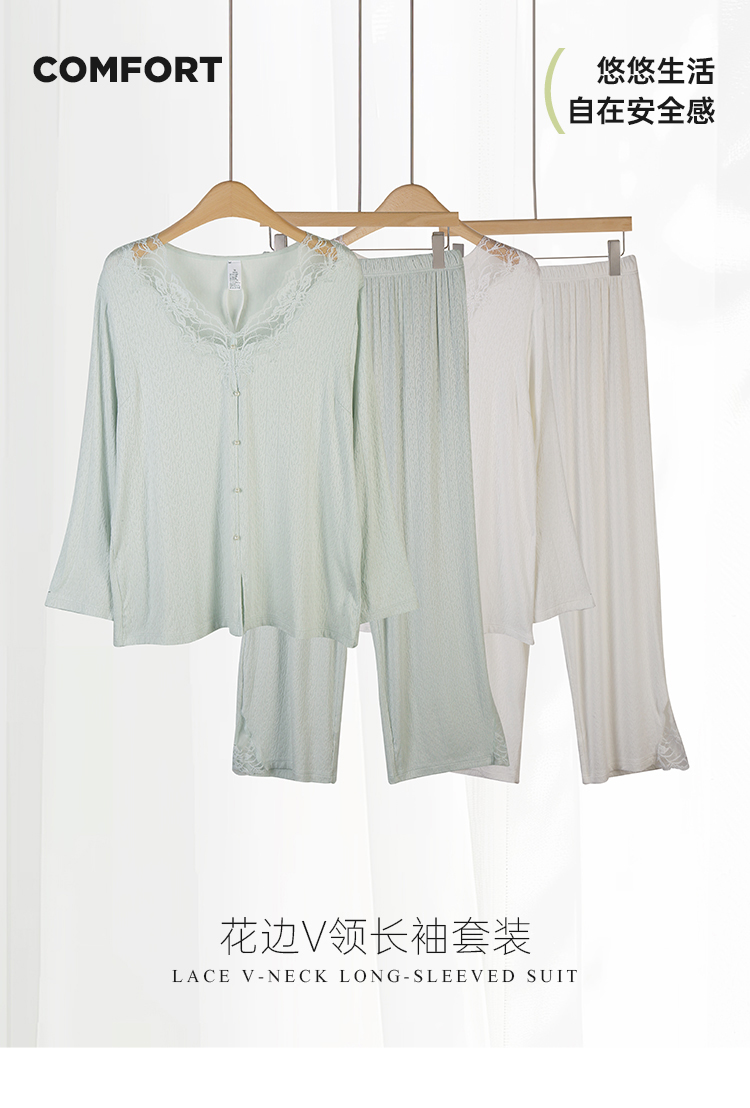 美奈川睡衣女家居服套装花边v领长袖套装 JJ28194