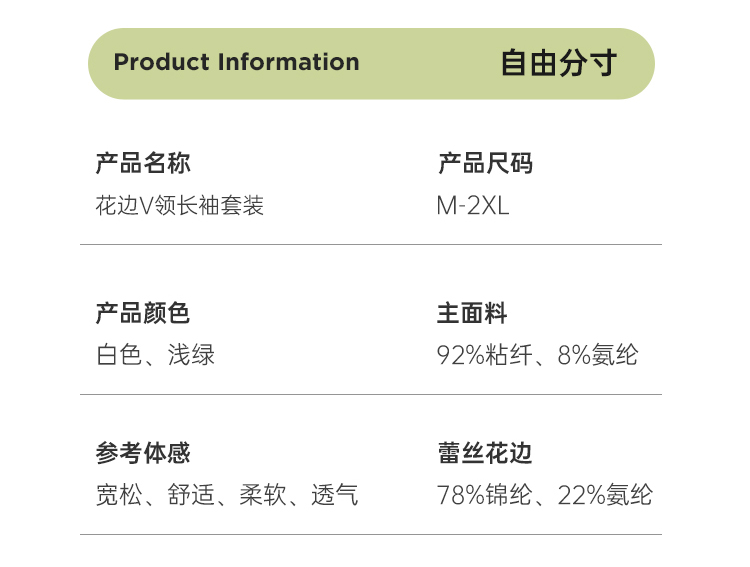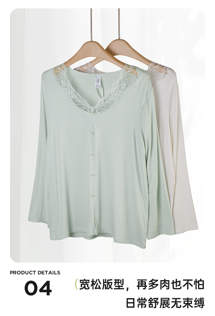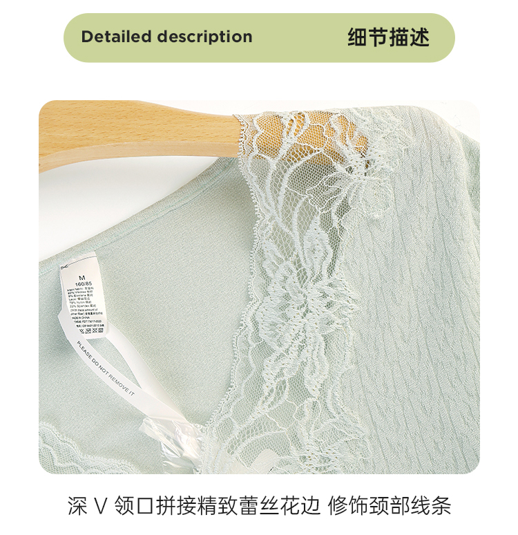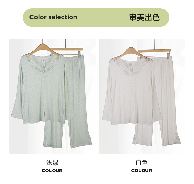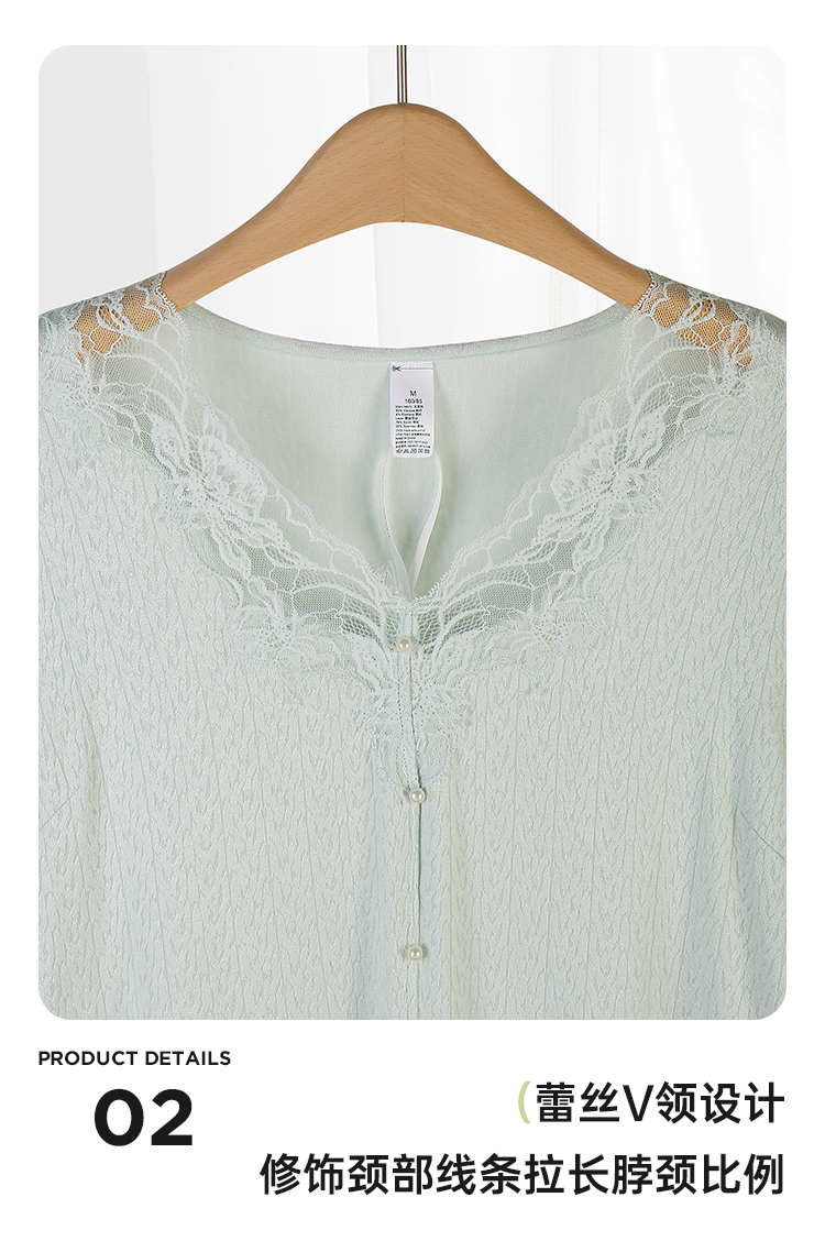 美奈川睡衣女家居服套装花边v领长袖套装 JJ28194