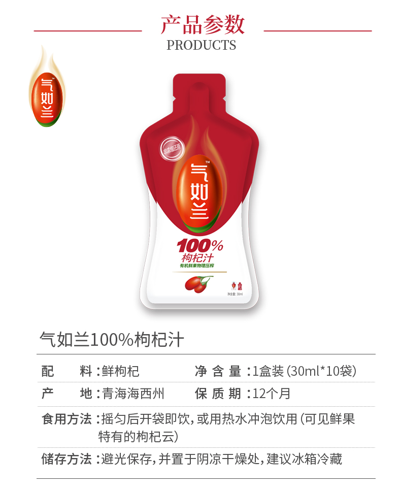丨有机丨枸杞汁 气如兰鲜枸杞原浆 净含量300ml一盒