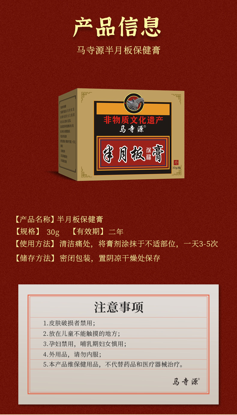 【马寺源】半月板损伤护膝膏滑膜炎膝盖关节积液撕裂疼痛磨损修复性膏