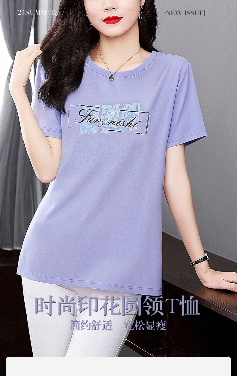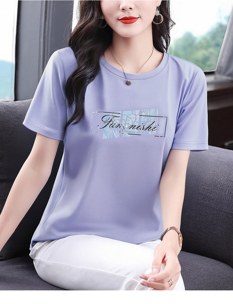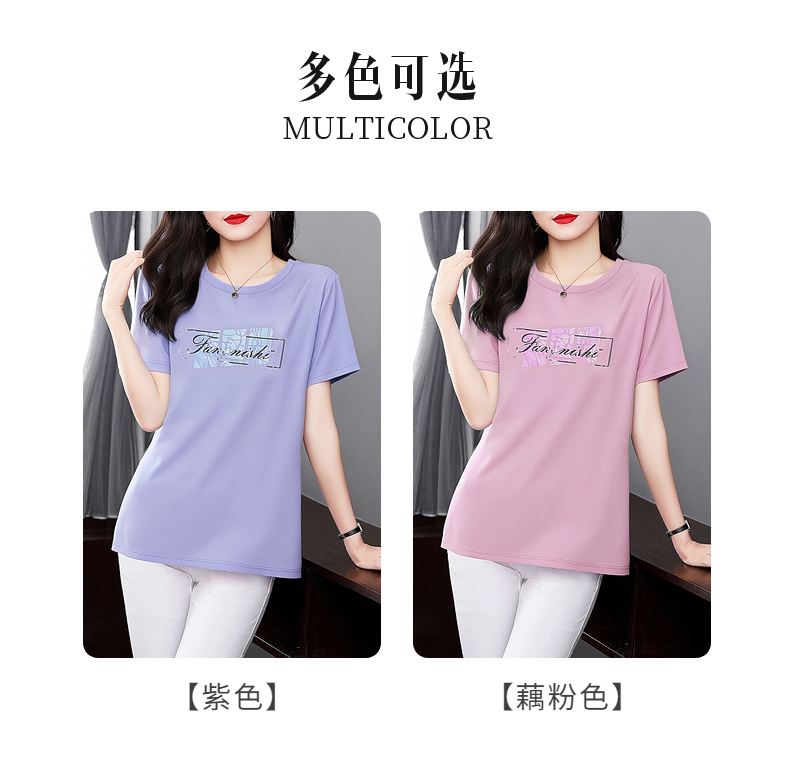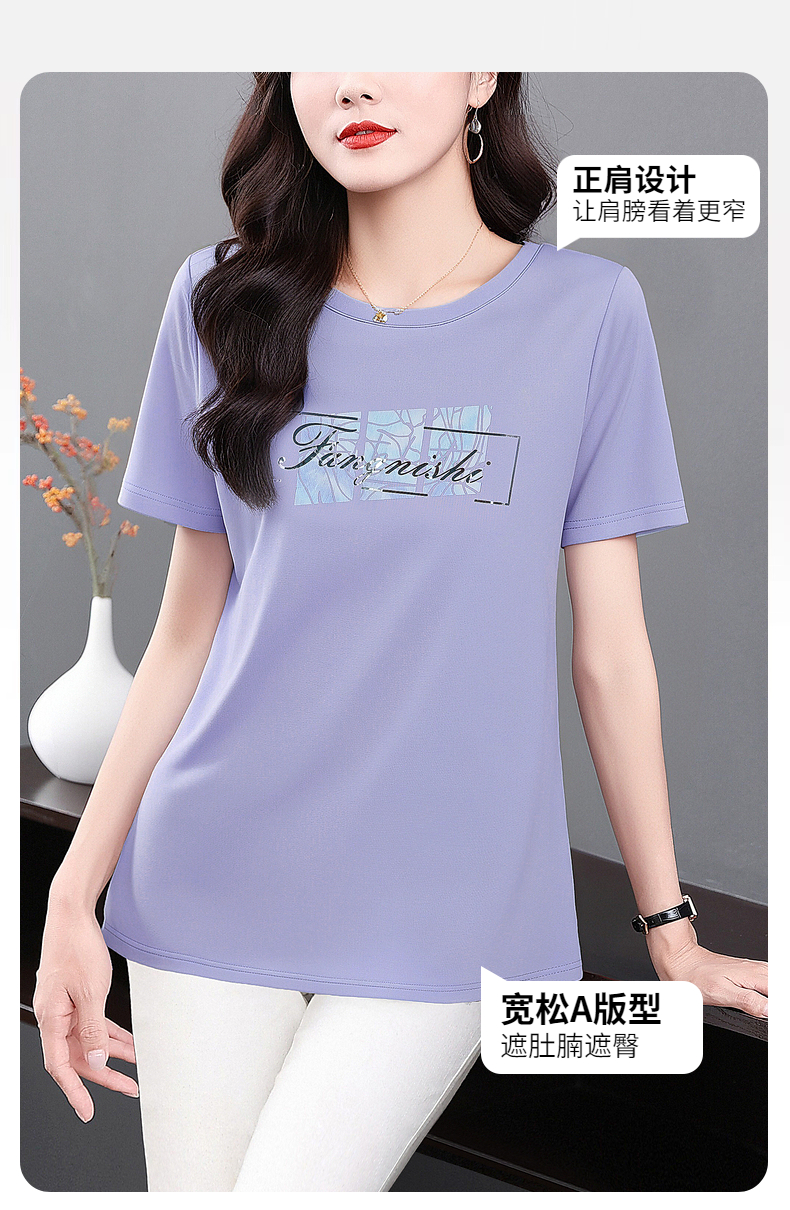 冰丝短袖t恤女2025年新款夏季大码女装宽松显瘦上衣胖mm遮肚半袖