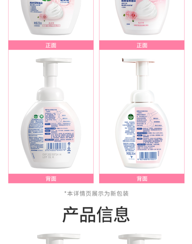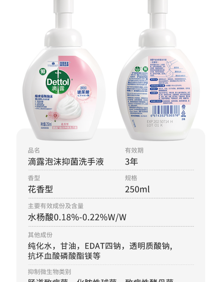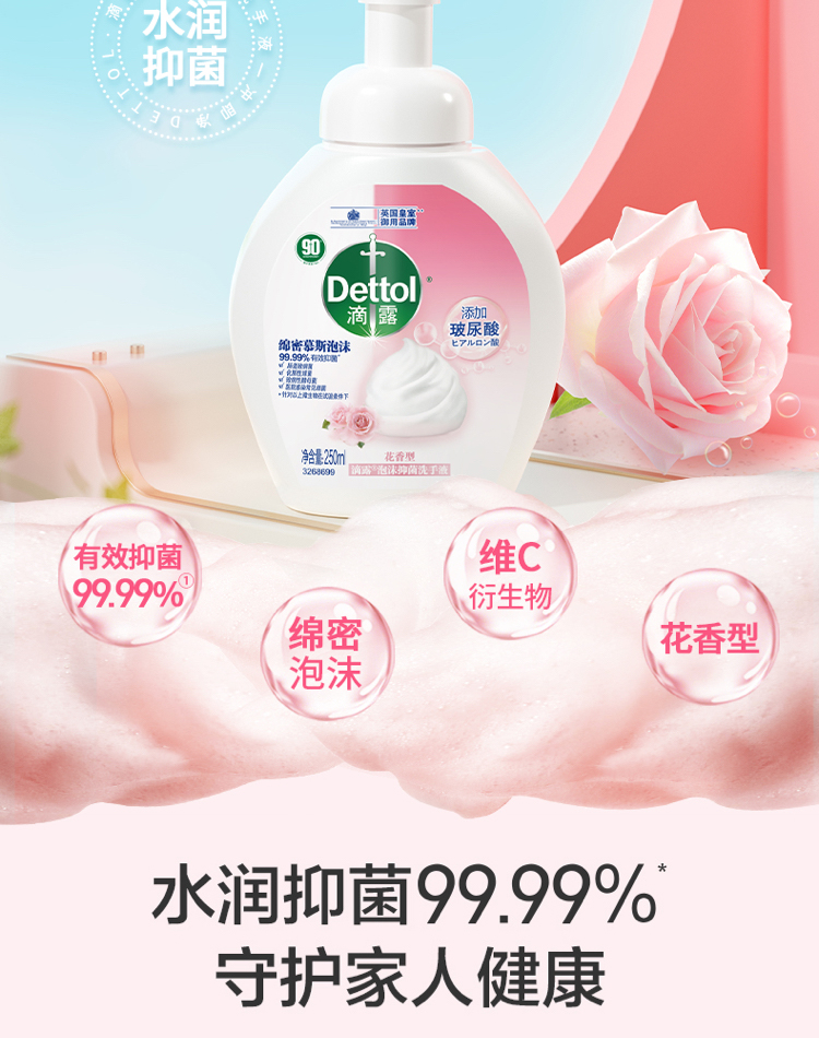 滴露泡沫抑菌洗手液花香型 250ml*3瓶