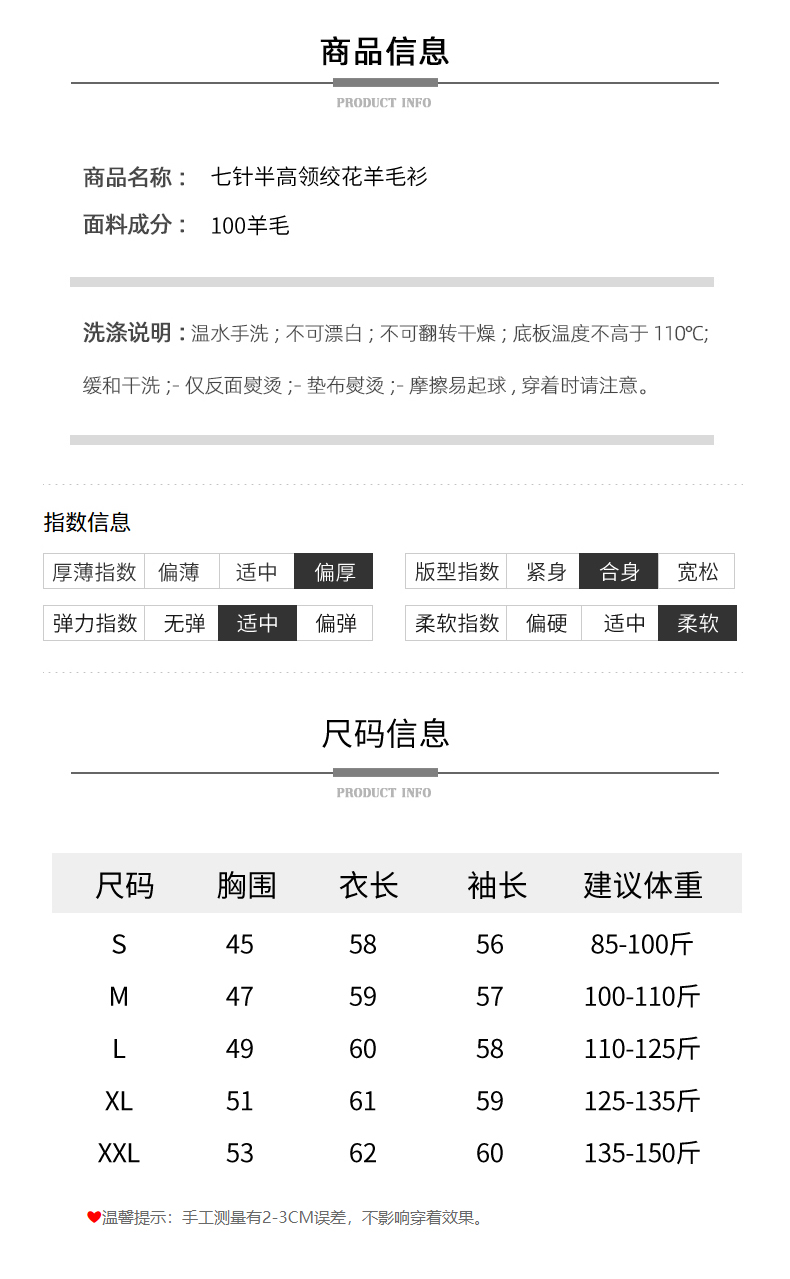 4.尺码信息以及推荐尺码数据根据平均身材得出,适用于大部分人群,仅供参考,买家也可以根据自己的穿衣喜好选择