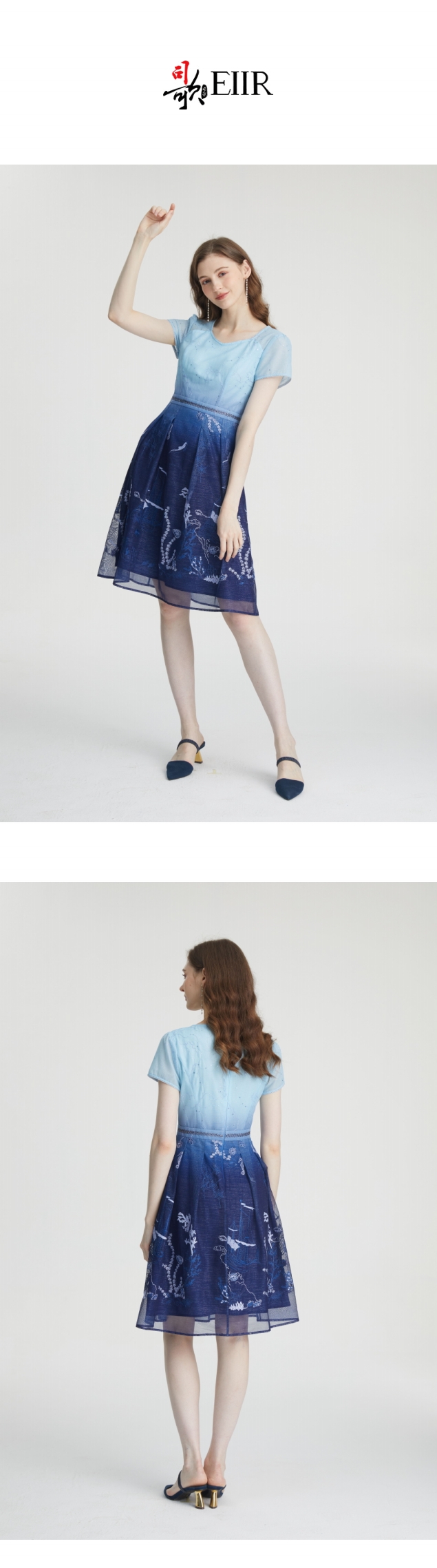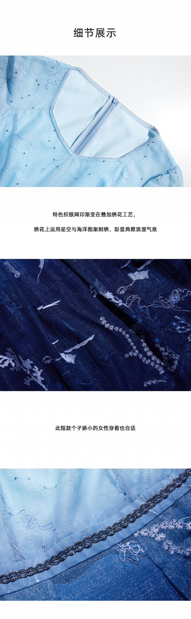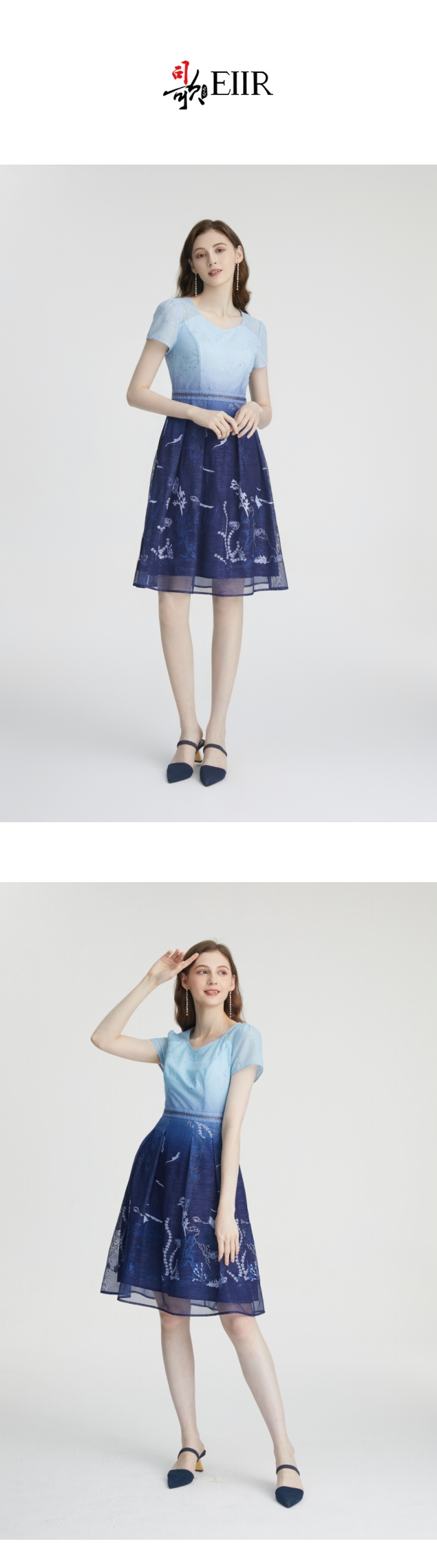 司歌V领短袖刺绣渐变连衣裙A871232