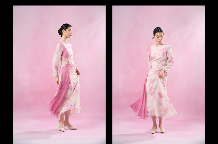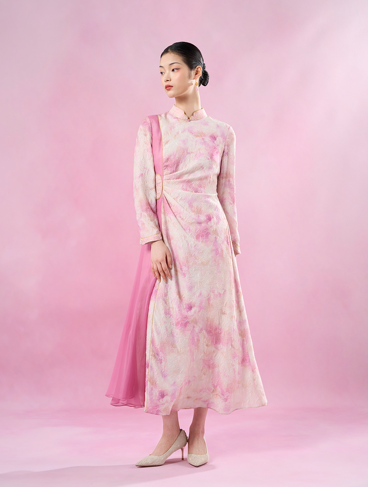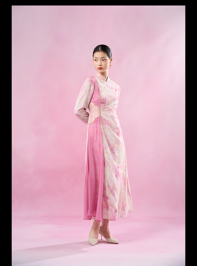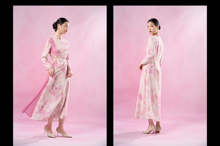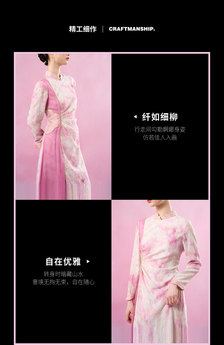 吉祥衣家新中式国风裙子气质显瘦修身女装玉兰芳华真丝连衣裙