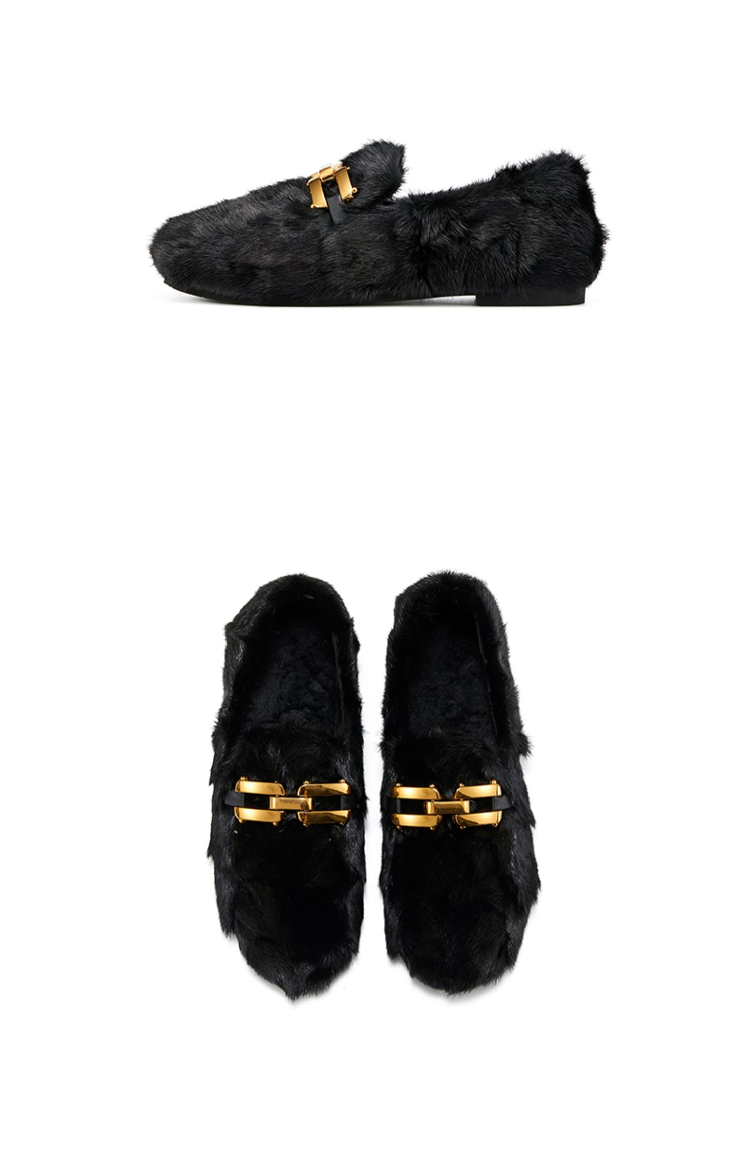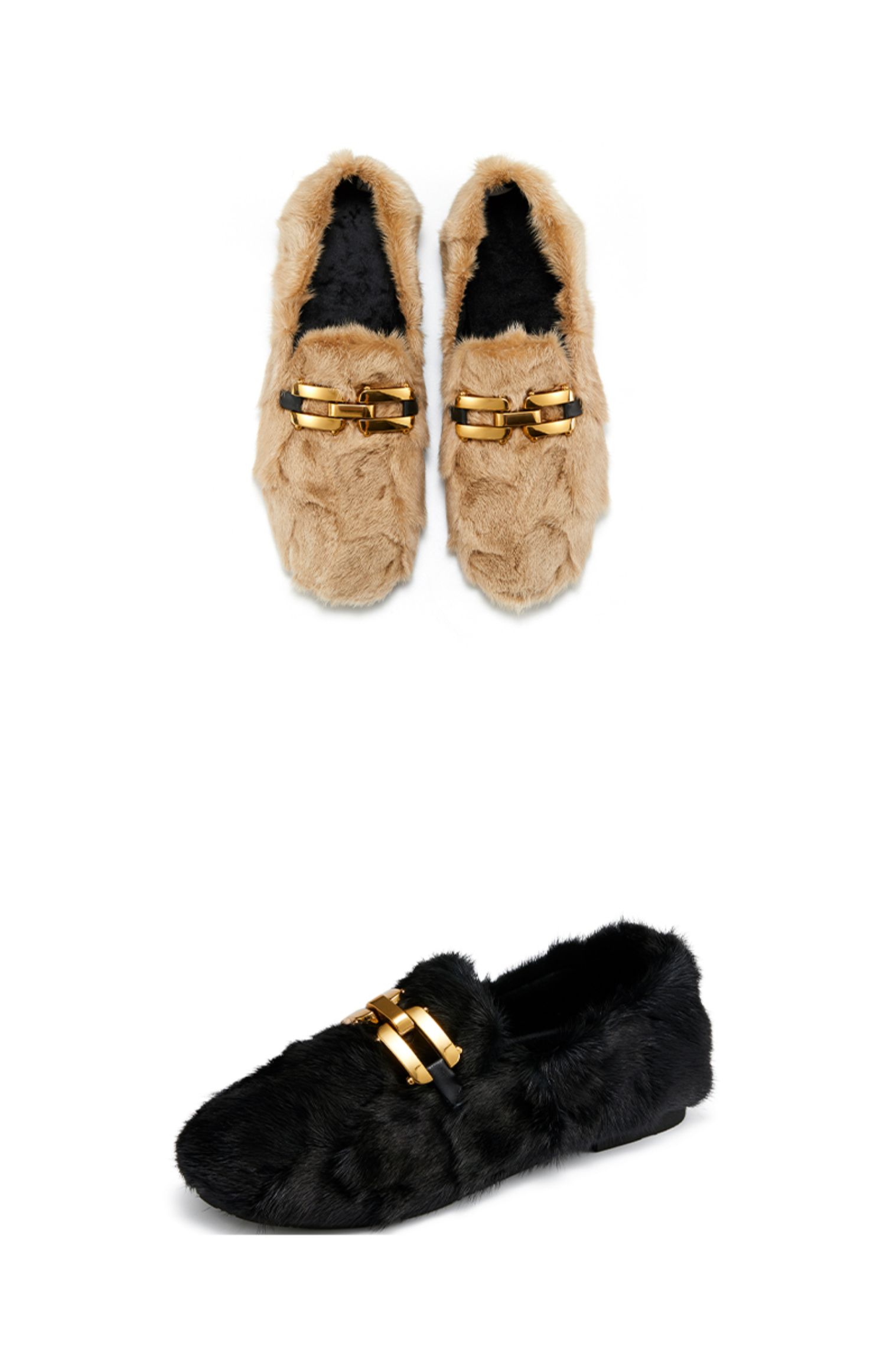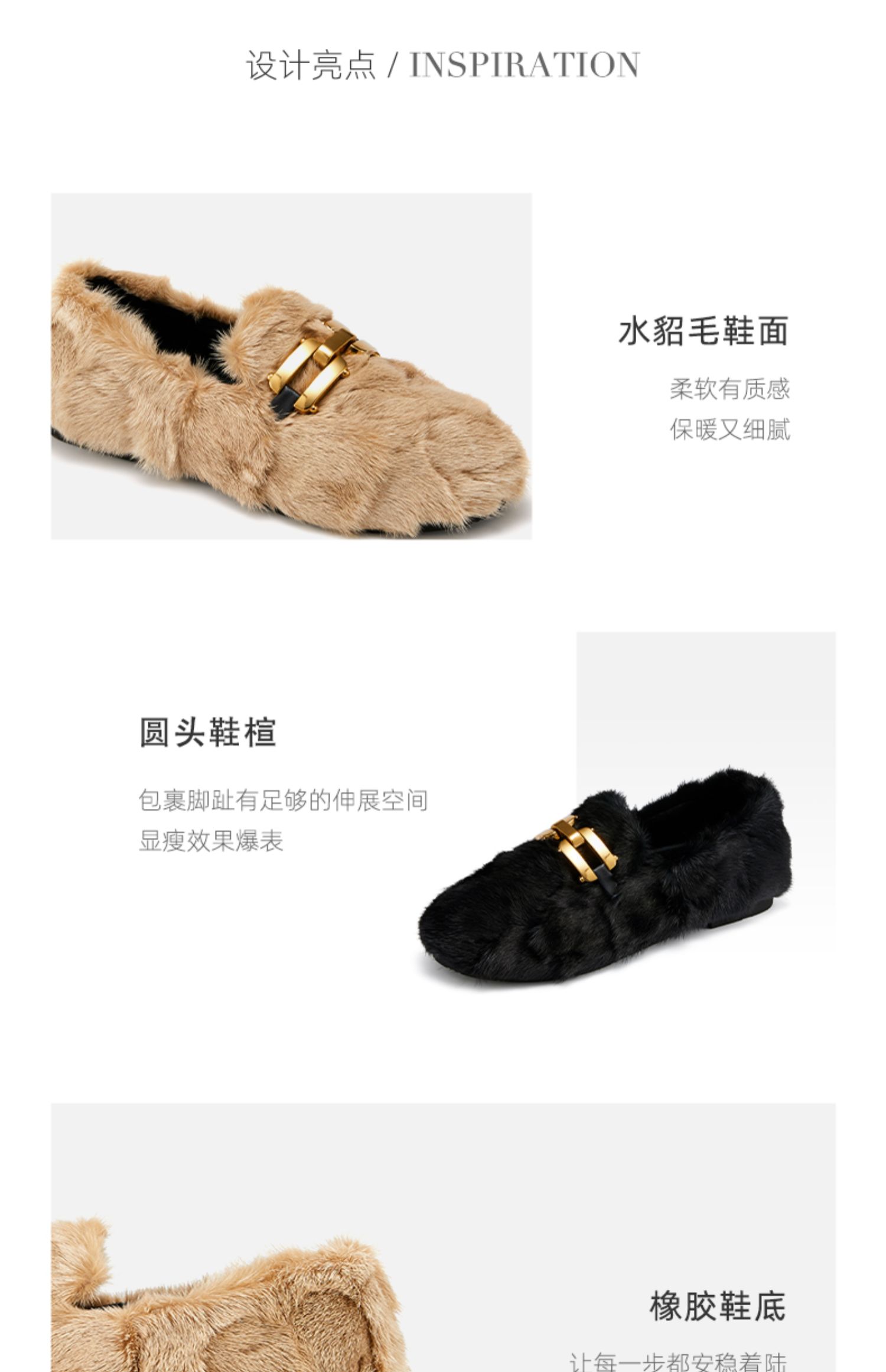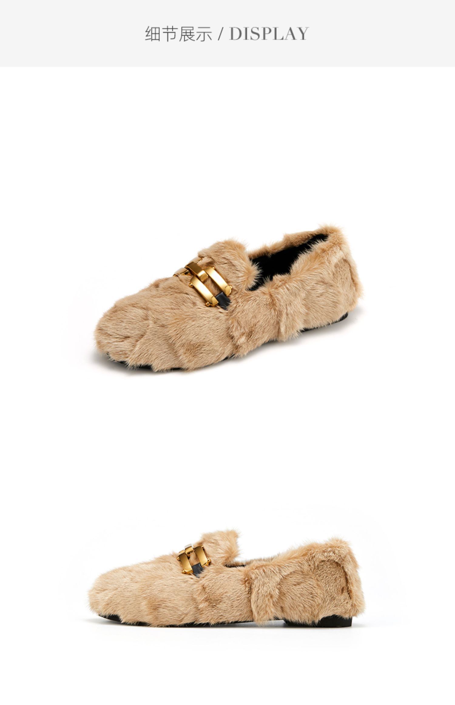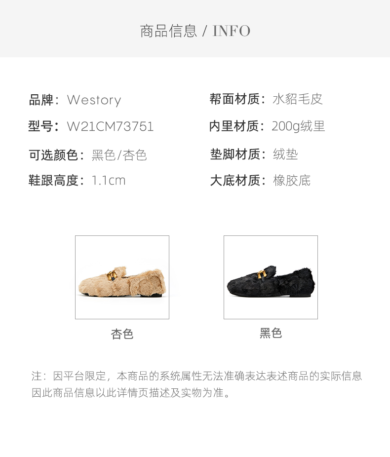 westory2021秋季新款水貂毛豆豆鞋金属扣式一脚蹬女鞋W21CM73751