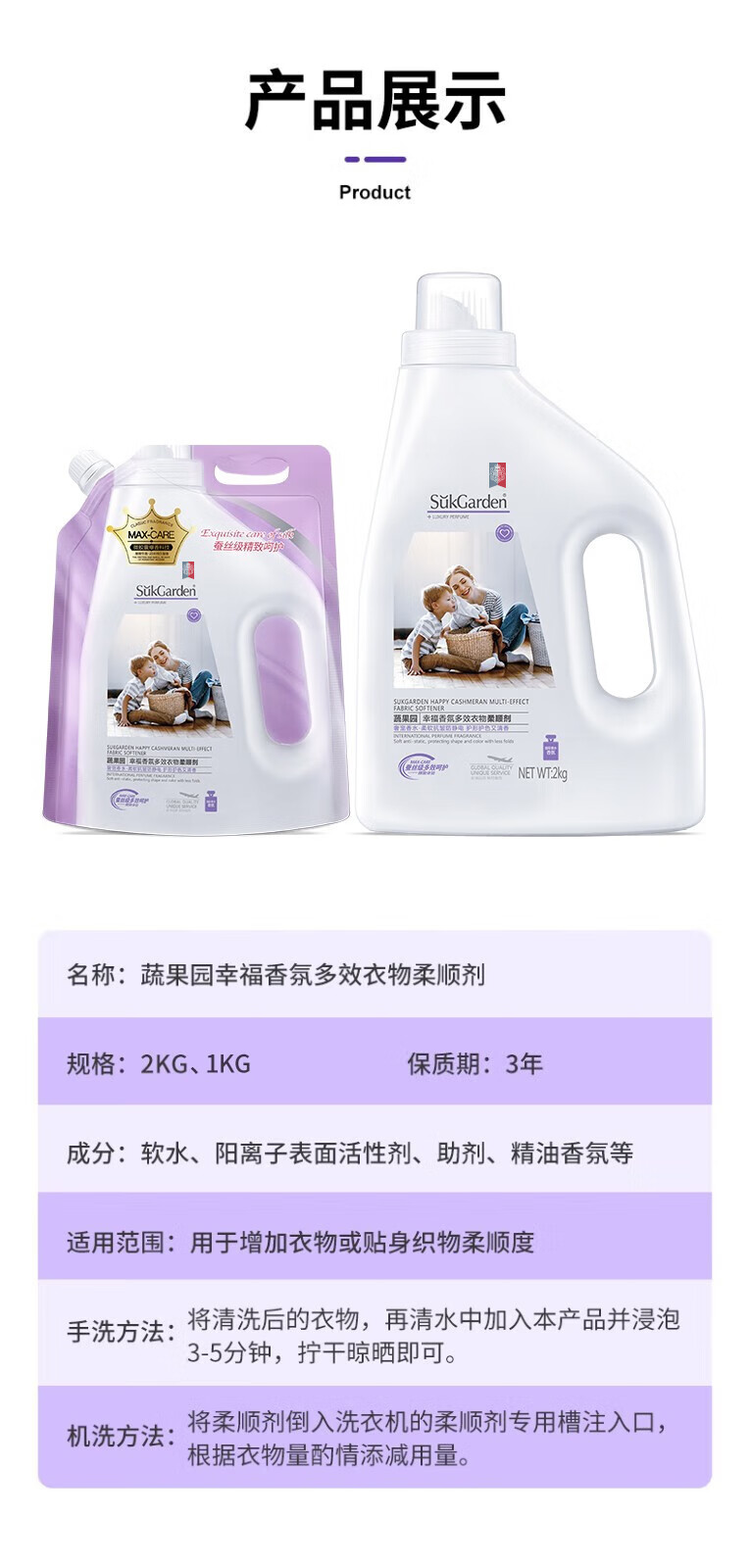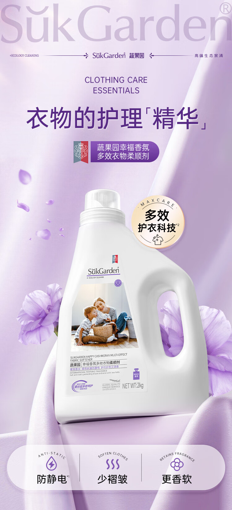 【分仓直发包邮】SukGarden蔬果园幸福香氛多效衣物柔顺剂2kg