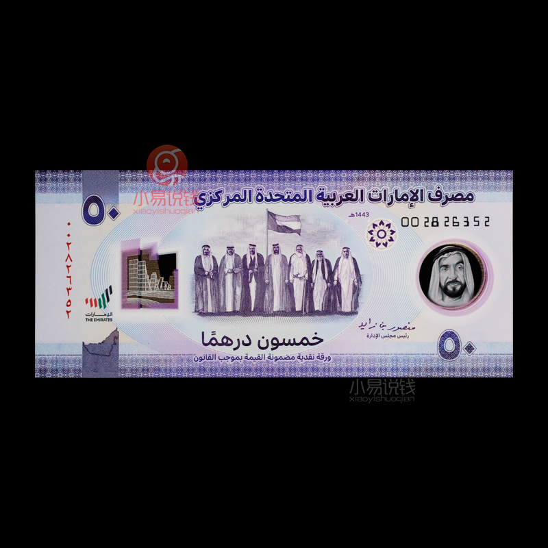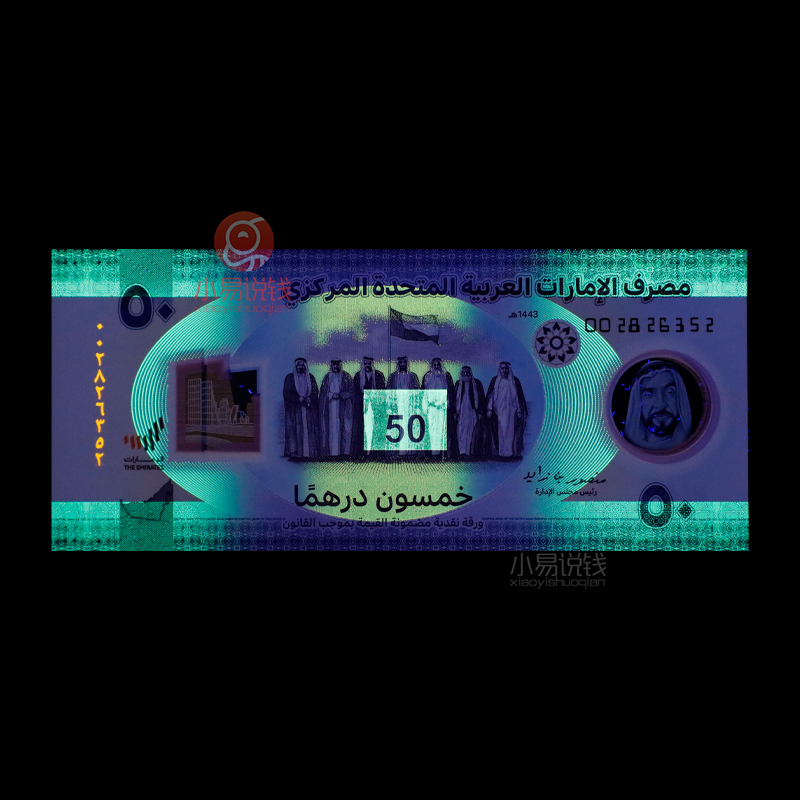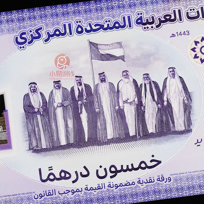为了纪念2021年阿联酋建国50周年,特此发行了一张面值为50迪拉姆的纪念钞,值得注意的是,这张钞也是阿联酋发行的第一张塑料钞!
