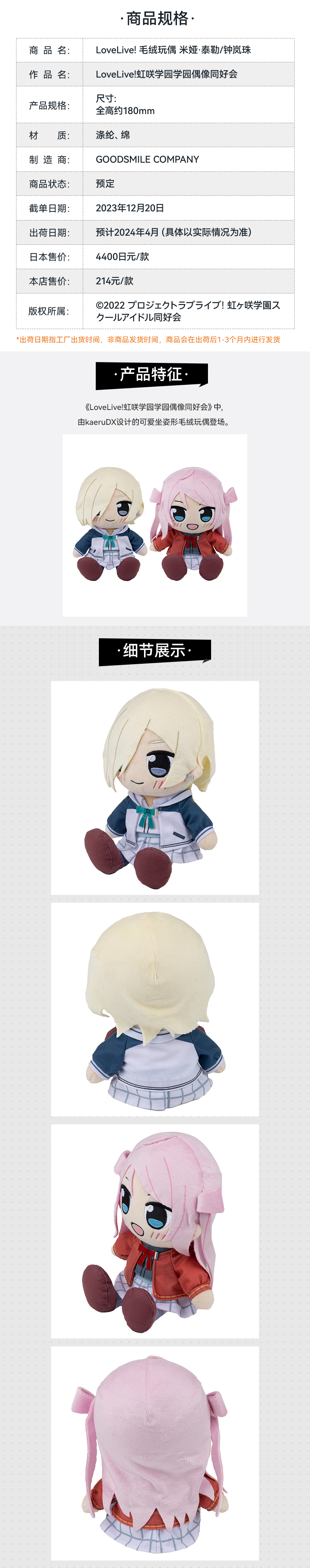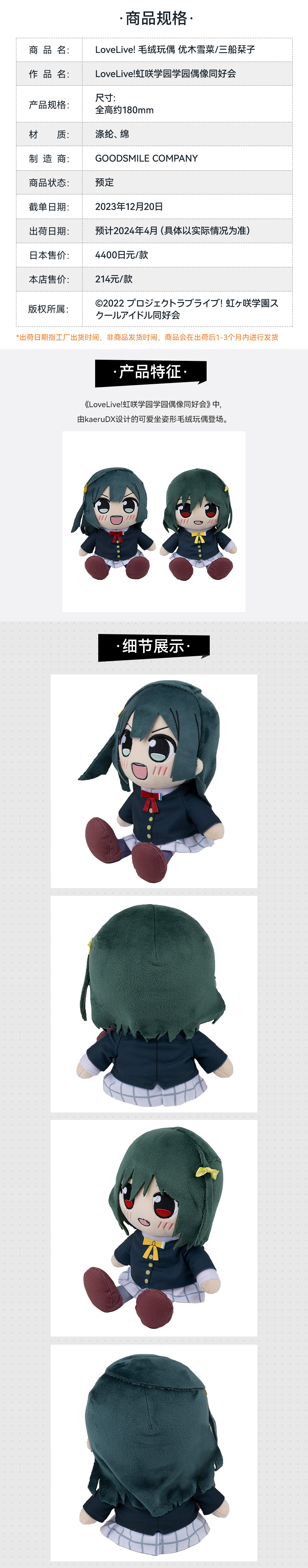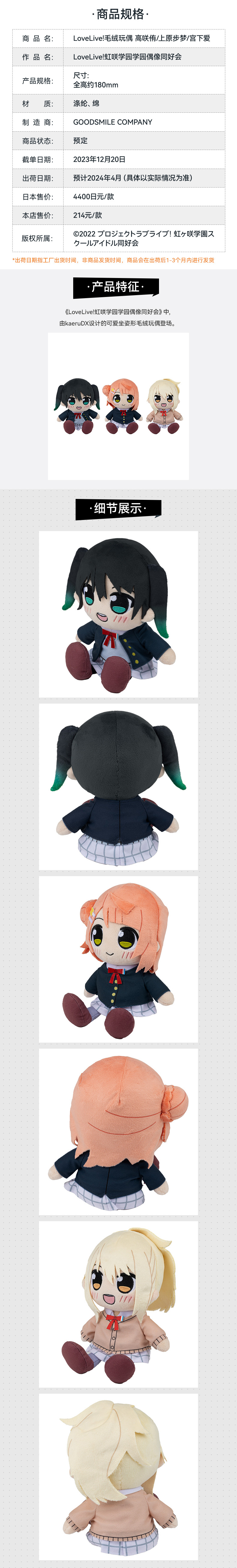 【GSC现货】LoveLive!虹咲学园学园偶像同好会毛绒玩偶 高咲侑/上原步梦/宫下爱/优木雪菜/三船栞子/米娅·泰勒/钟岚珠