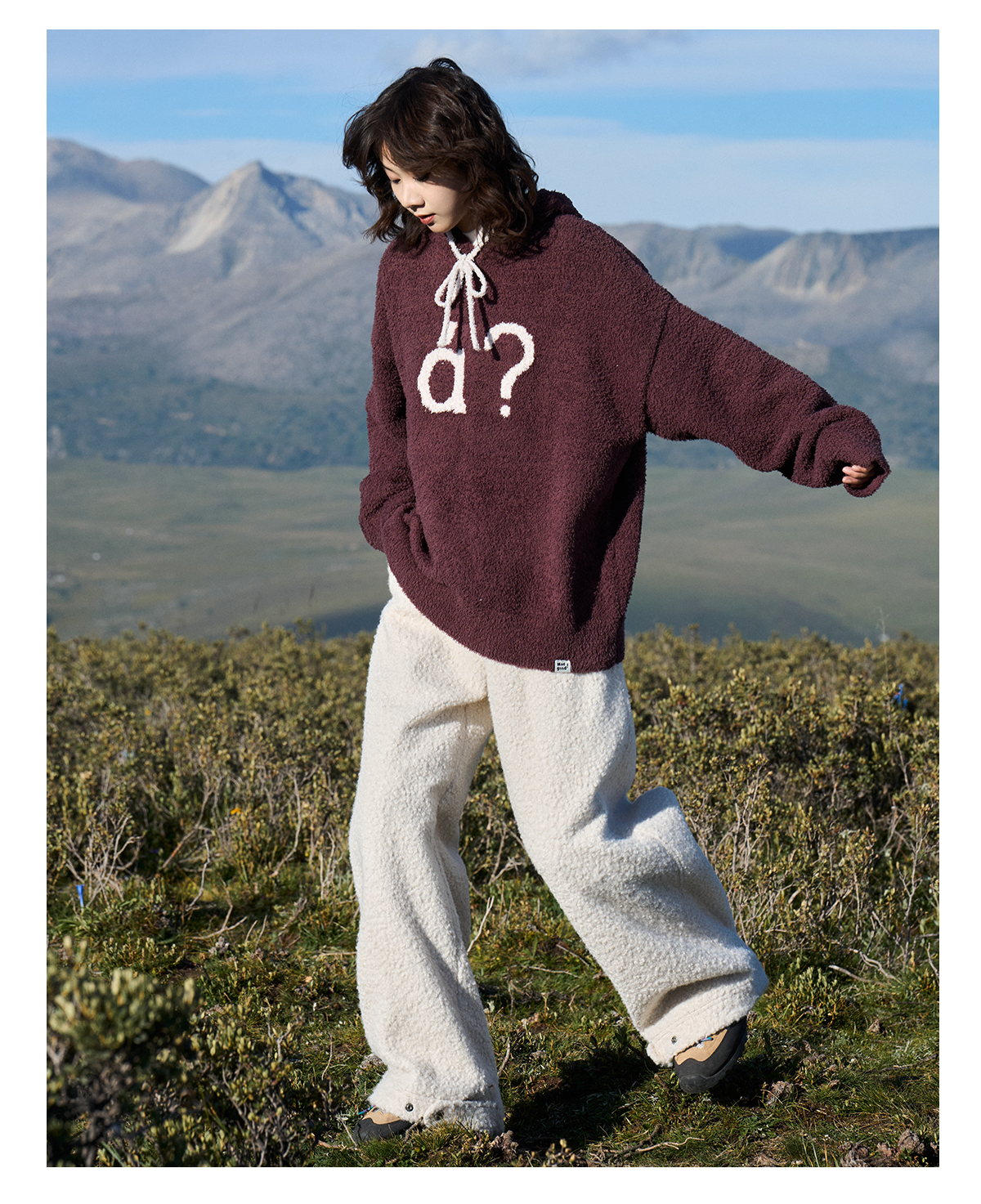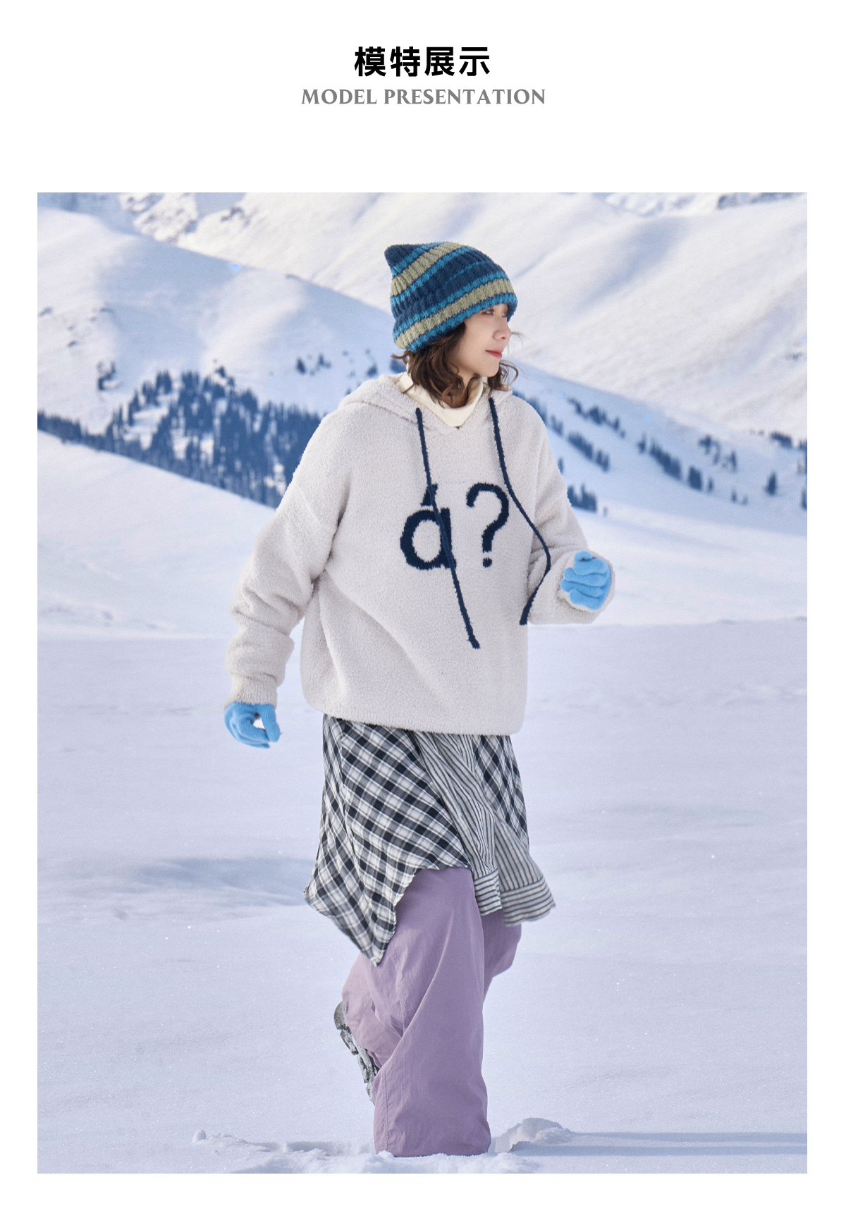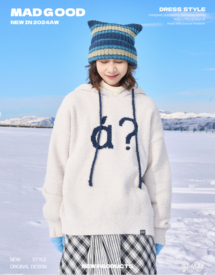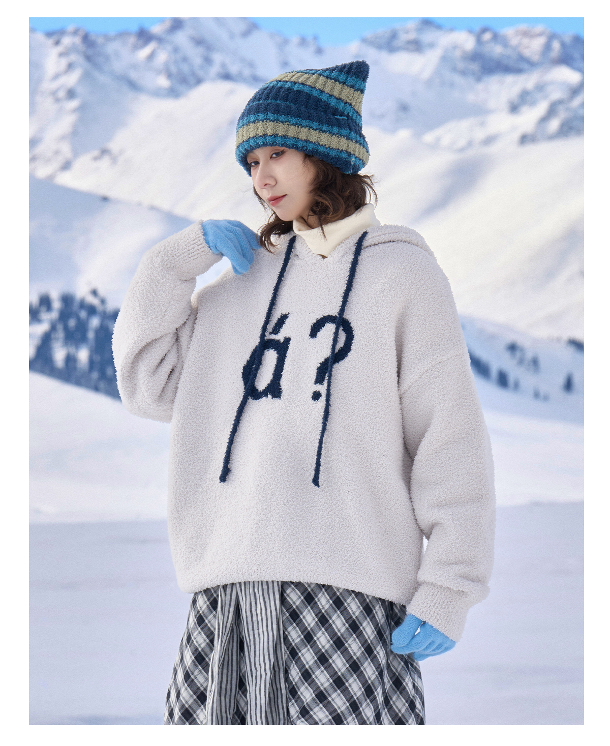 马得工地/MDGDMY244348/问号提花韩国绒连帽毛衣