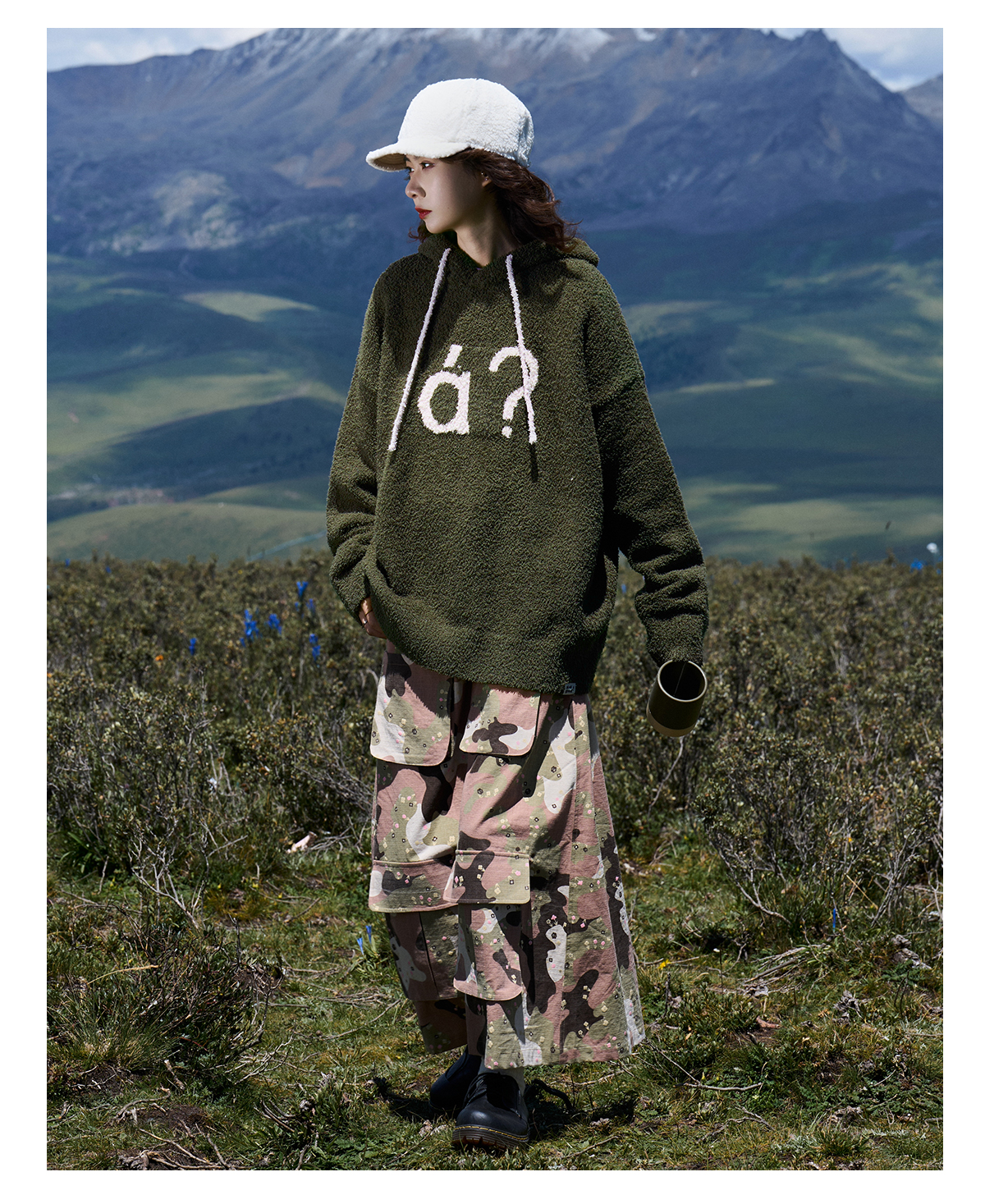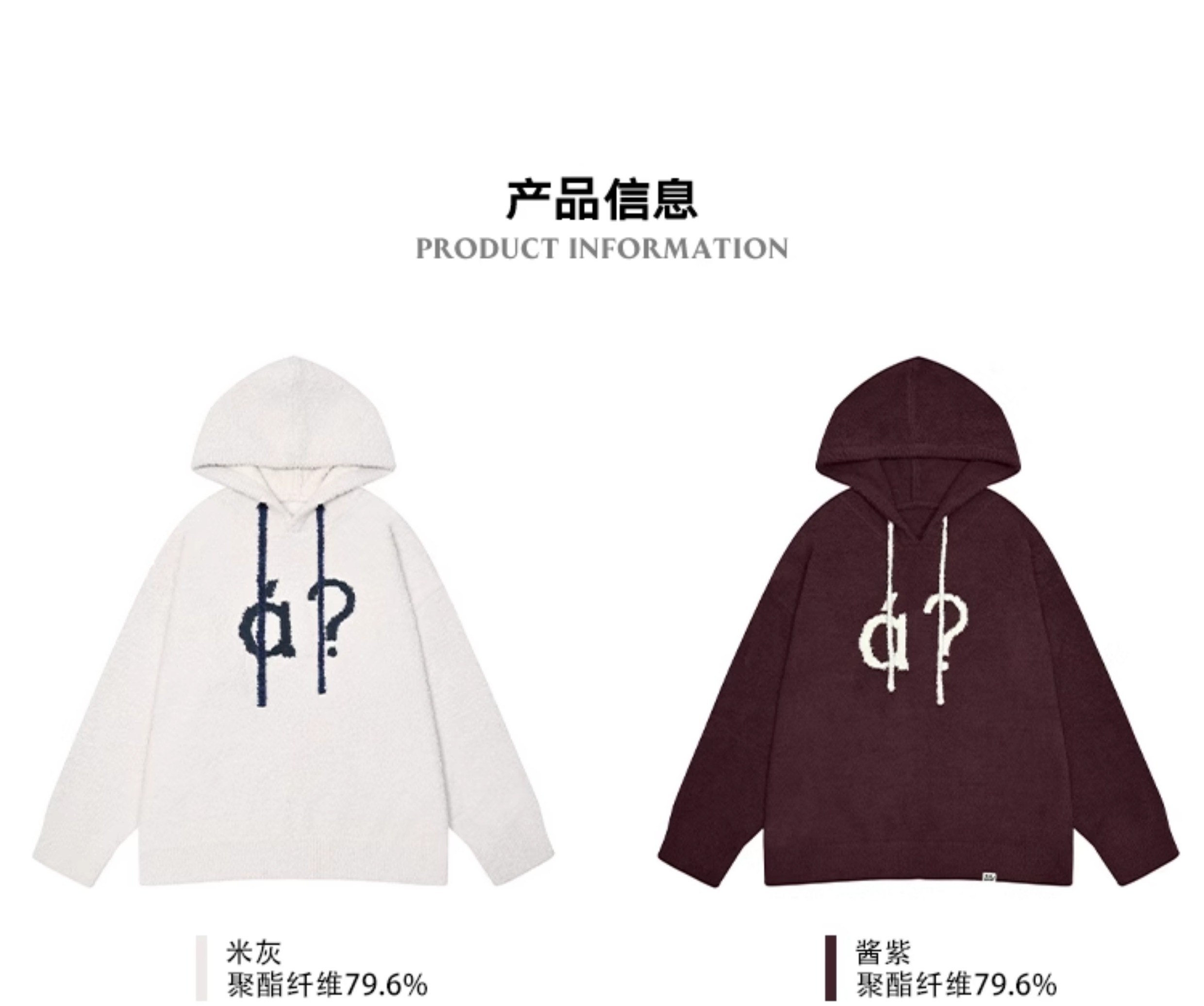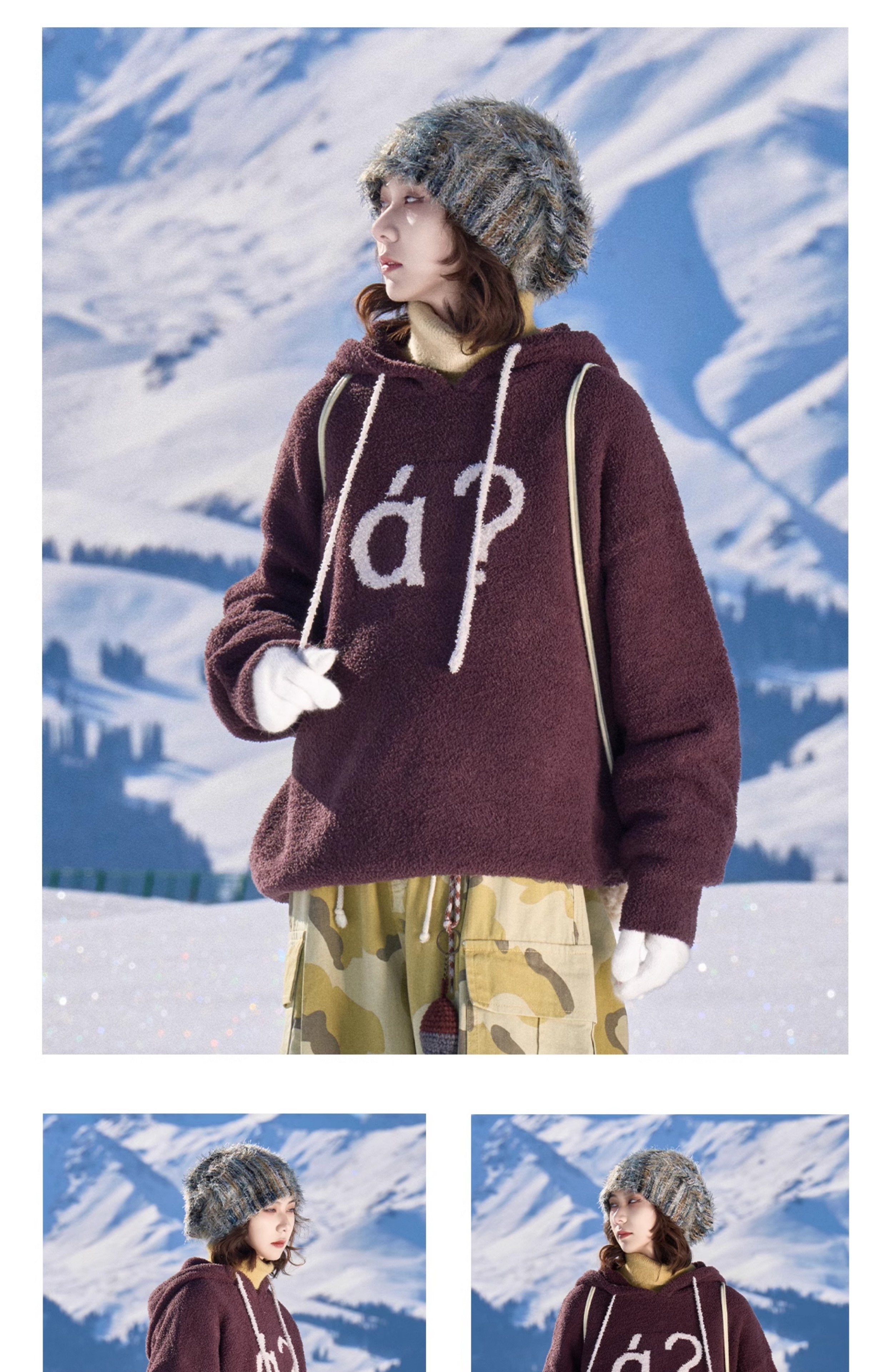 马得工地/MDGDMY244348/问号提花韩国绒连帽毛衣