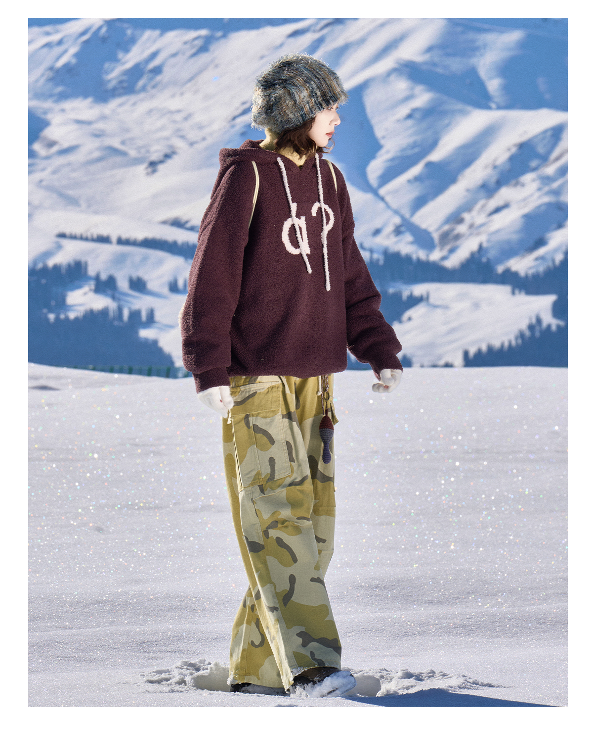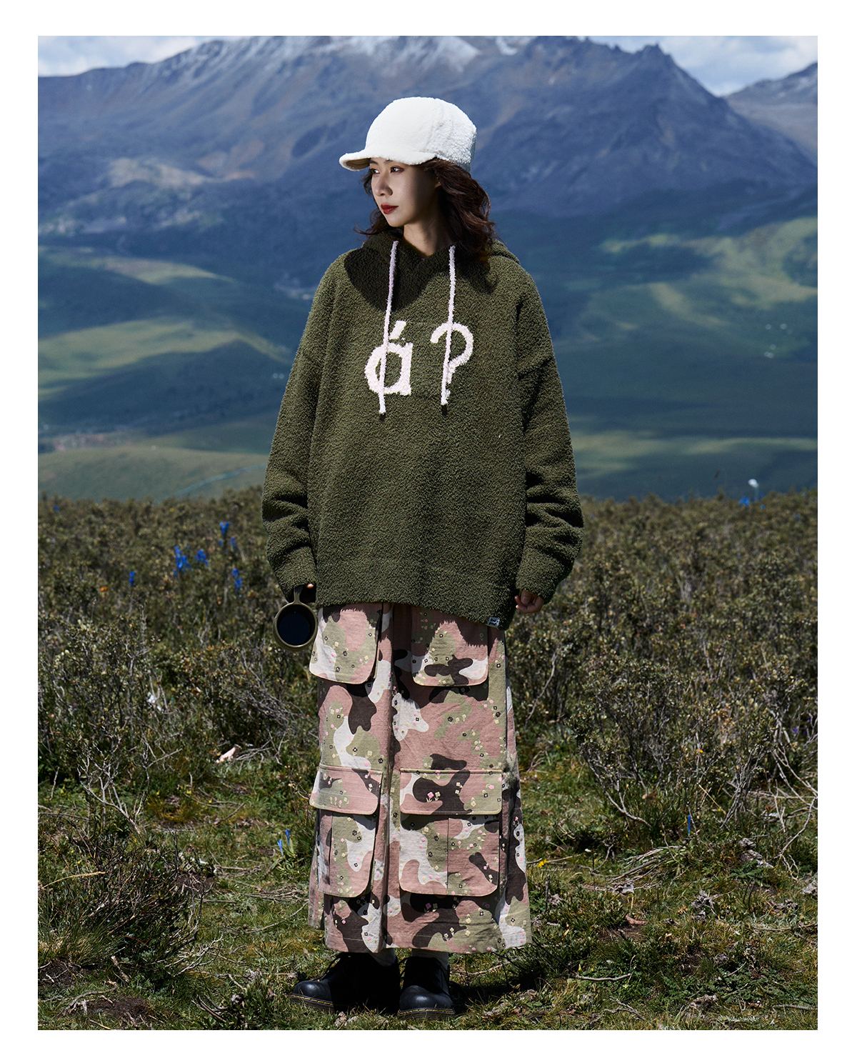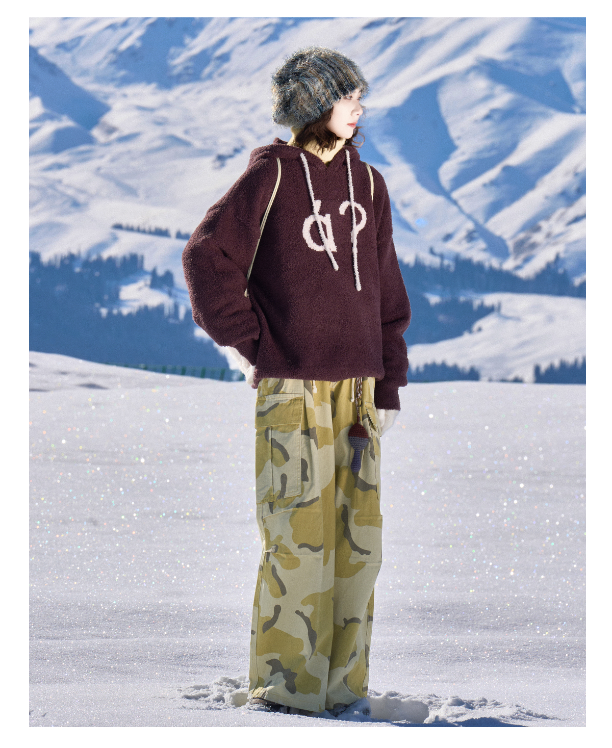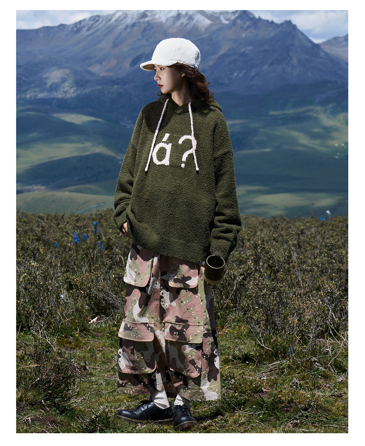 马得工地/MDGDMY244348/问号提花韩国绒连帽毛衣