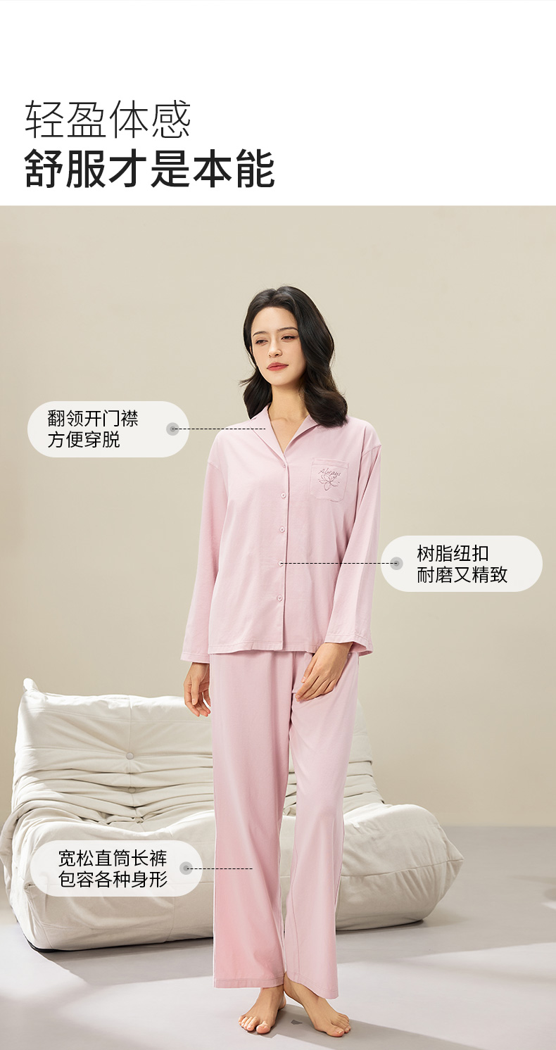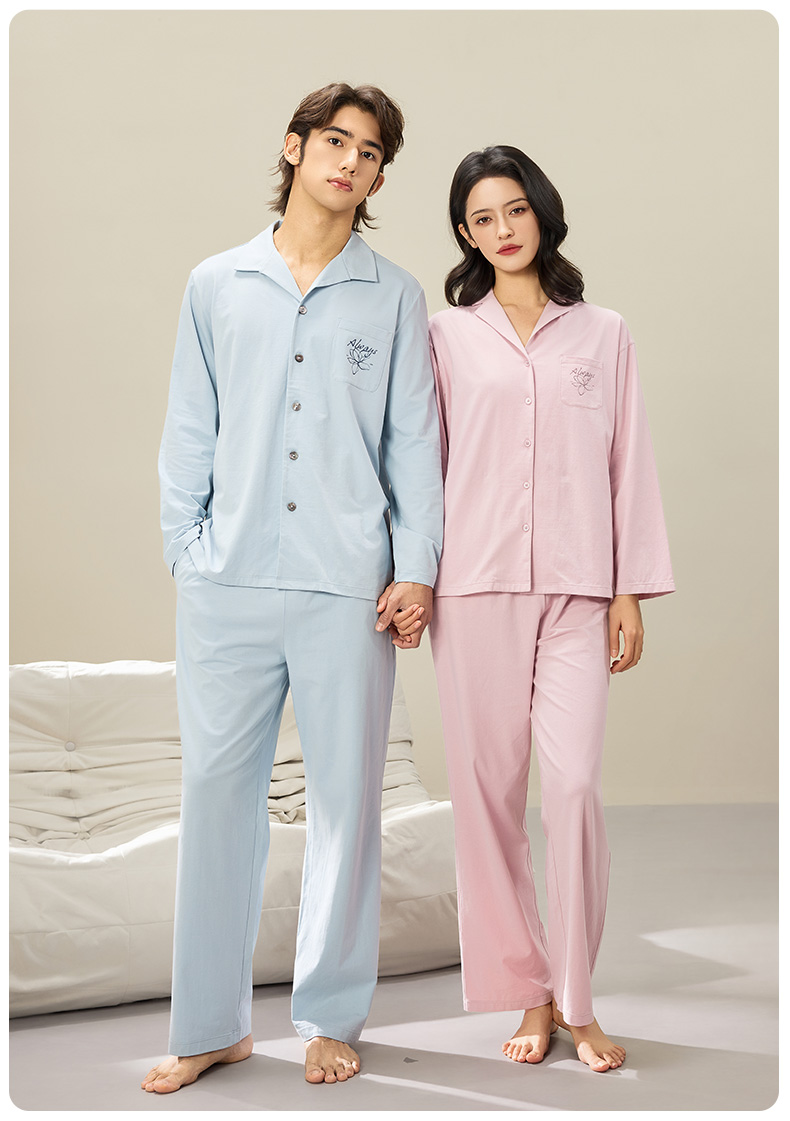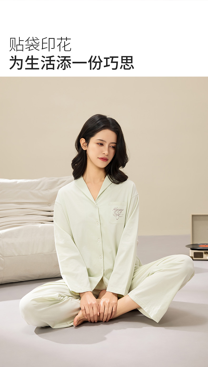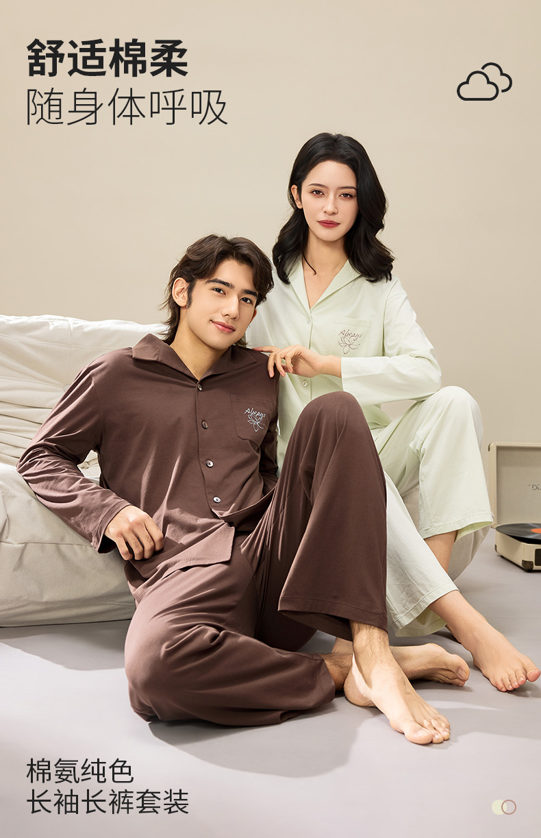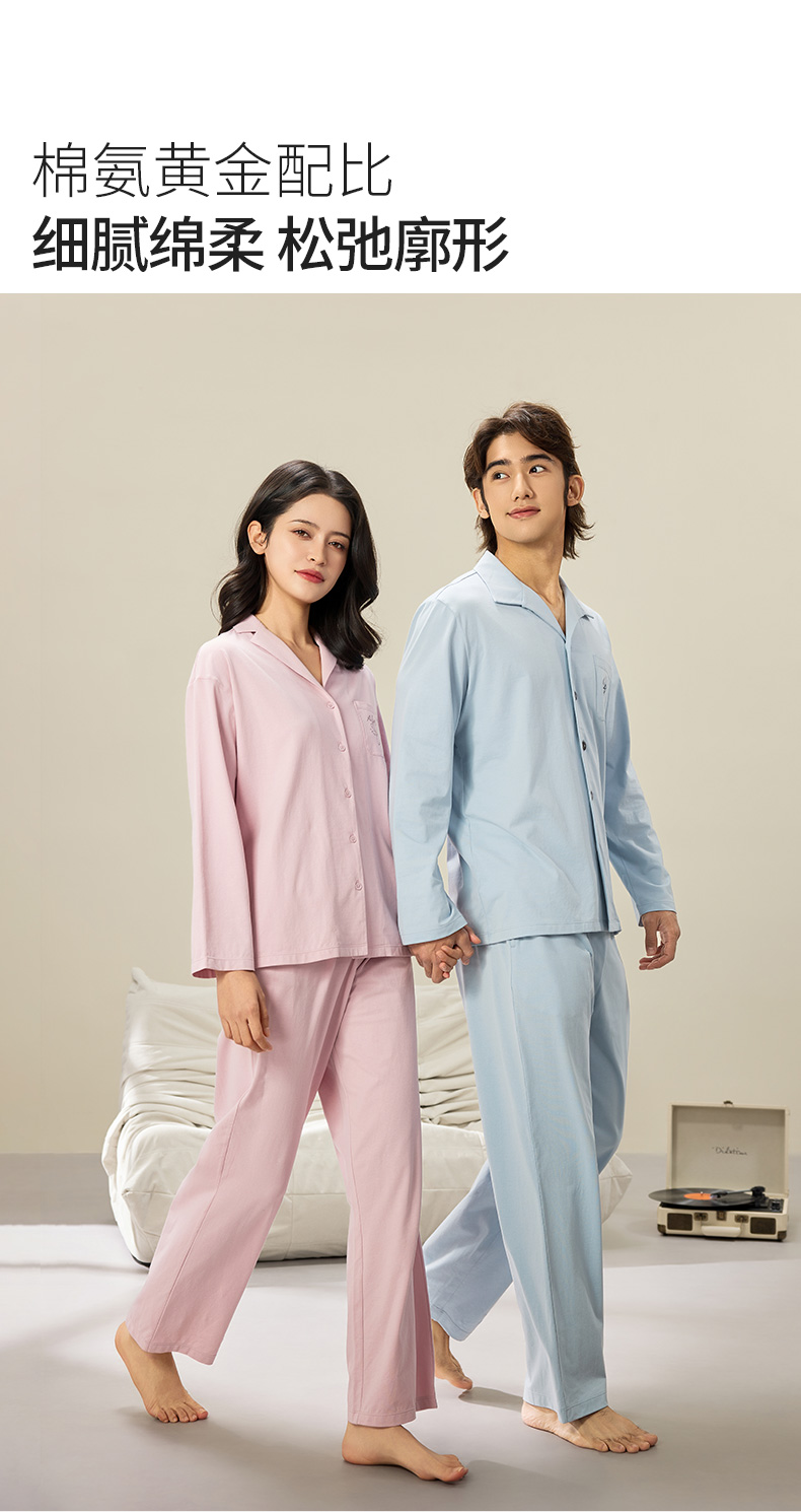 【春上新】长袖家居服套装棉弹力经典翻领长袖睡衣套装