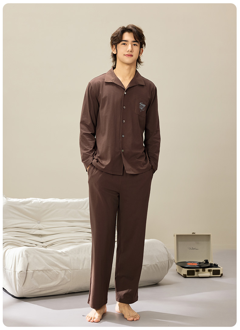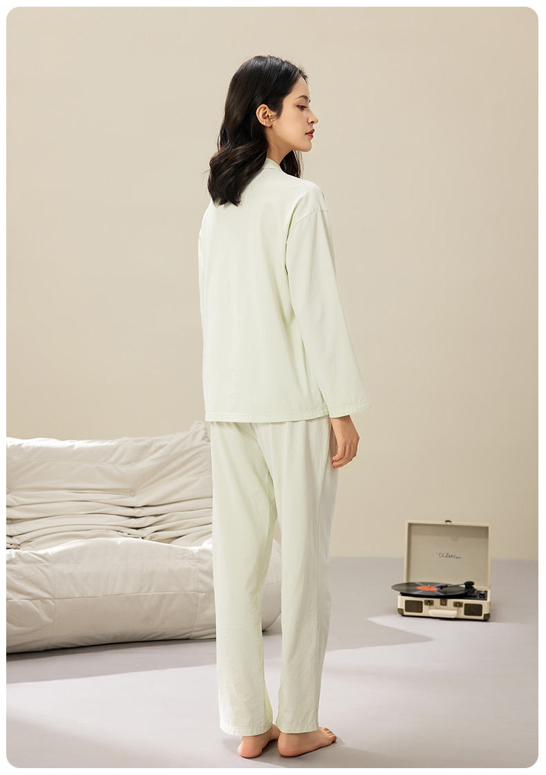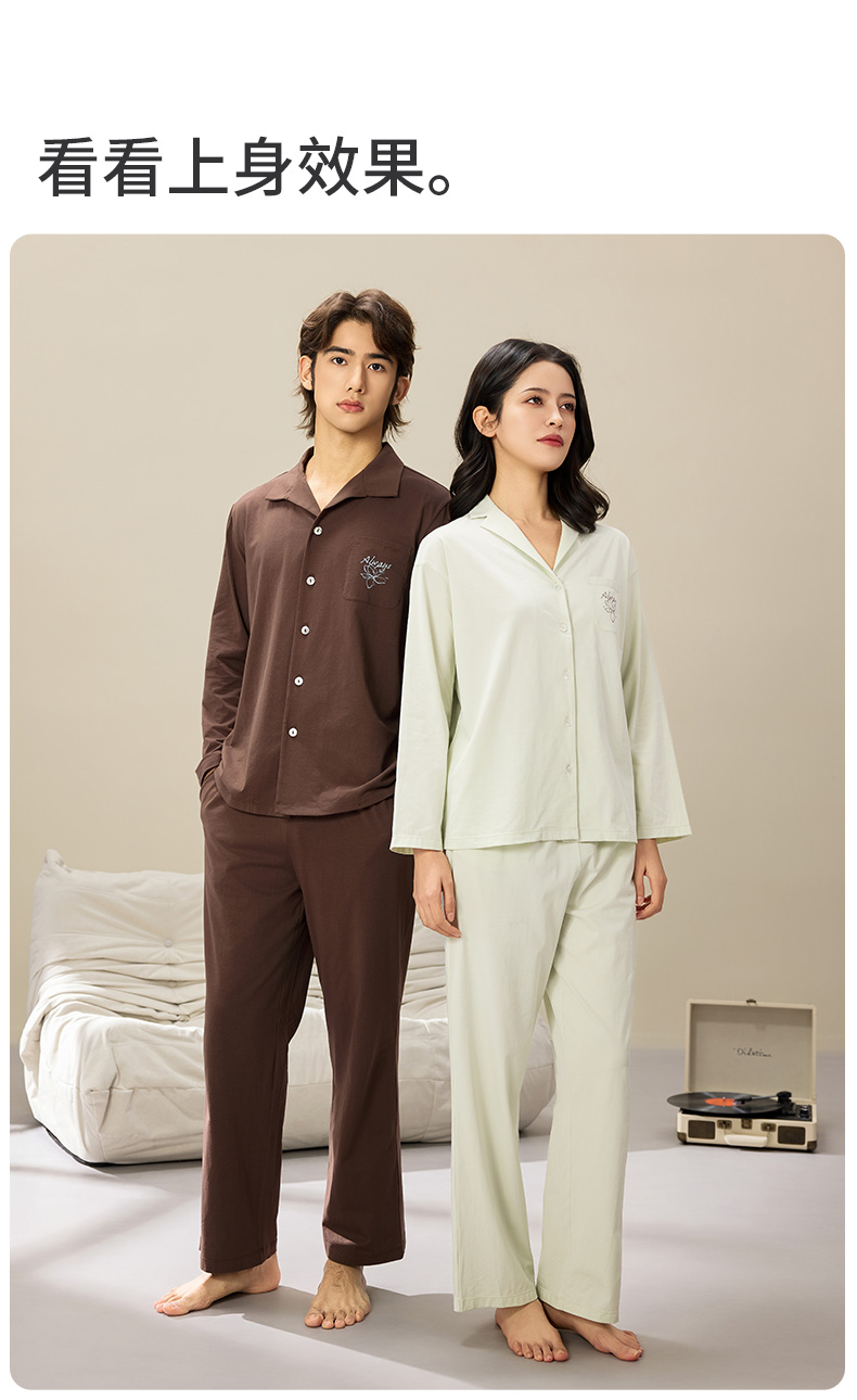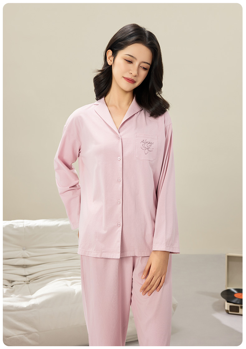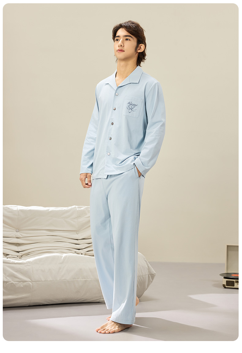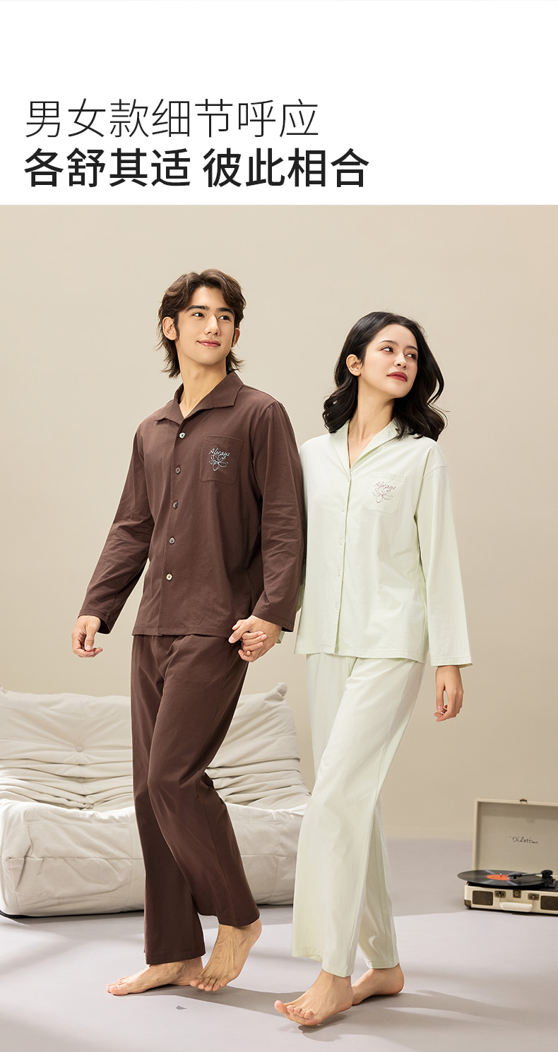 【春上新】长袖家居服套装棉弹力经典翻领长袖睡衣套装