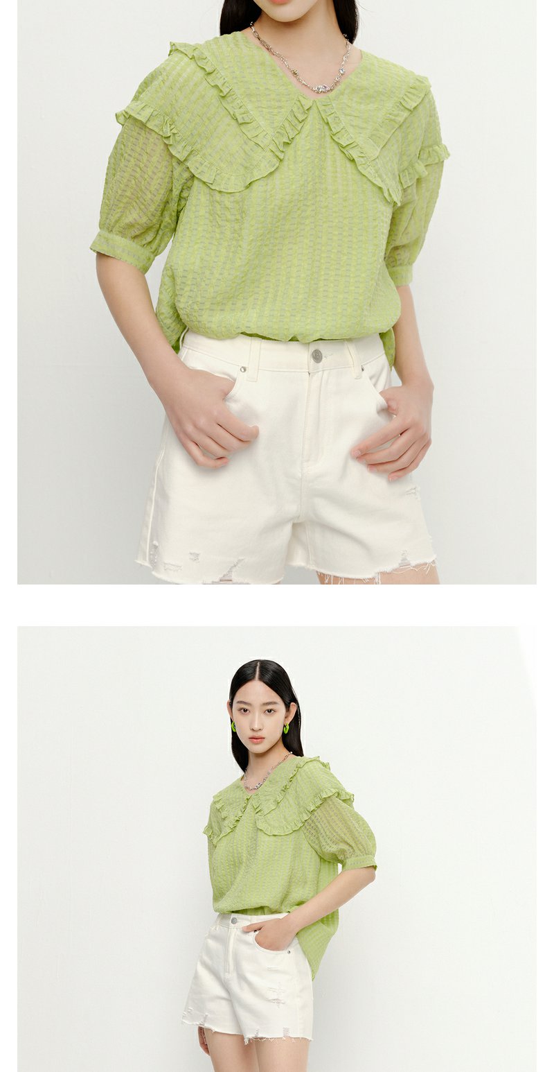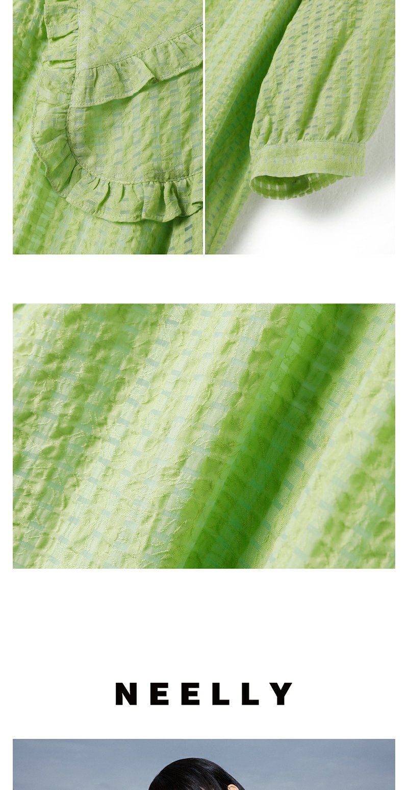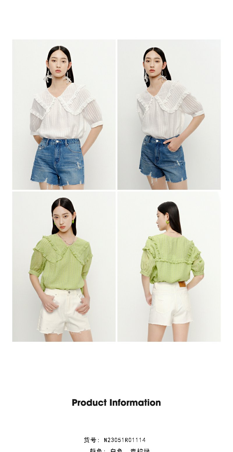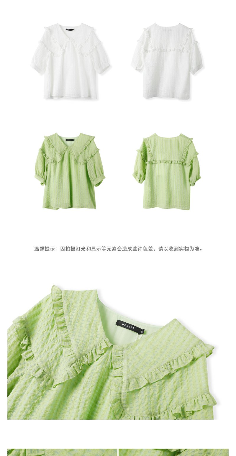 NEELLY纳俪商场同款夏季新款减龄可爱娃娃领衬衫女百搭五分袖上衣N23051R01114