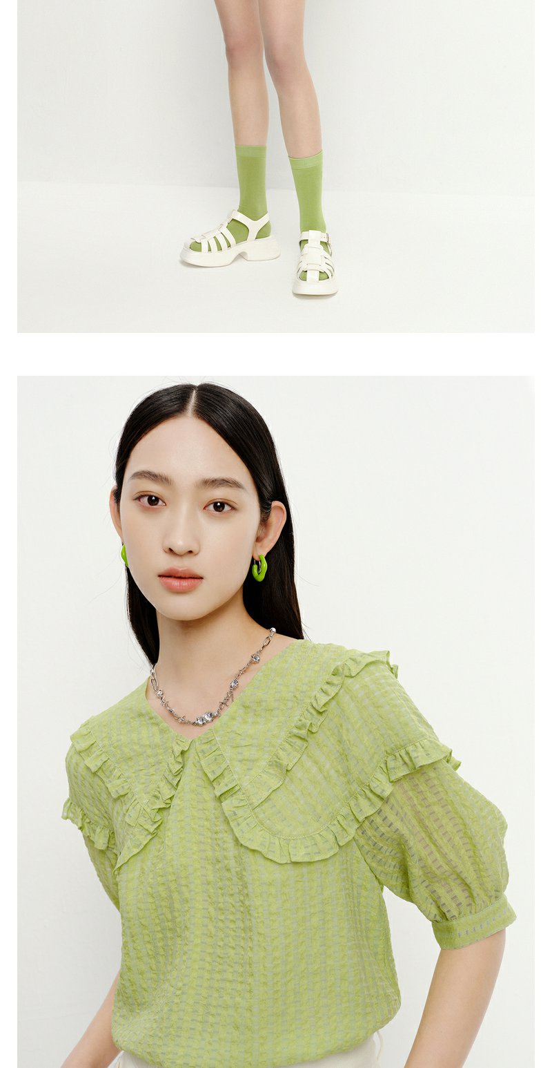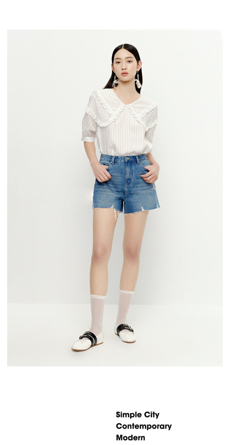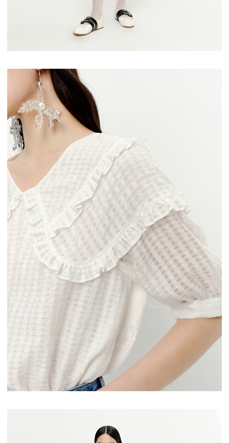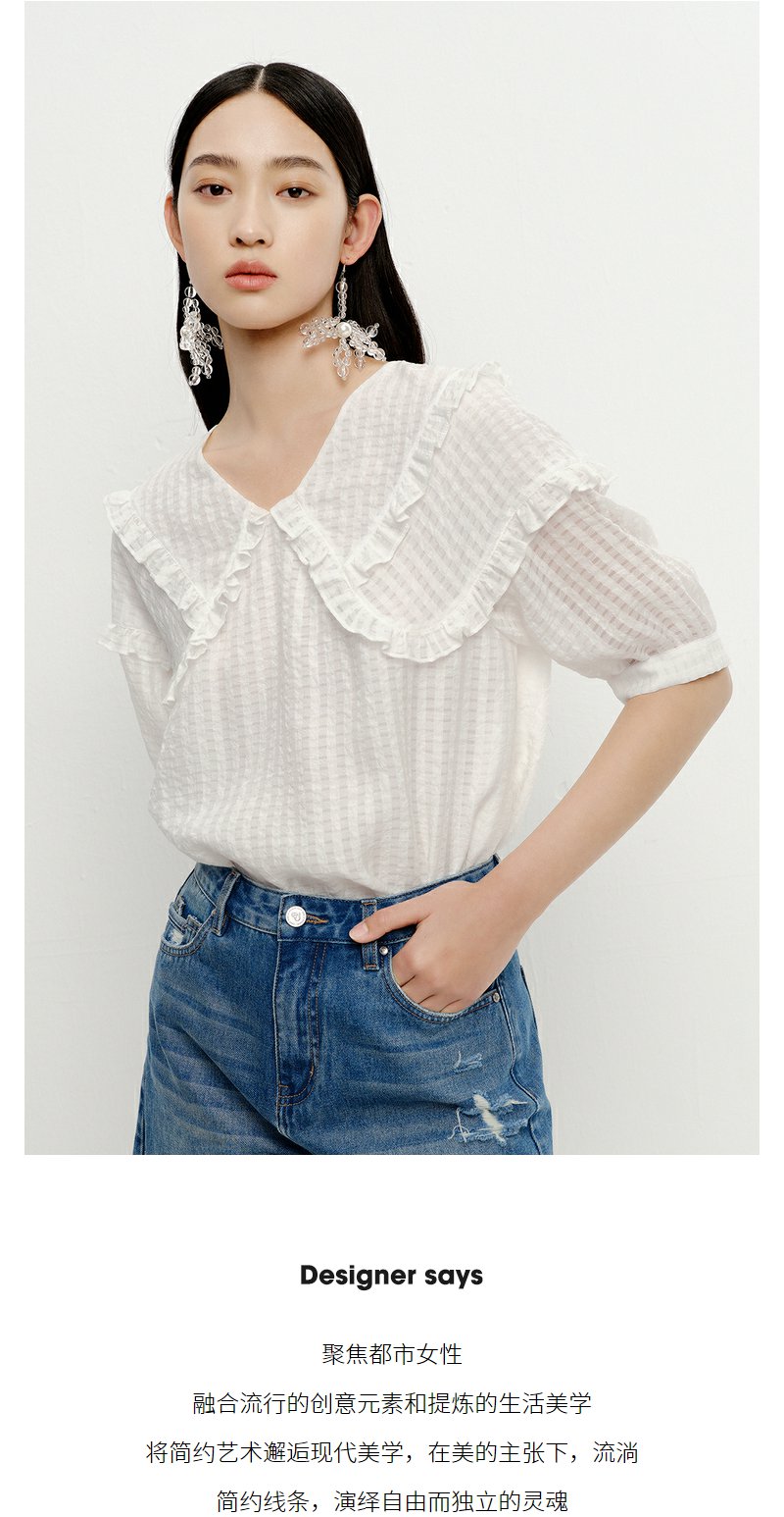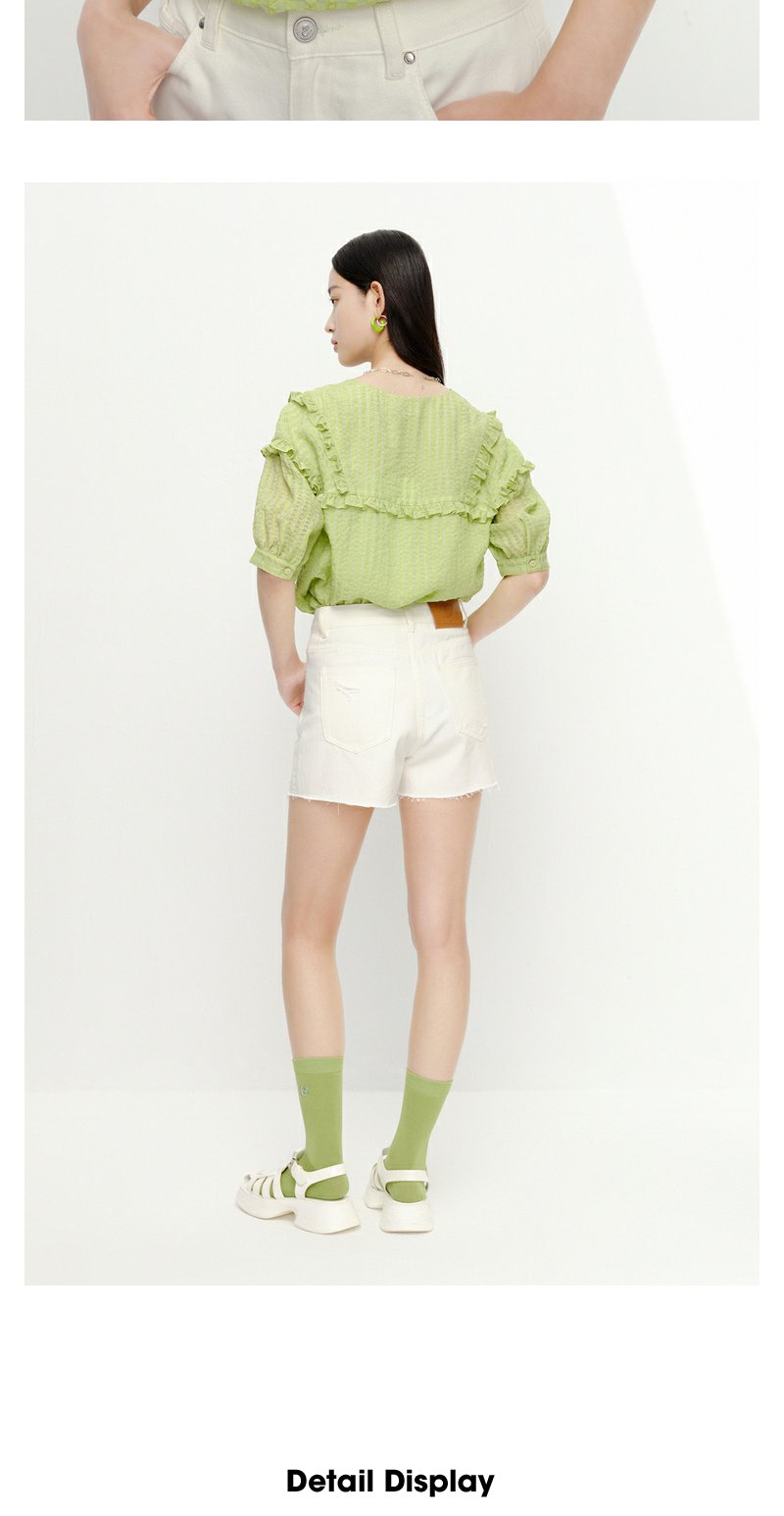 NEELLY纳俪商场同款夏季新款减龄可爱娃娃领衬衫女百搭五分袖上衣N23051R01114