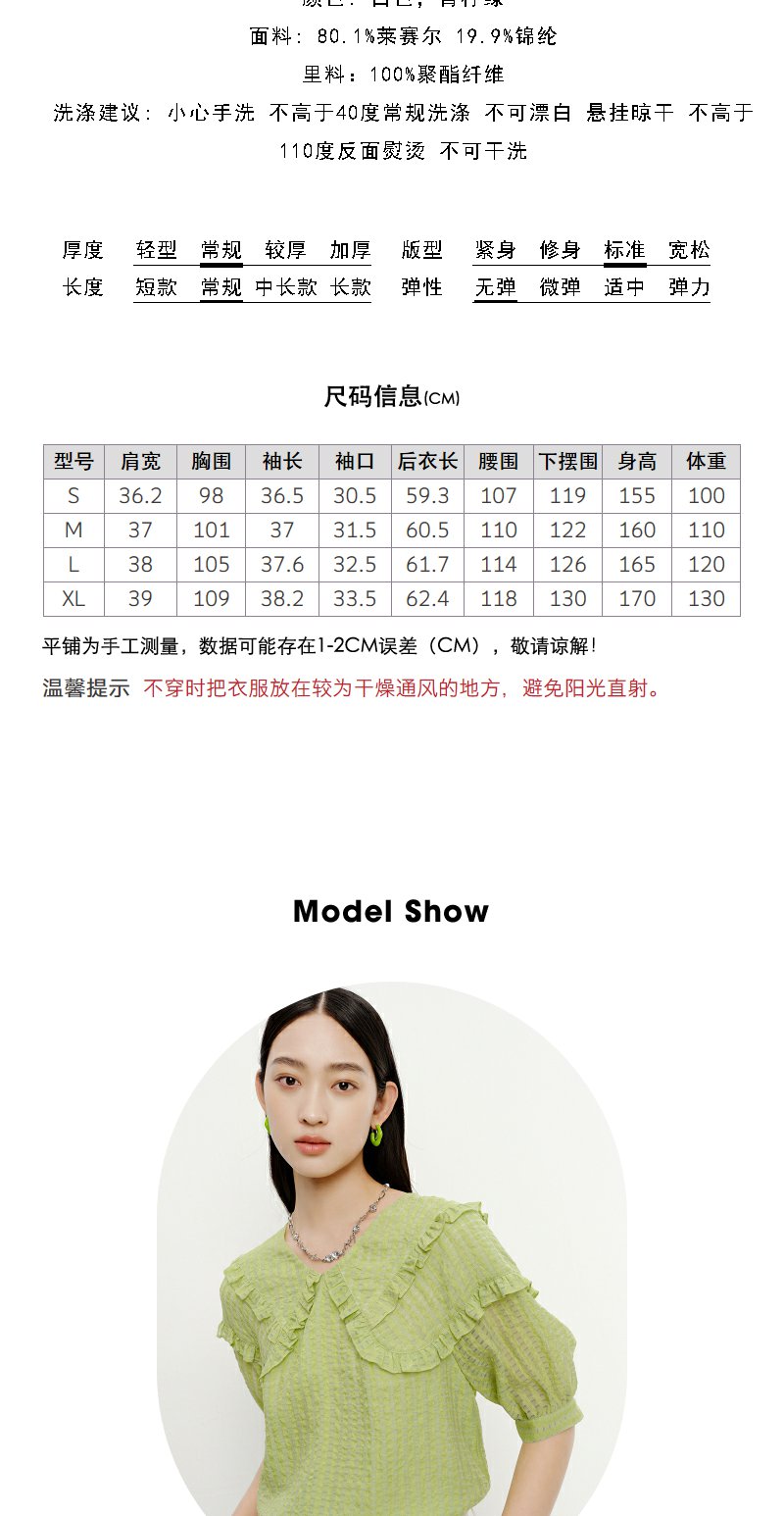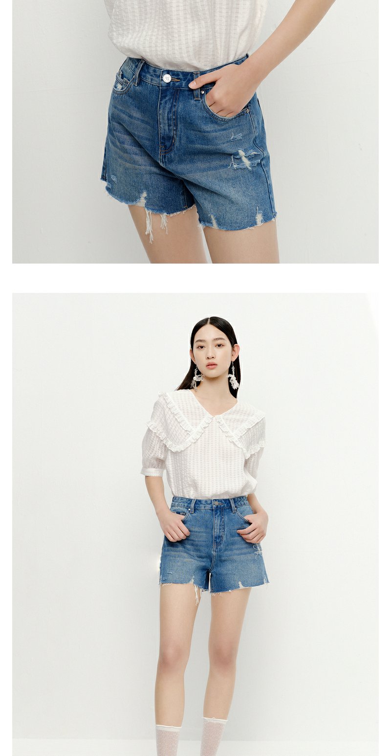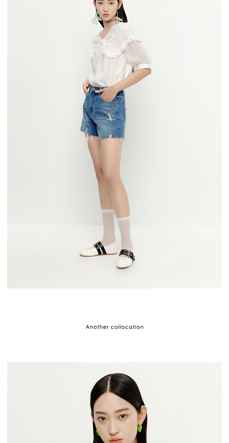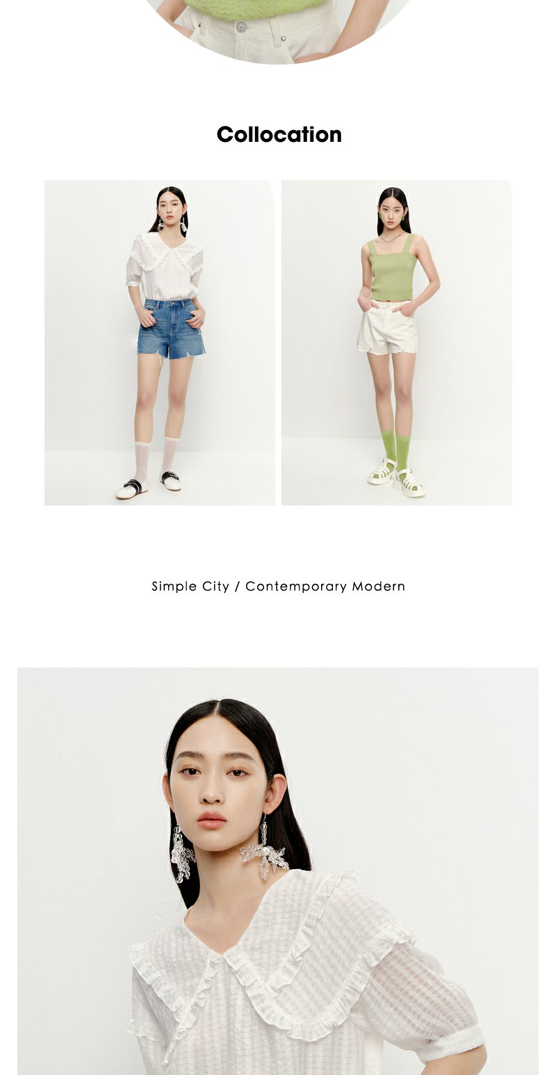 NEELLY纳俪商场同款夏季新款减龄可爱娃娃领衬衫女百搭五分袖上衣N23051R01114