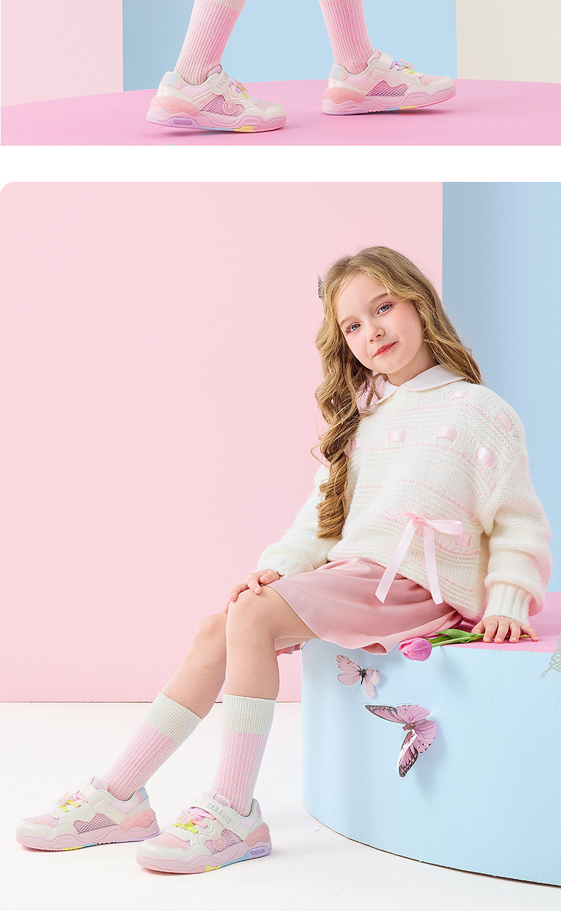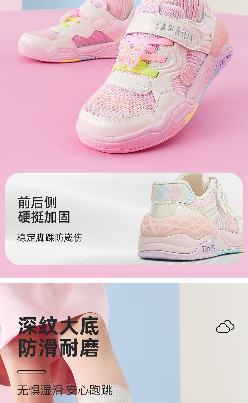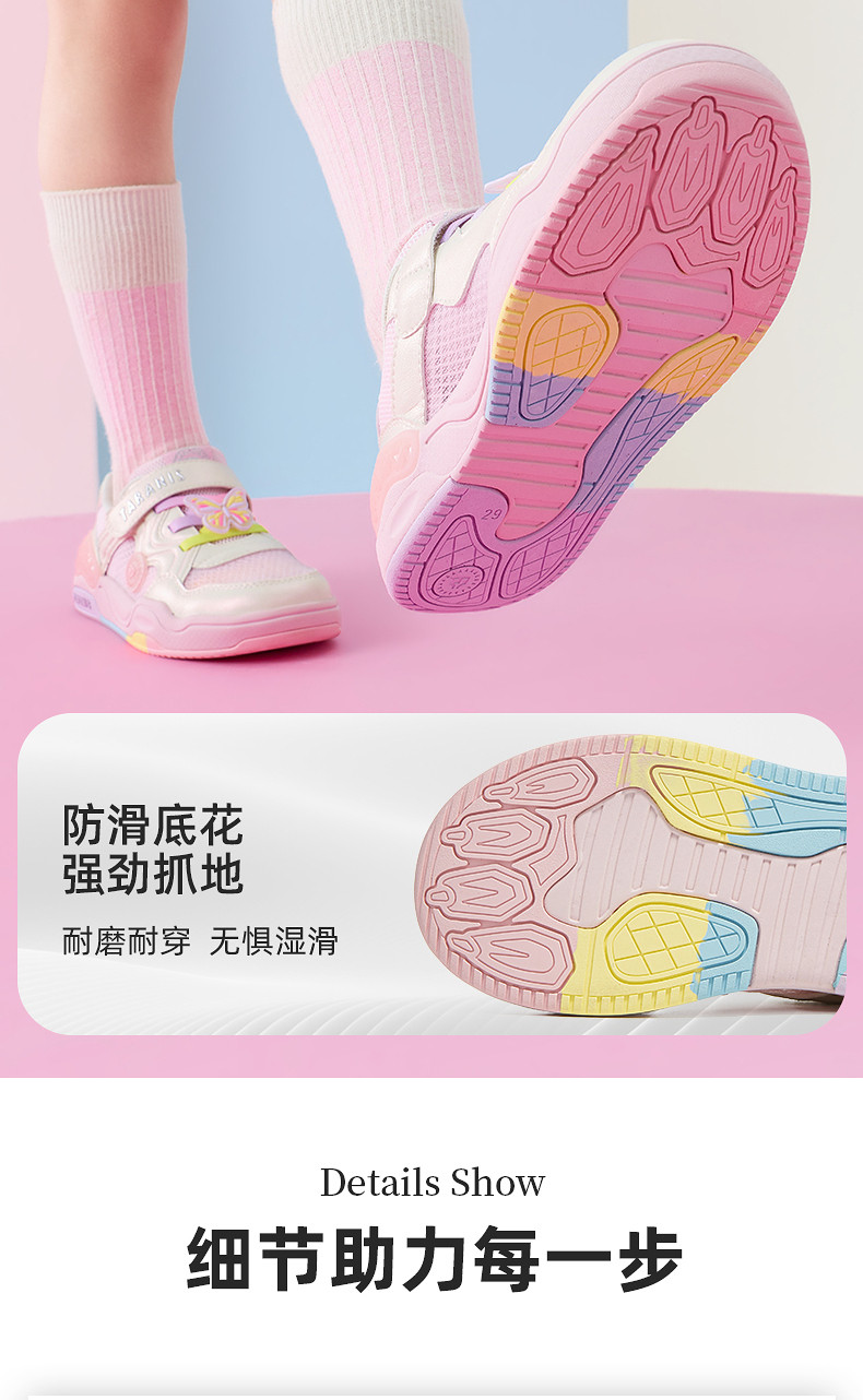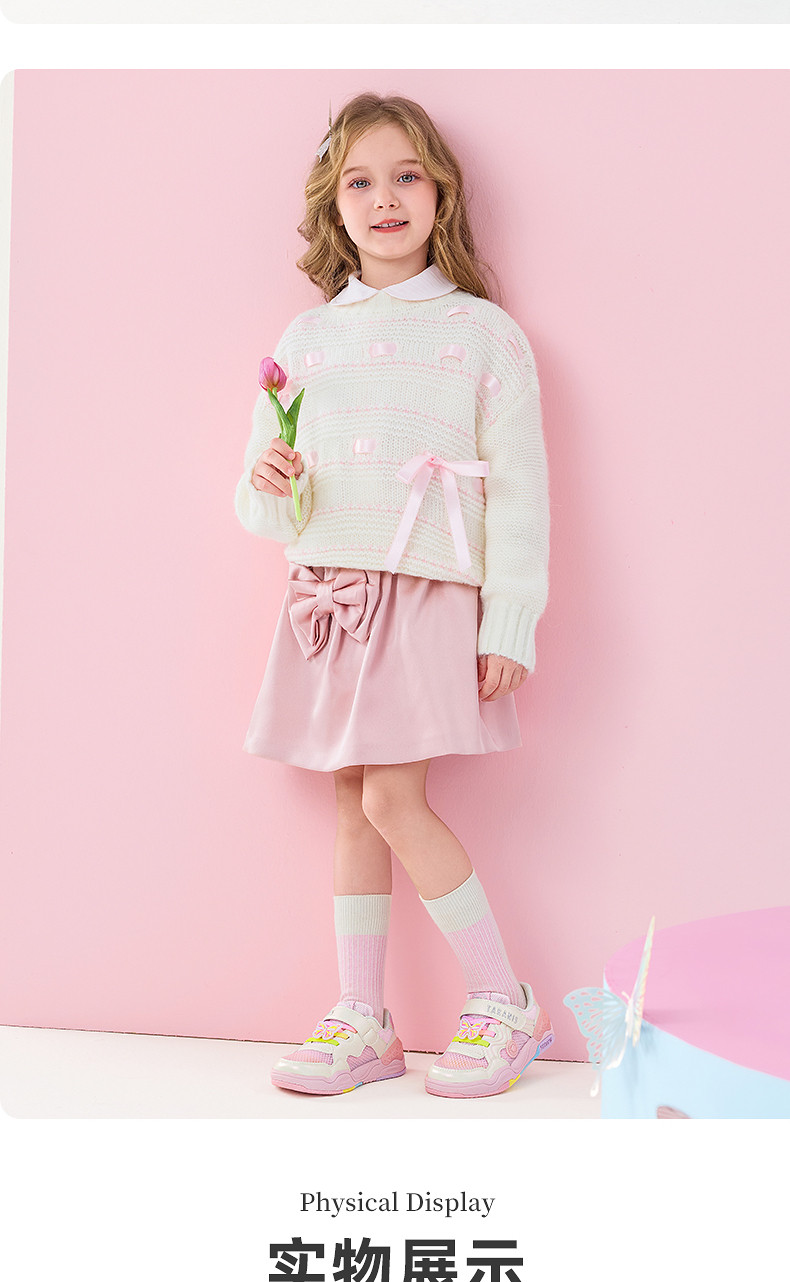 泰兰尼斯女童板鞋26春甜心公主粉色运动鞋甜美时尚单鞋休闲鞋子T02X6A8715