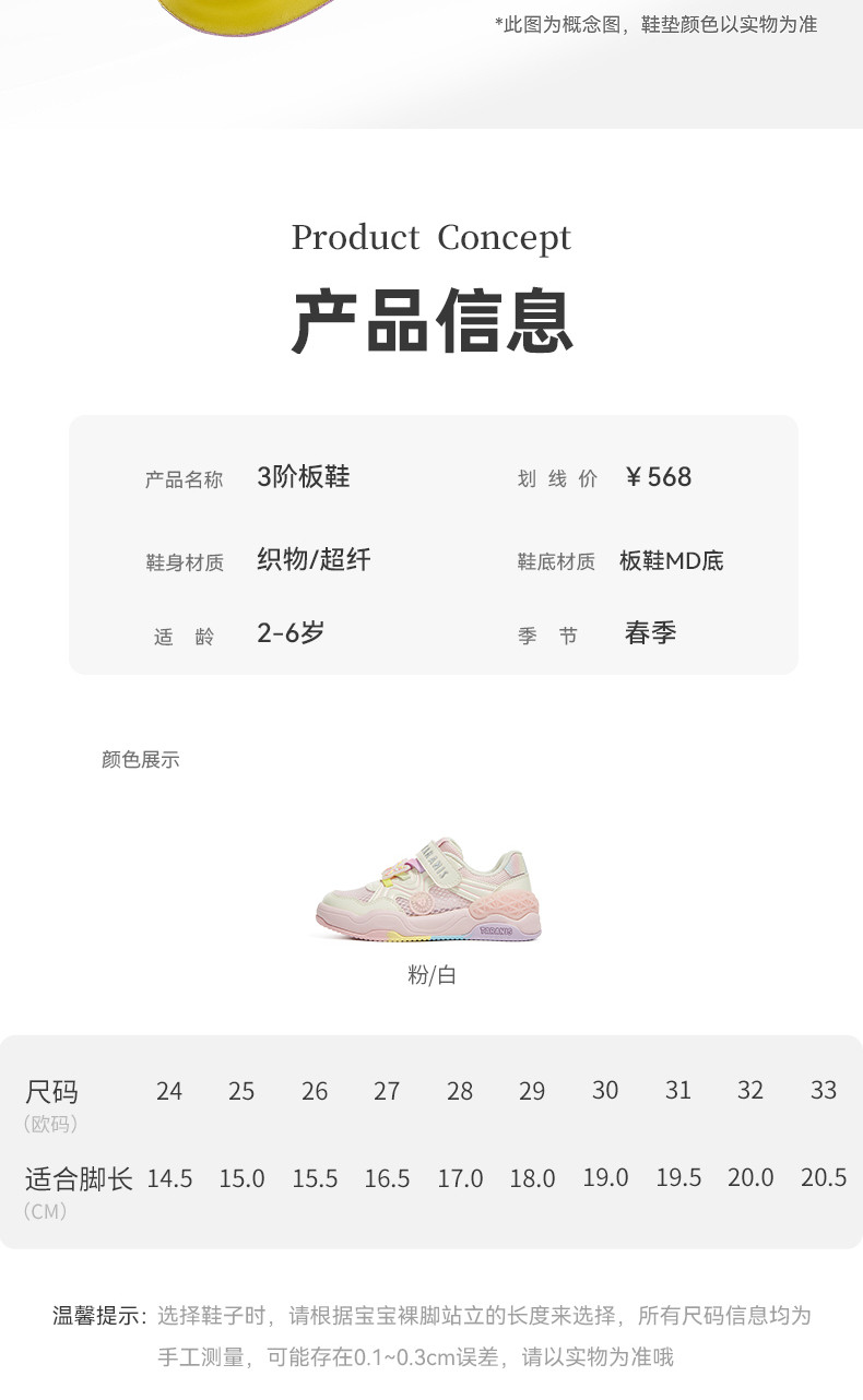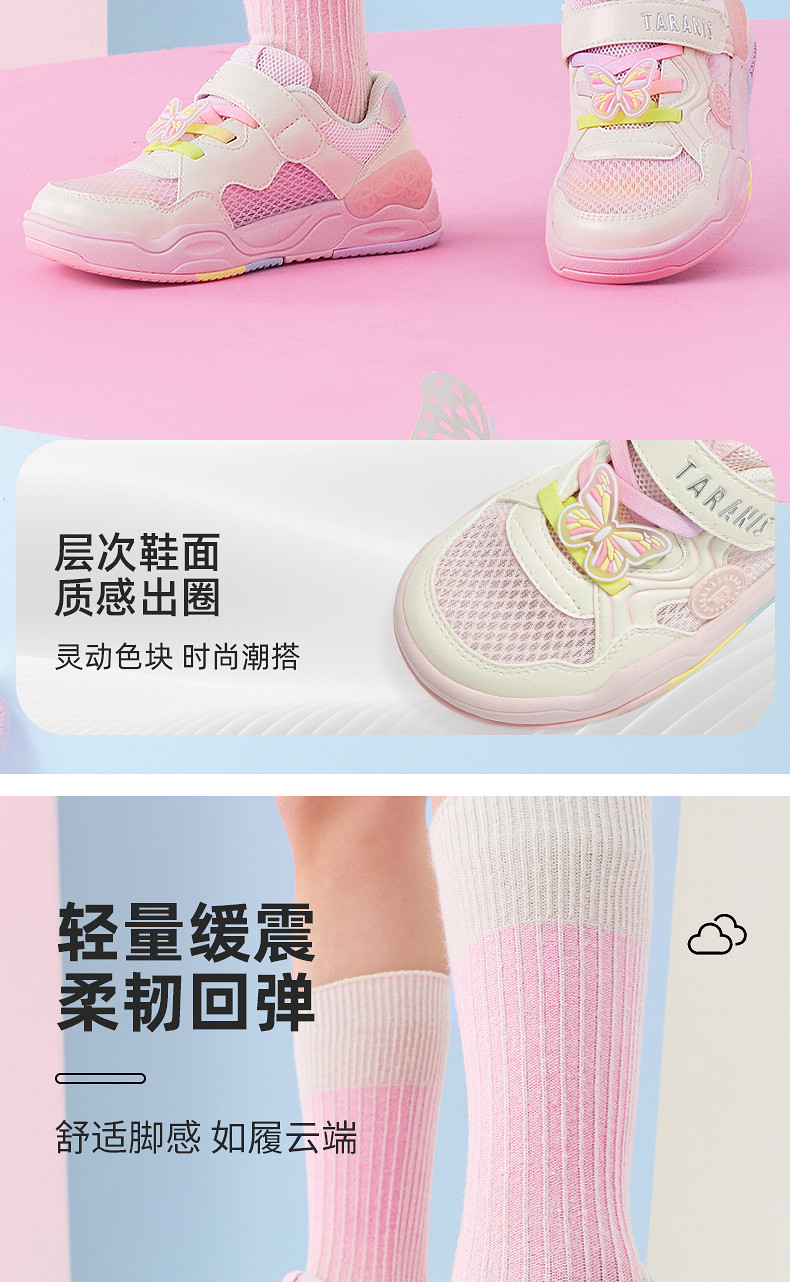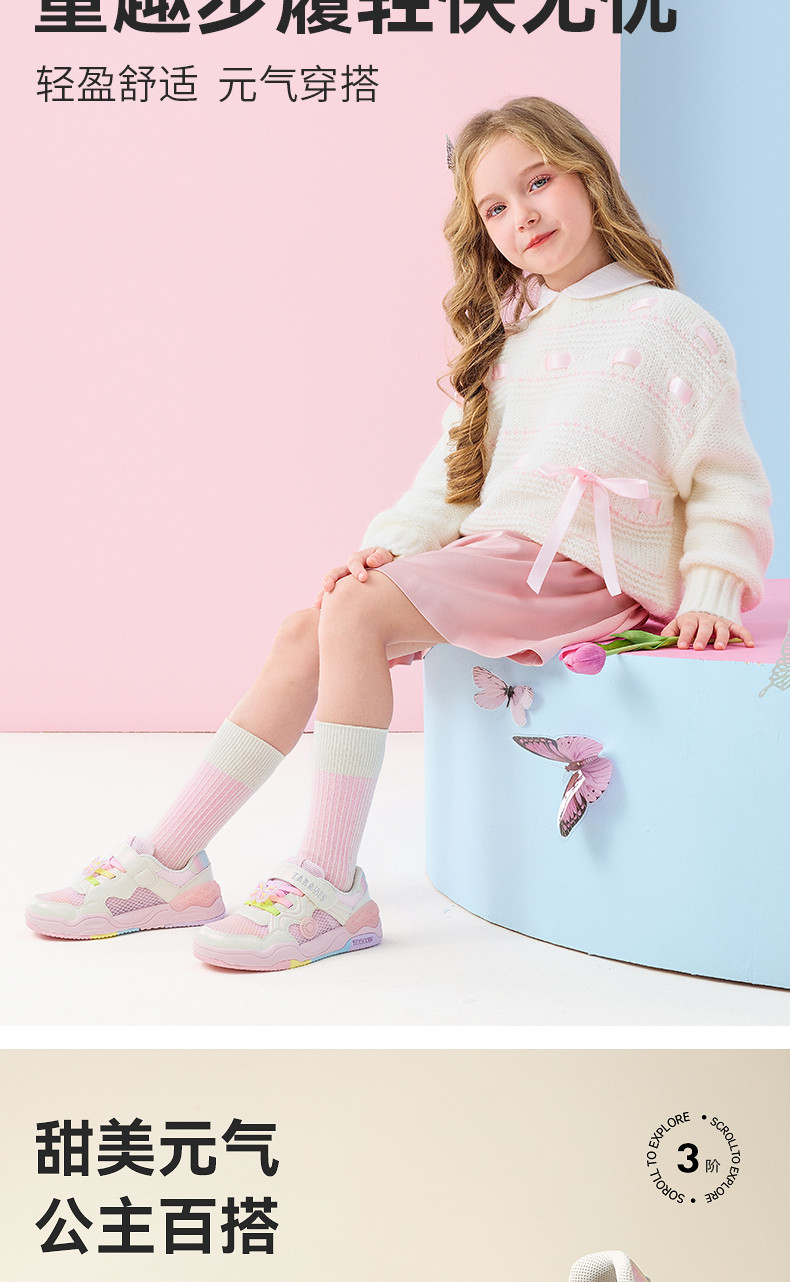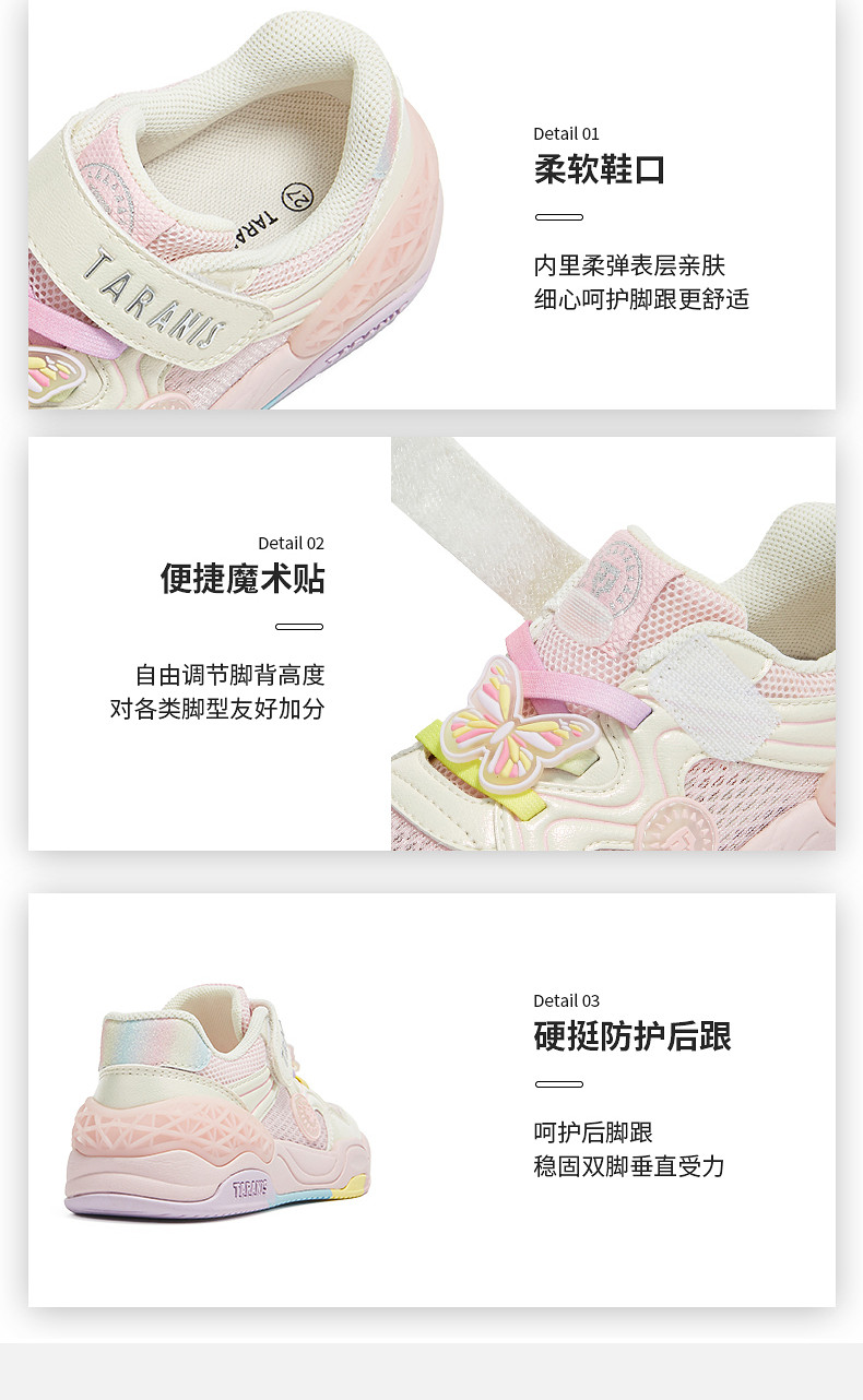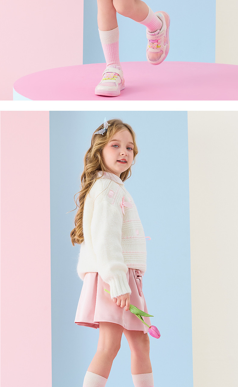 泰兰尼斯女童板鞋26春甜心公主粉色运动鞋甜美时尚单鞋休闲鞋子T02X6A8715