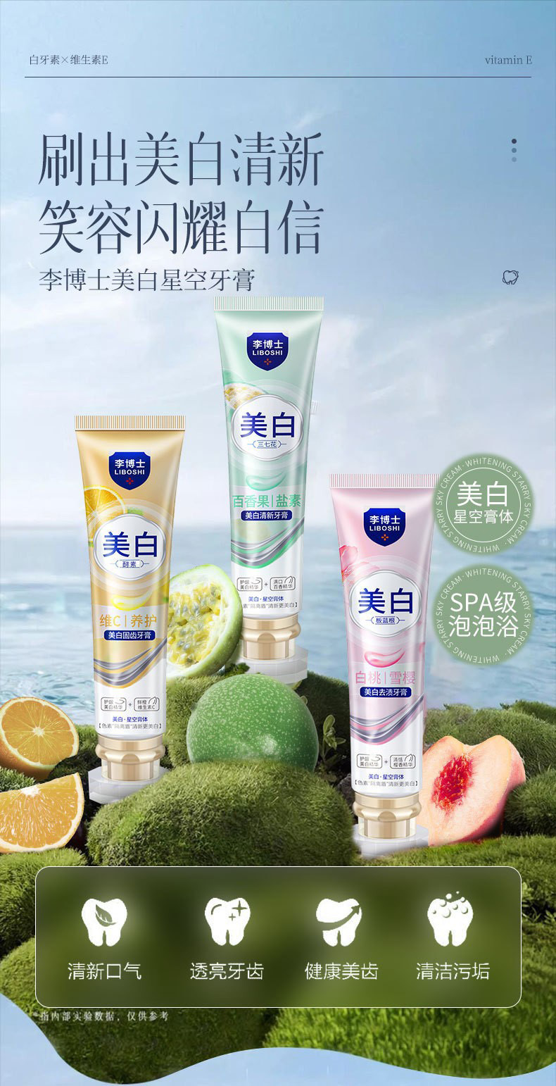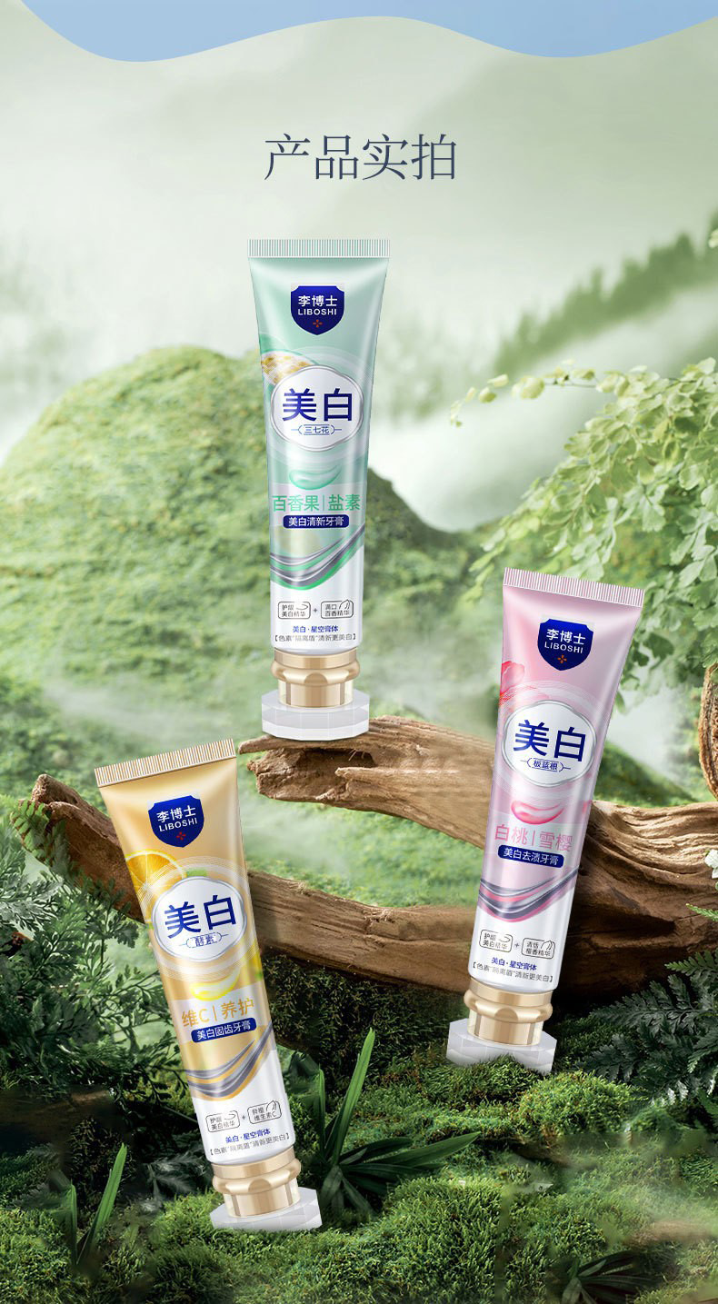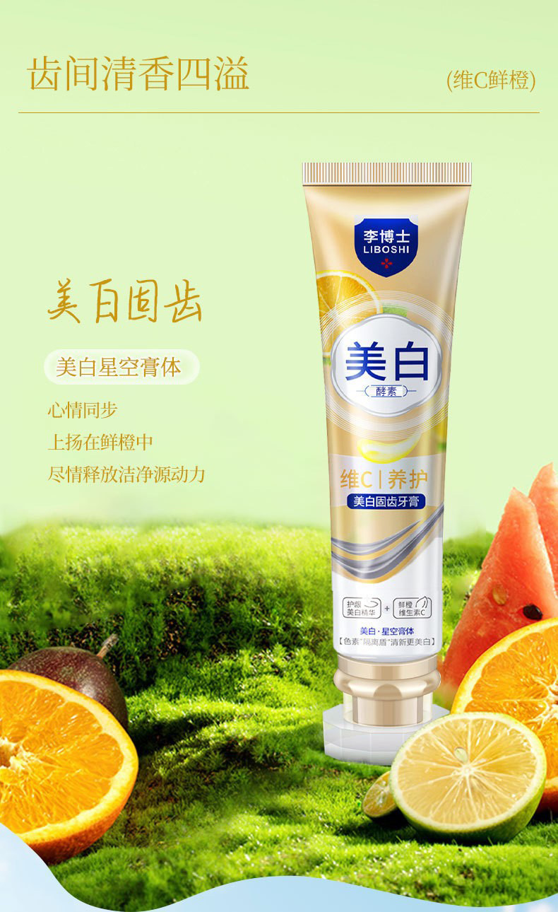 李博士清洁口腔牙齿 固齿去渍清新口气美白牙膏 苦地丁板蓝根三七花多种成分 维c白桃百香果三种口味选择140g/支