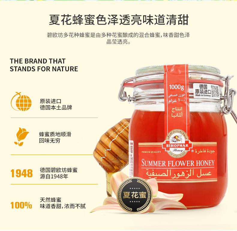 德国碧欧坊精制夏花多花种蜂蜜1000g/500g 天然夏花成熟多花种百花蜂蜜 032703/032700