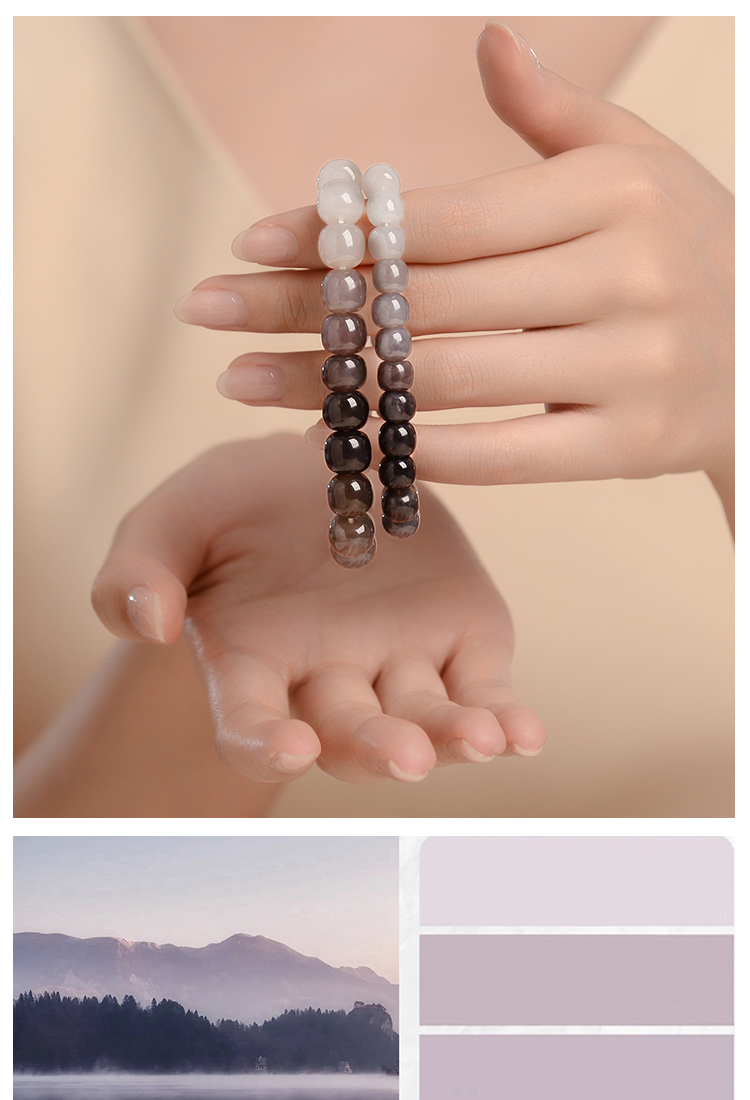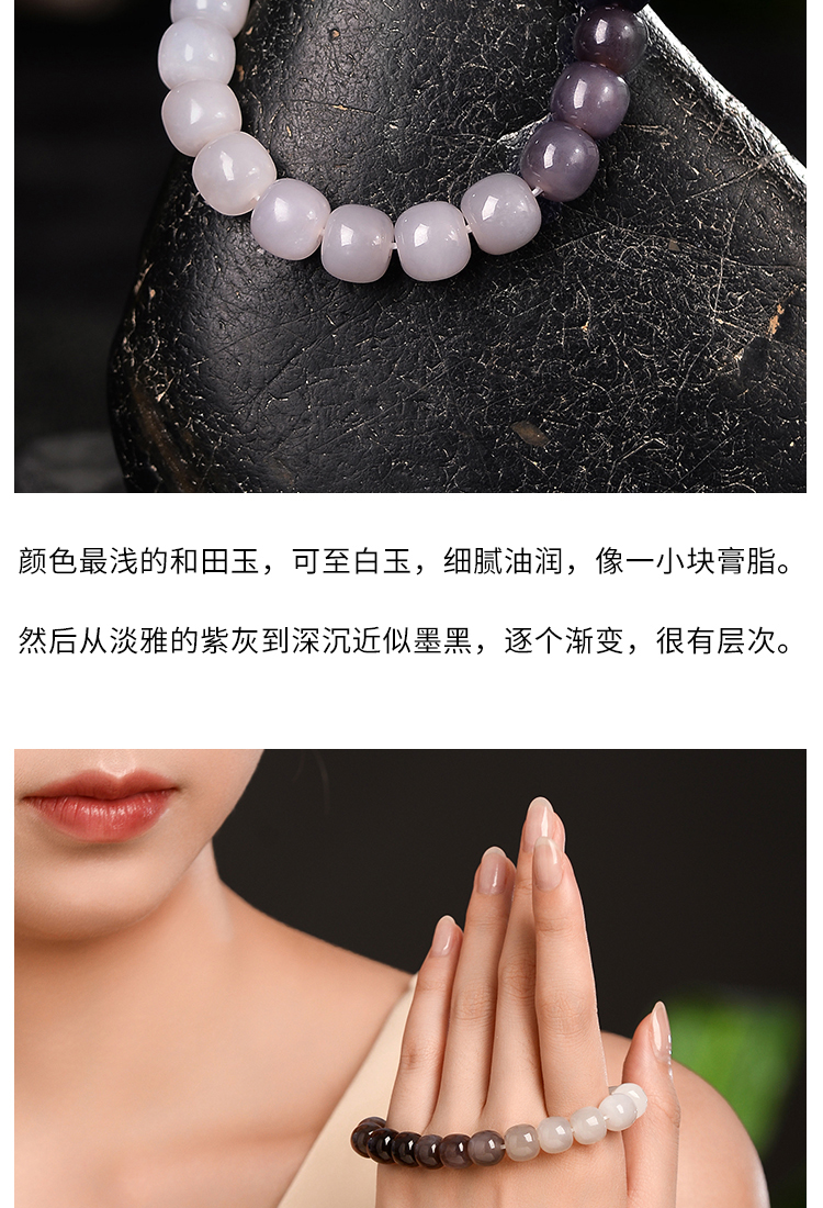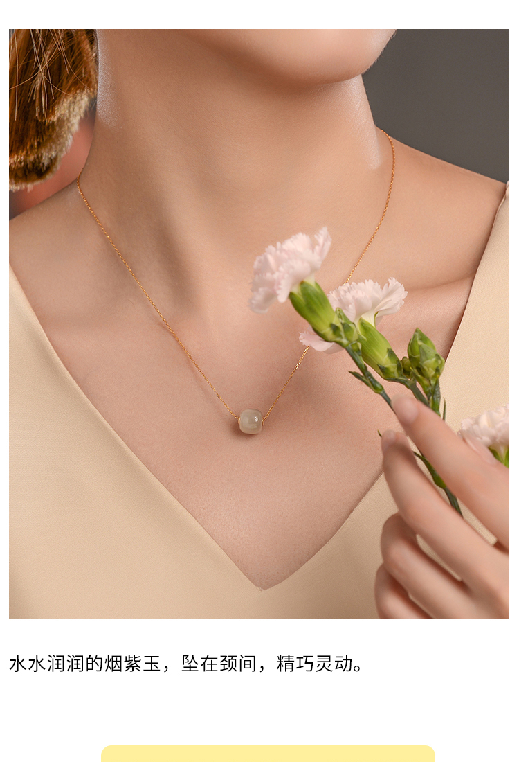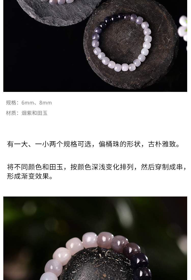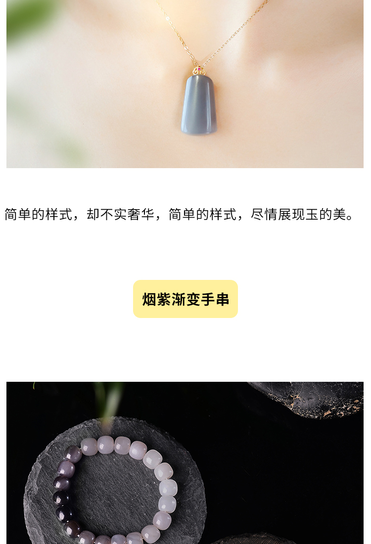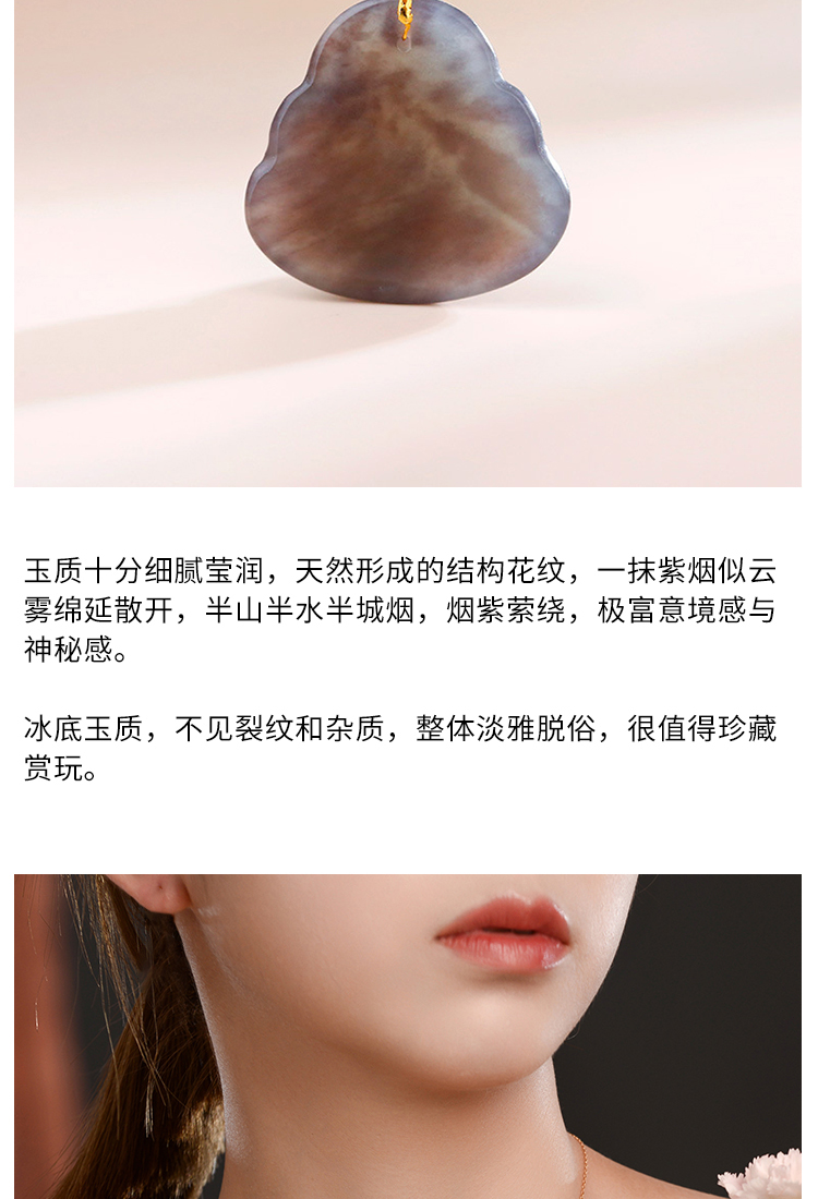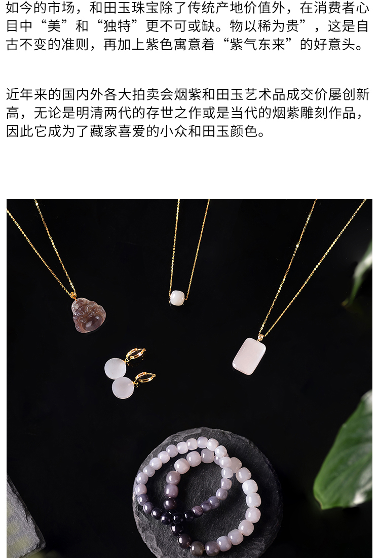 精选温润老熟的和田玉冰底烟紫玉料首饰系列