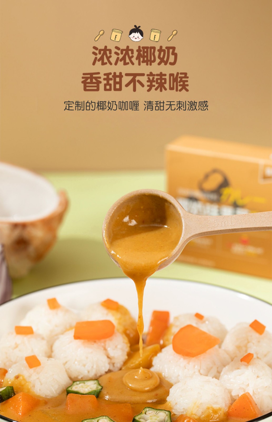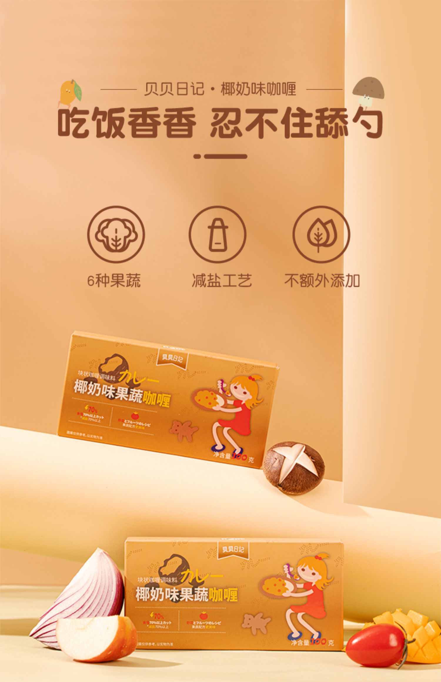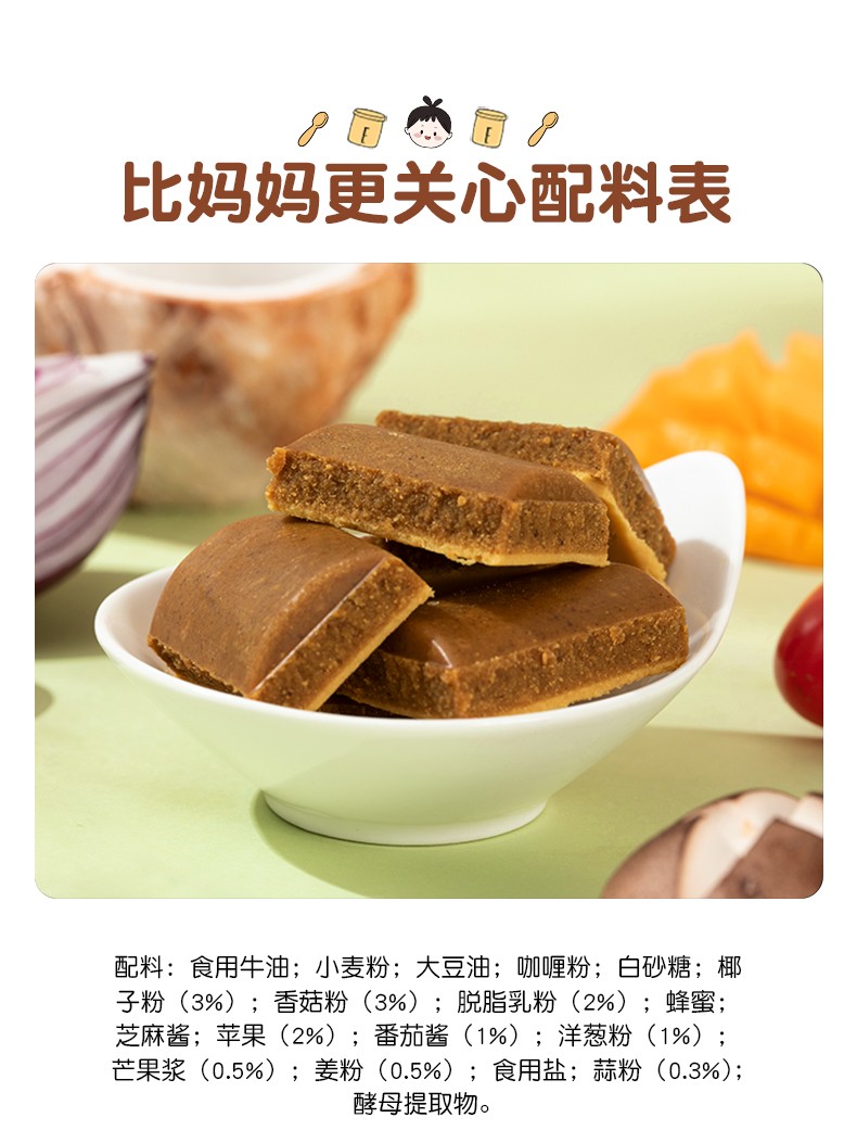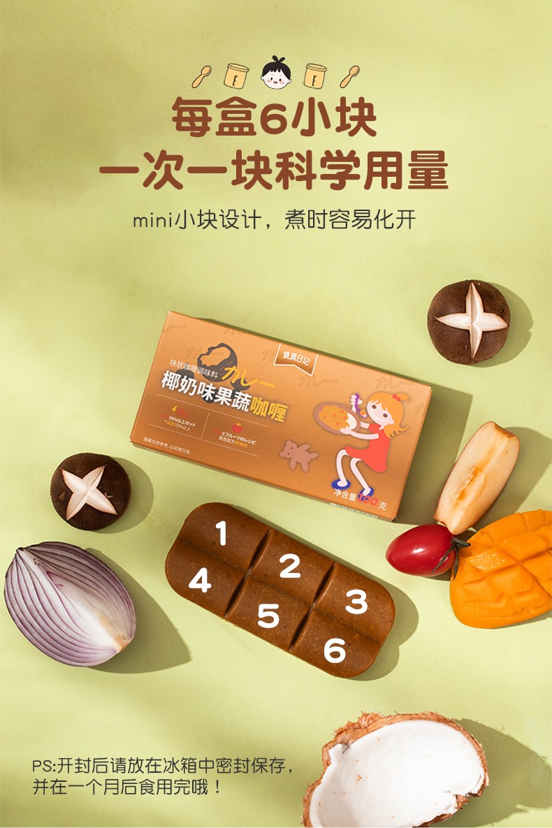 贝贝日记椰奶味果蔬咖喱减盐70%100g/盒*2