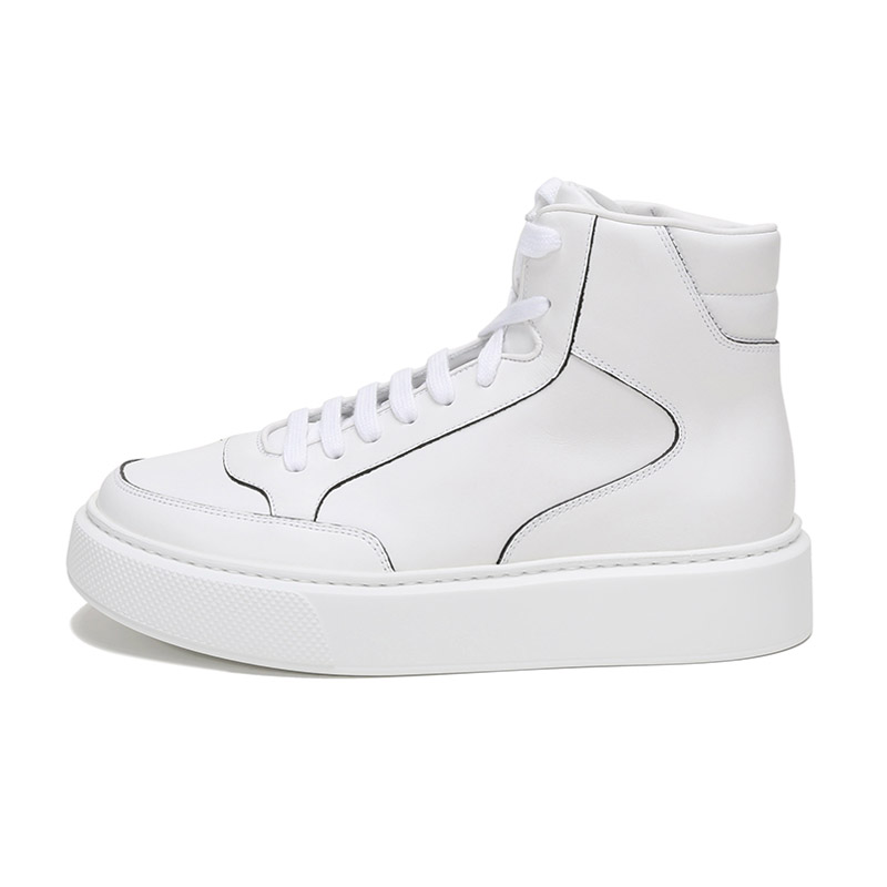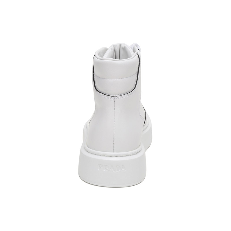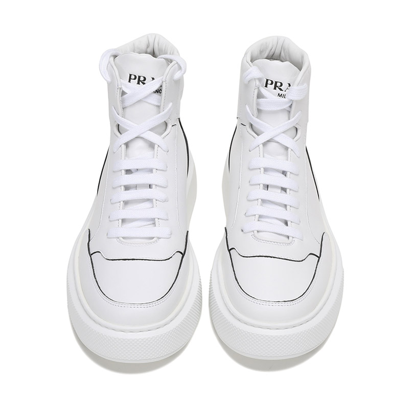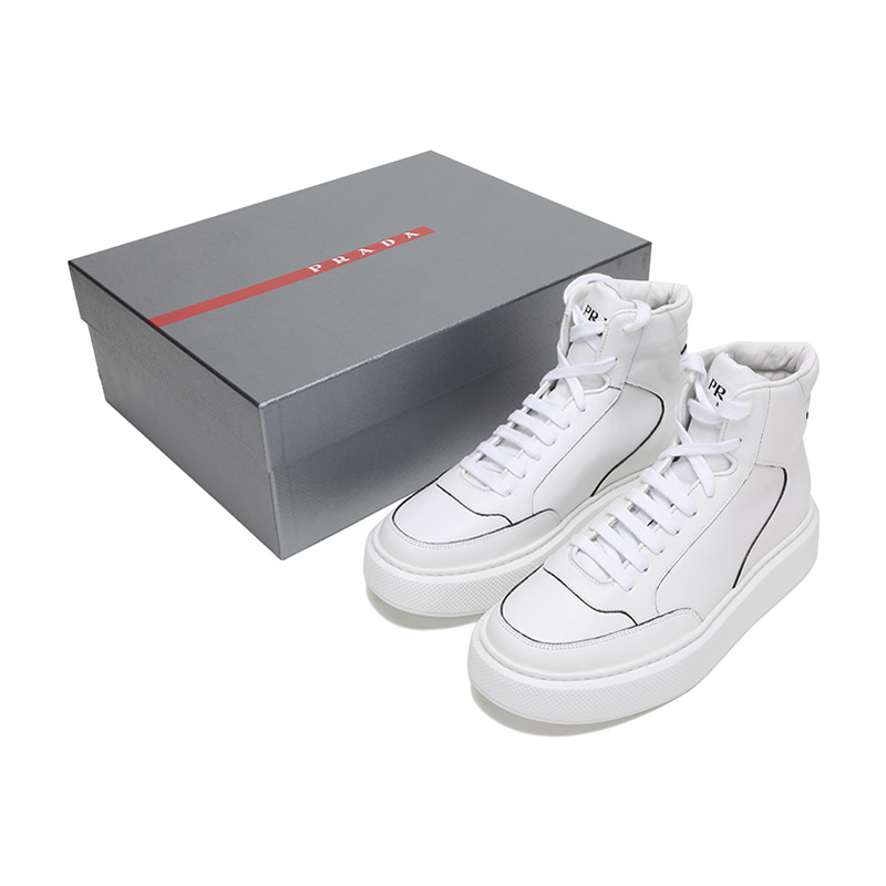 品牌:PRADA/普拉达产地:意大利等国(批次不同、产地不同)款式:男士颜色:白色材质:鞋面:牛皮;鞋底:橡胶;内里:皮革结构:鞋长约28.8cm,鞋宽约11.4cm,跟高约4cm(此为5码测量)