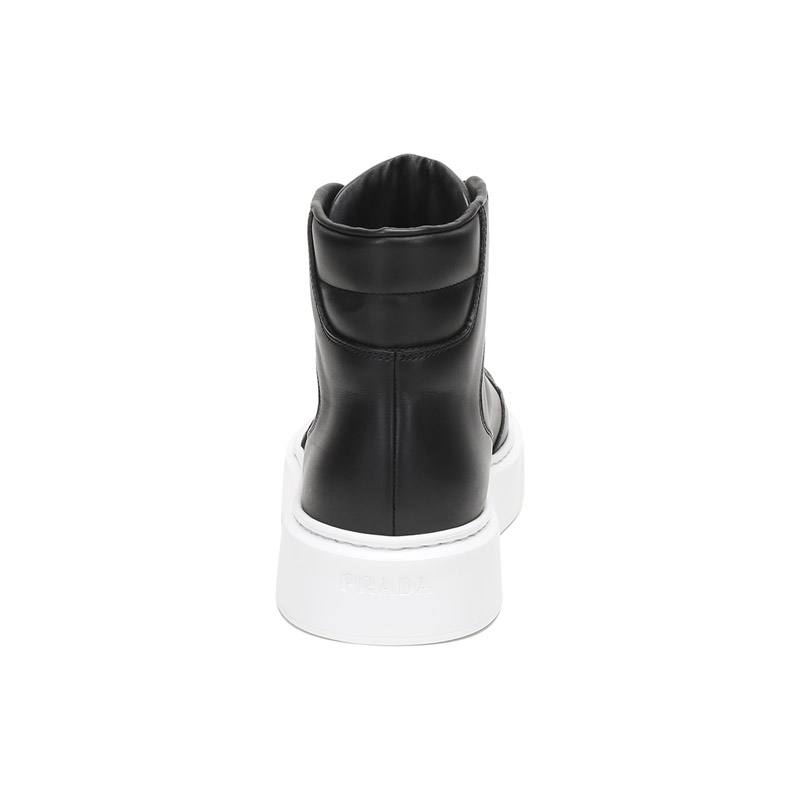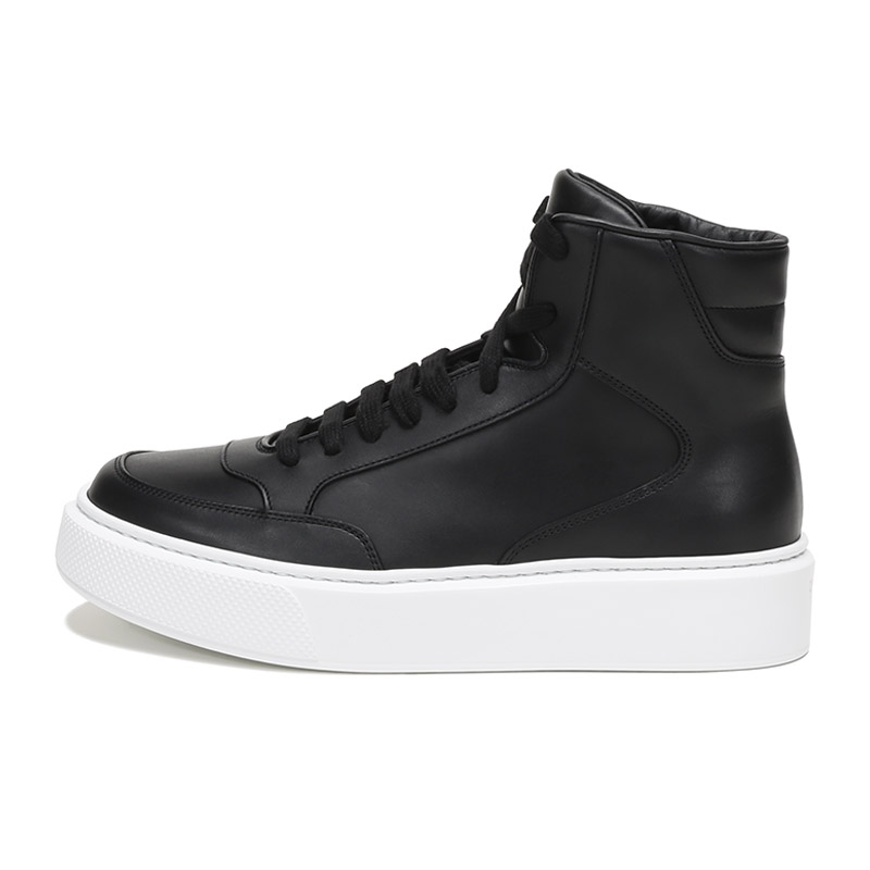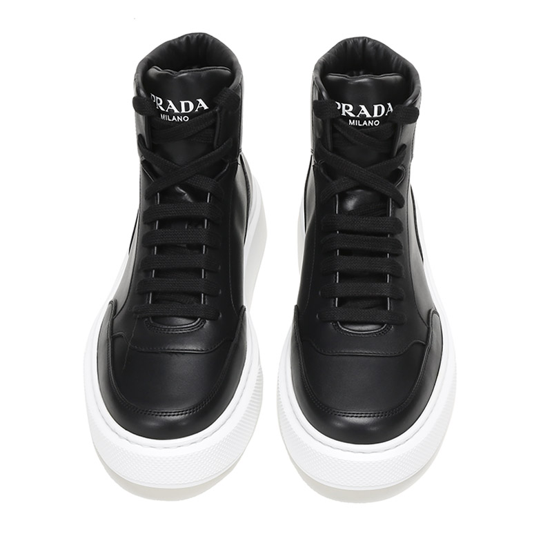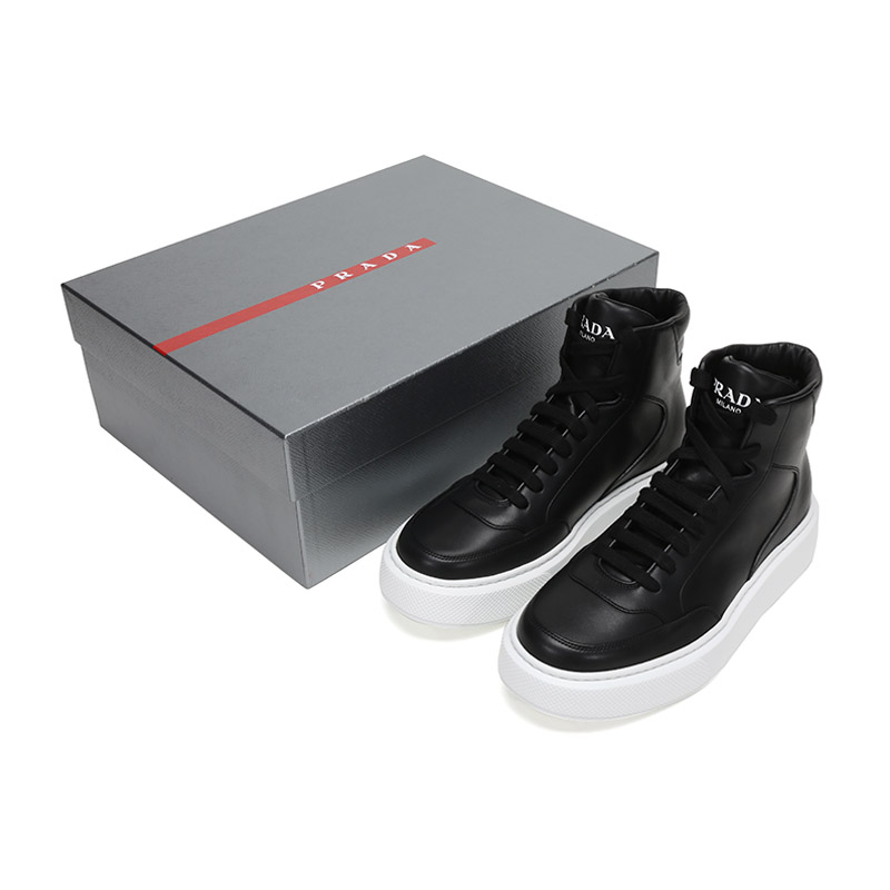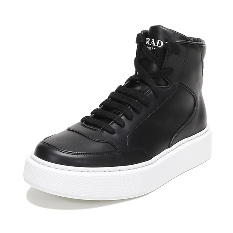 品牌:PRADA/普拉达产地:意大利等国(批次不同、产地不同)款式:男士颜色:黑色白色材质:鞋面:牛皮;鞋底:橡胶;内里:皮革结构:鞋长约28.8cm,鞋宽约11.4cm,跟高约4cm(此为5码测量)