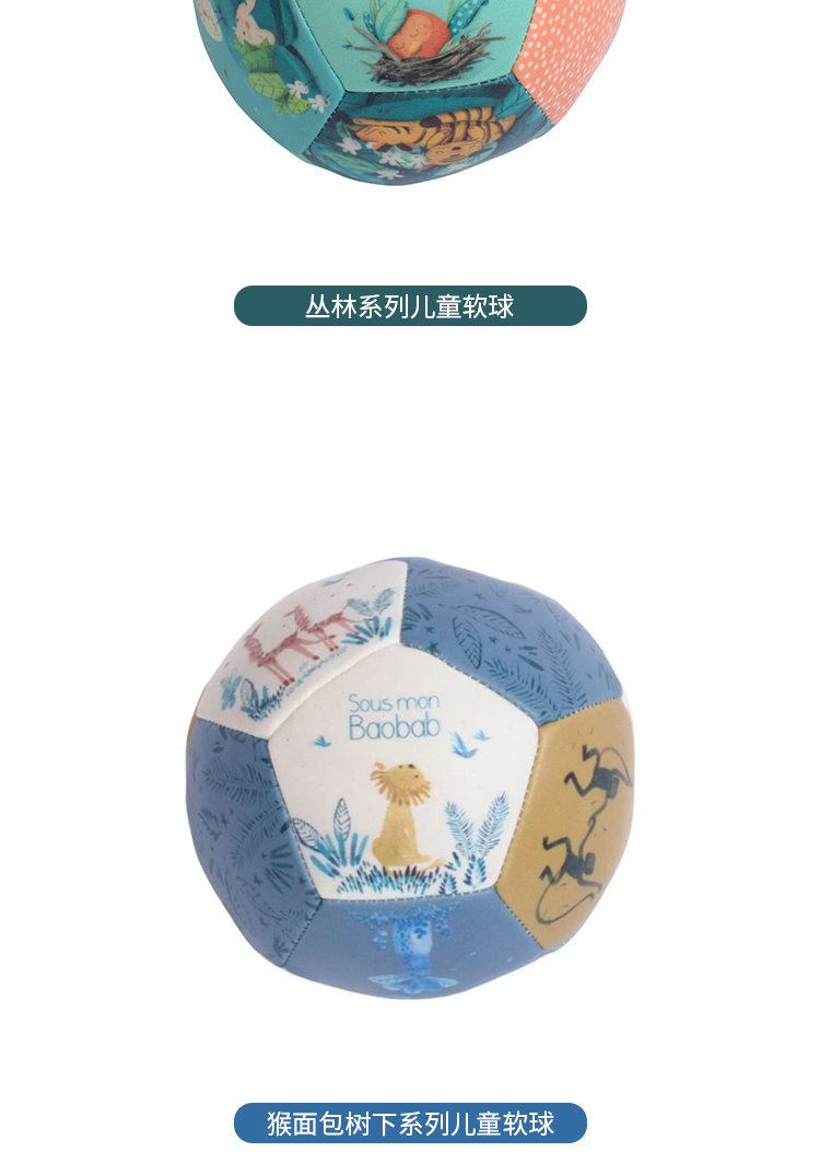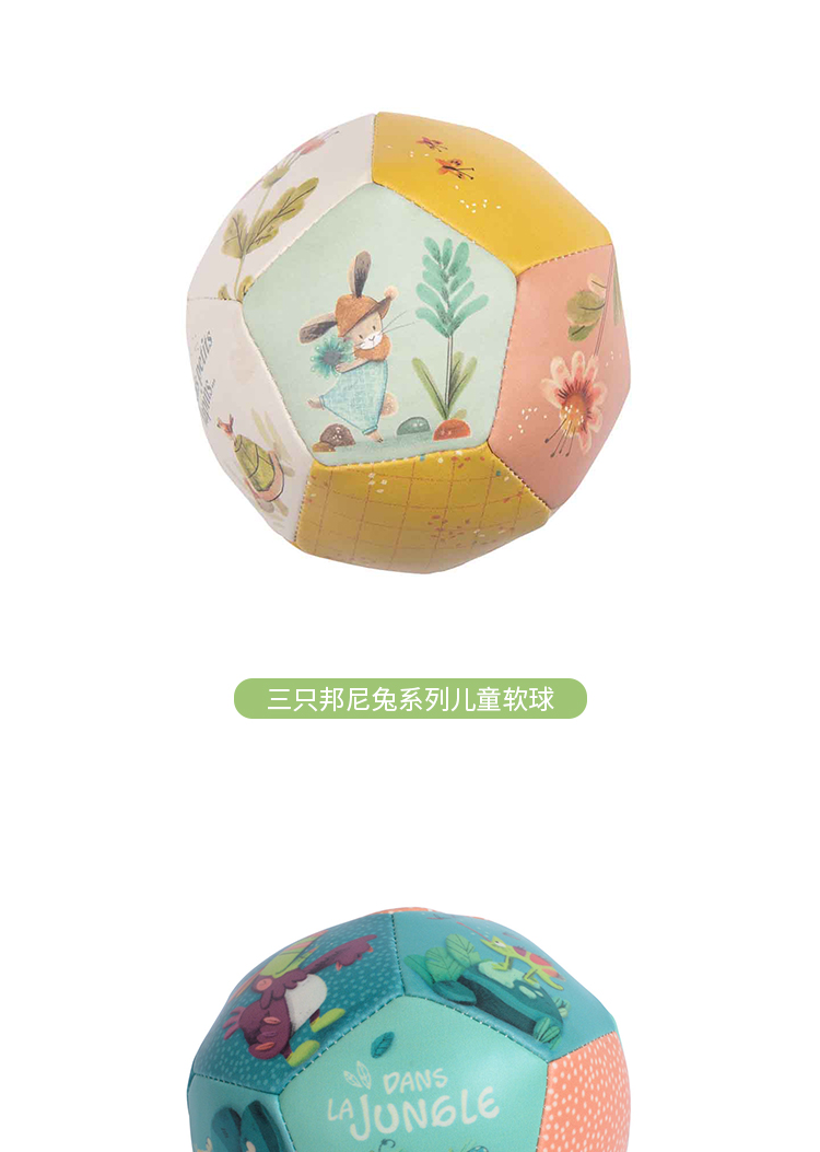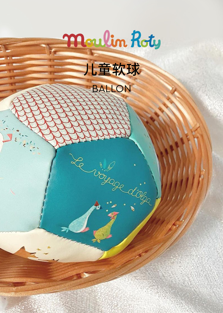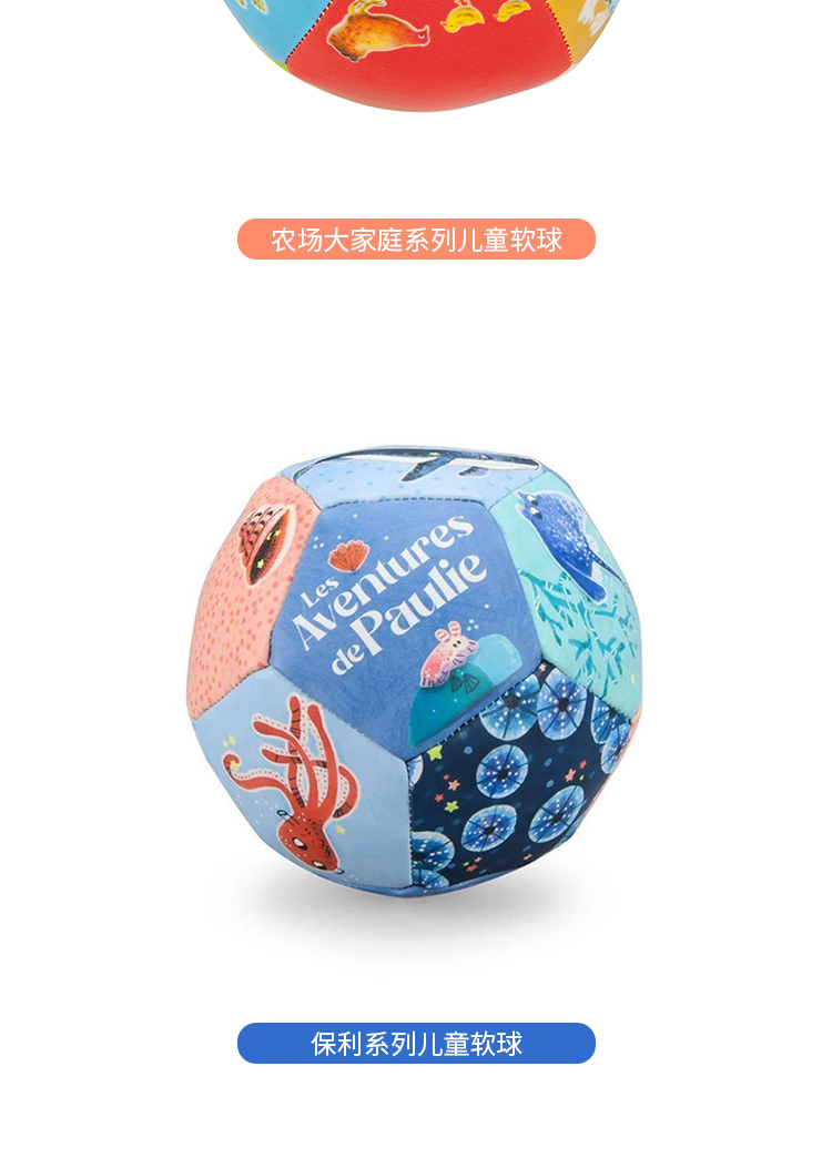 Moulin Roty 保利的冒险之旅主题 儿童软球 适合1岁+ 球体饱满柔软 不易受伤 保利的冒险之旅系列 法国品牌-676510