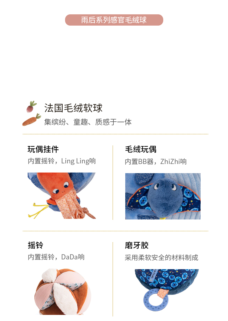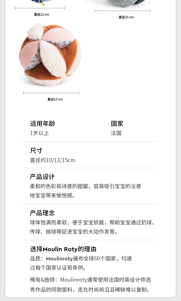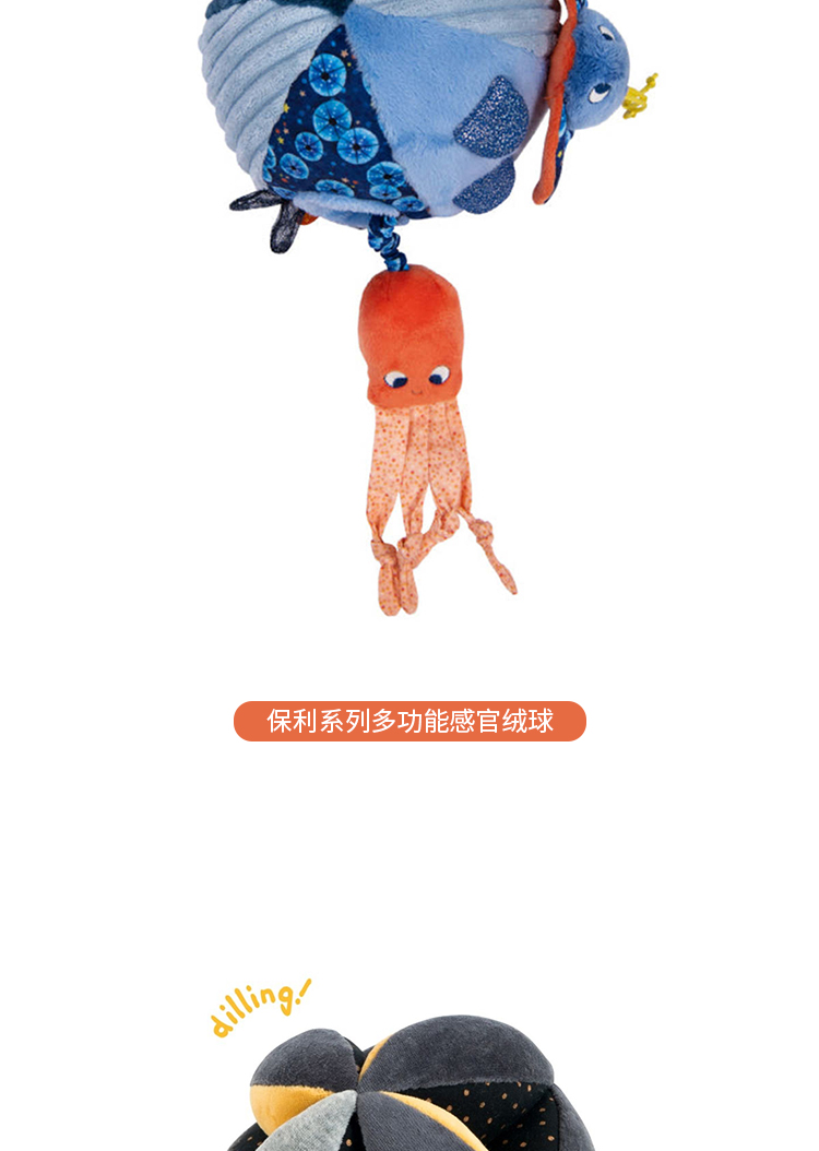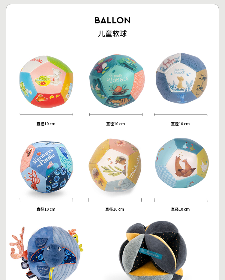 Moulin Roty 保利的冒险之旅主题 儿童软球 适合1岁+ 球体饱满柔软 不易受伤 保利的冒险之旅系列 法国品牌-676510