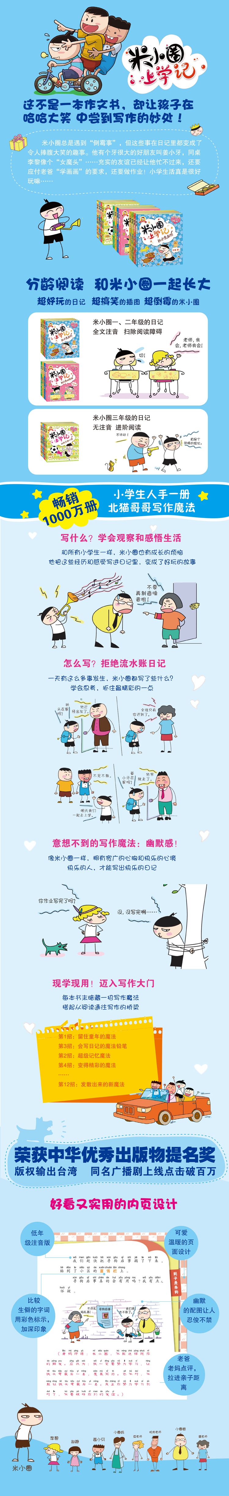 好玩的日记、好笑的插图、倒霉的米小圈。注音全彩美绘版《米小圈上学记》,送给低年级小朋友的一本书。书后还附有北猫哥哥的日记魔法,教小朋友轻松搞定写日记。