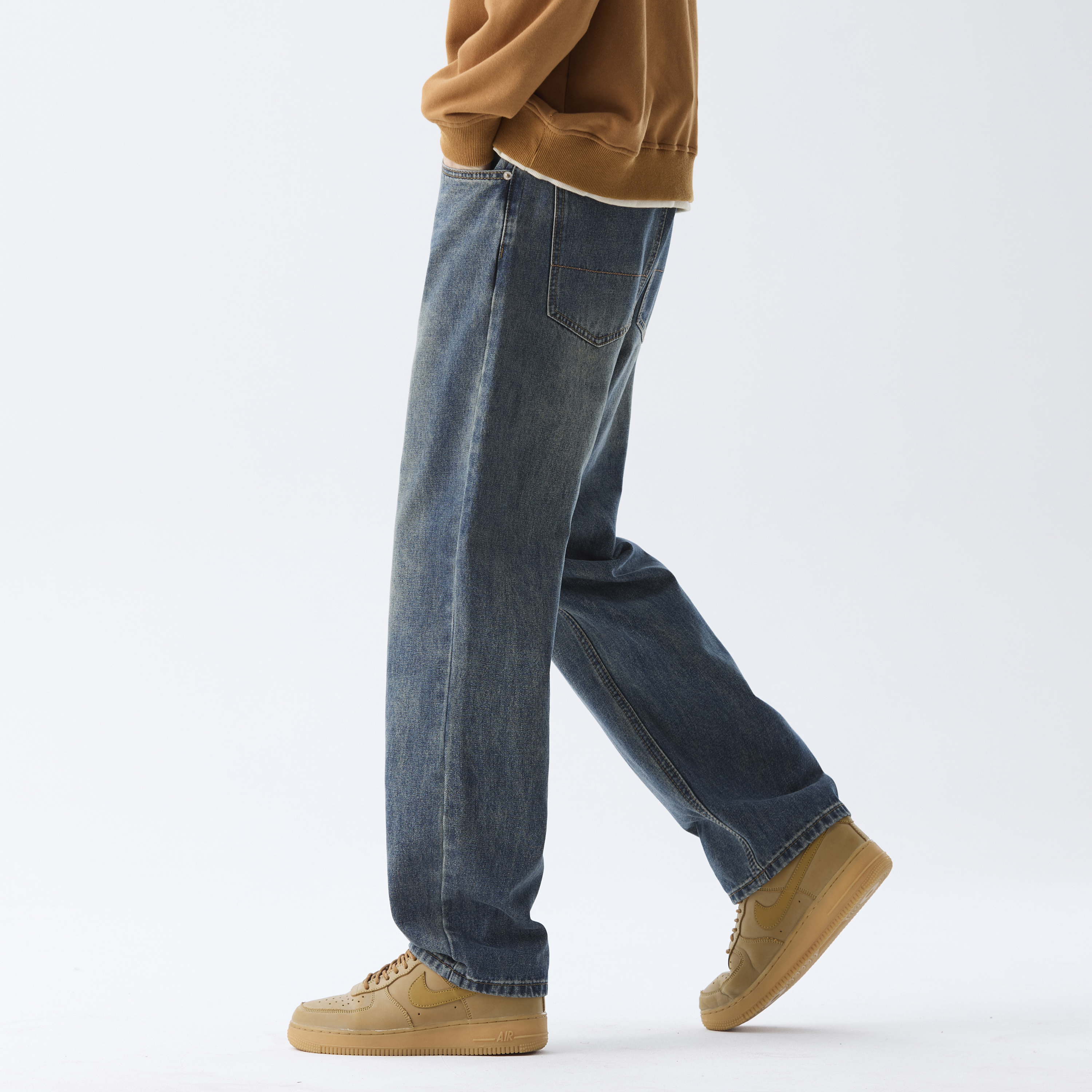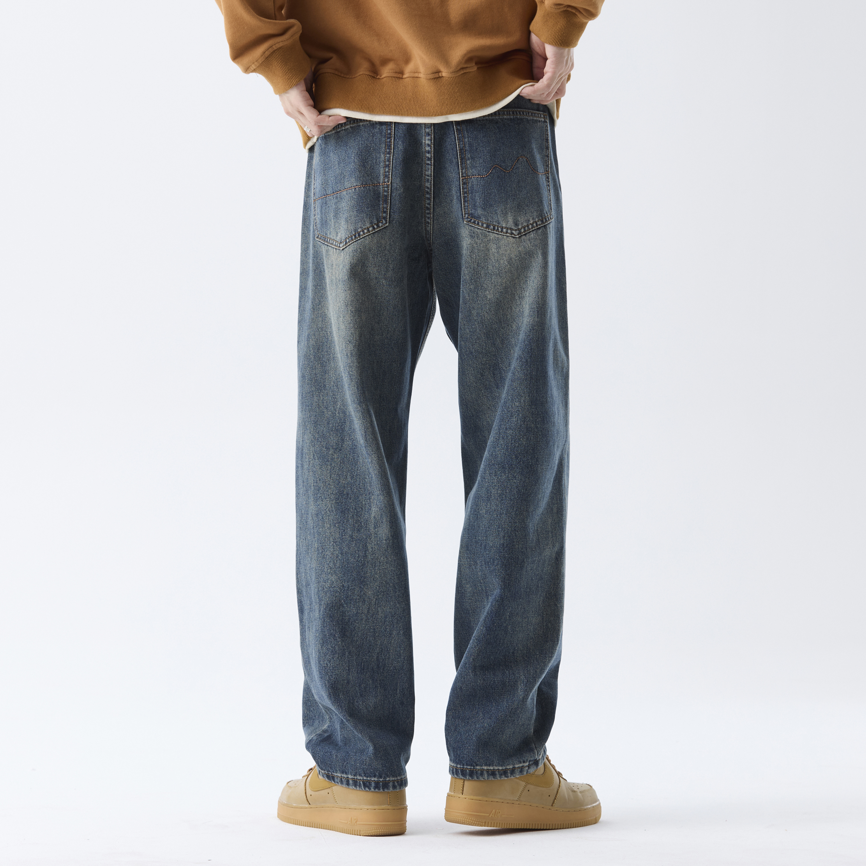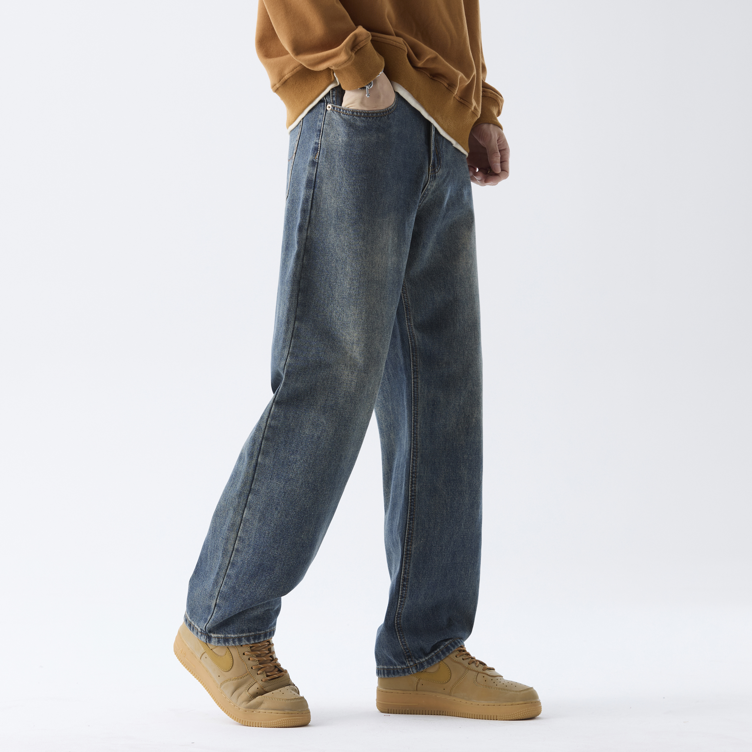 赤兔嗨购男装宽松阔腿牛仔裤2024年秋冬新款水洗长裤宽腿修饰身形