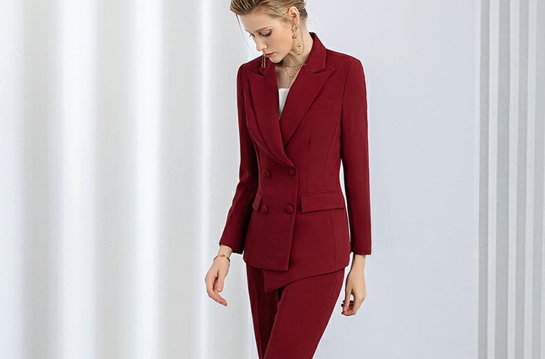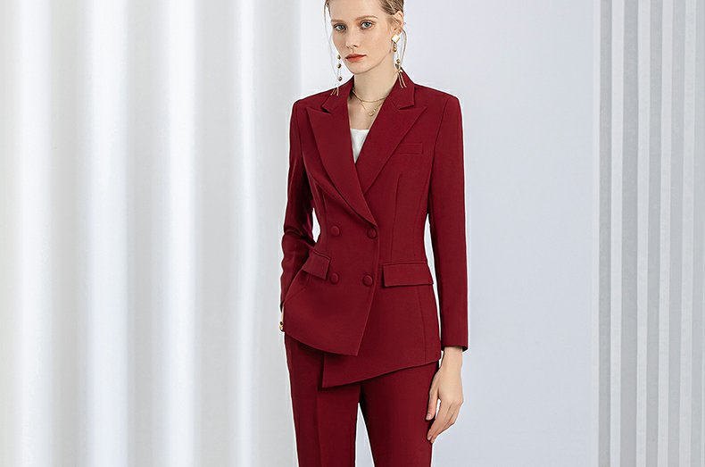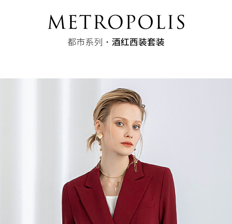 IWY/酒红色西装套装秋冬新款高端商务职业套装设计感小众西服正装C11358+P11358