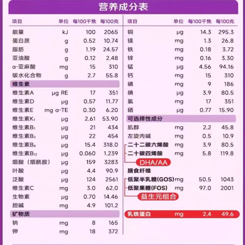 2.乳铁蛋白,双益生元,几种宝宝关键营养元素均有添加;