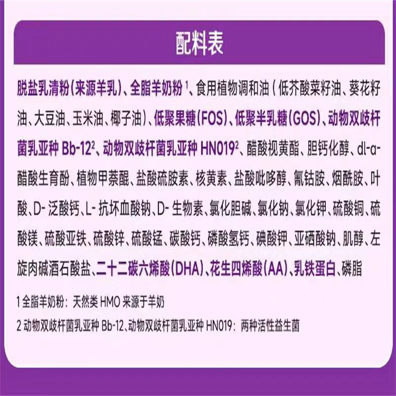 4.添加bb-12益生菌,添加hn019益生菌;是双益生菌;