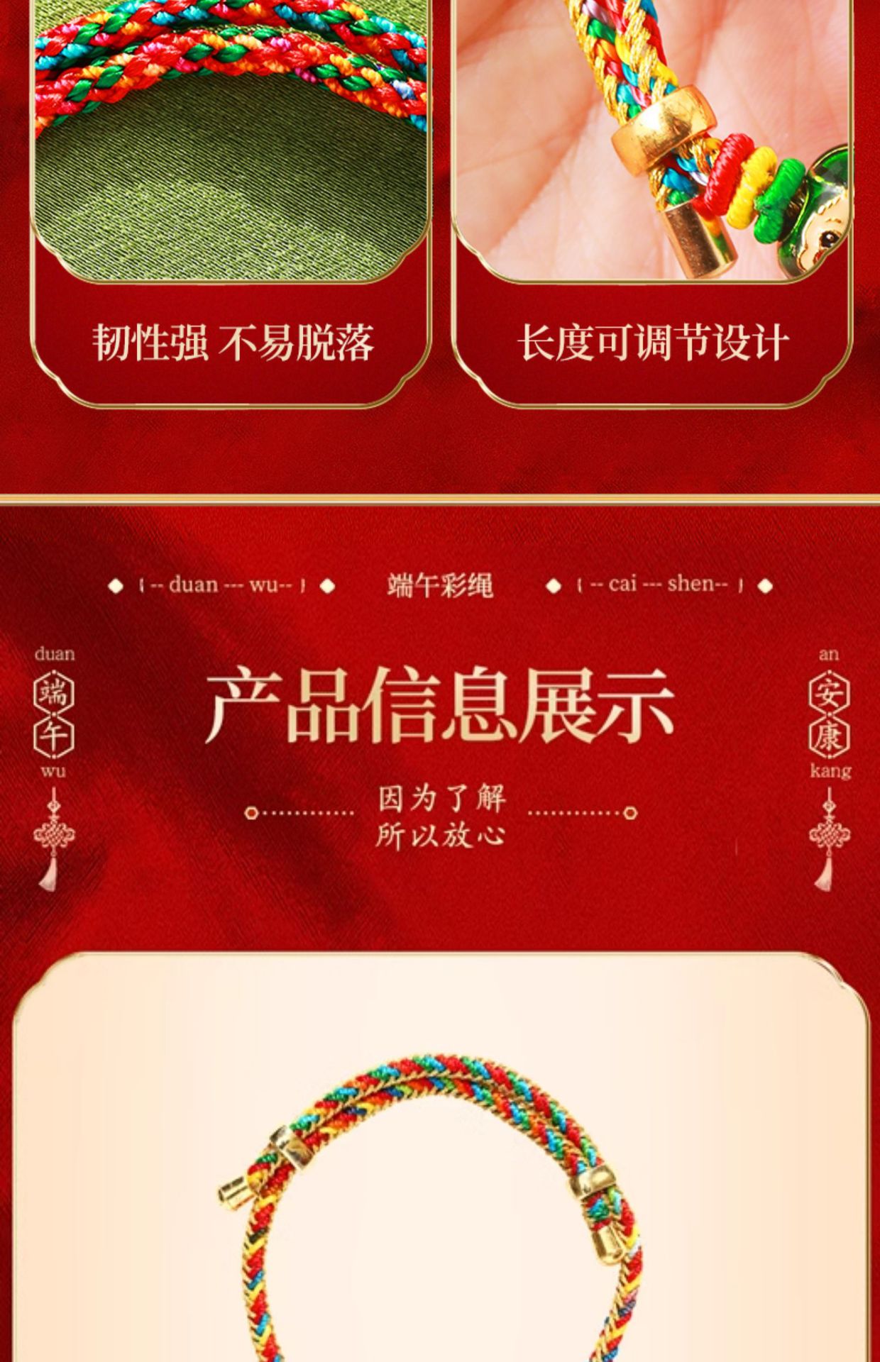 【端午安康!吉祥如意】端午节五彩绳手链手工编织红绳儿童成人宝宝手绳金榜题名礼物。ry 商品图3