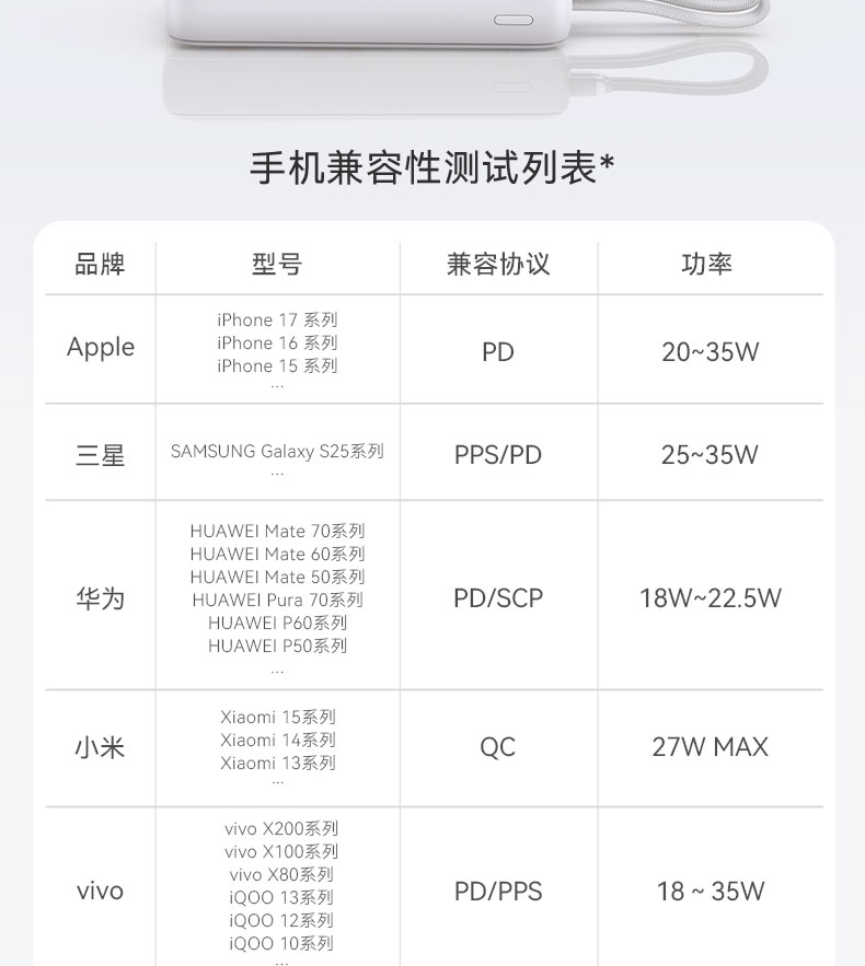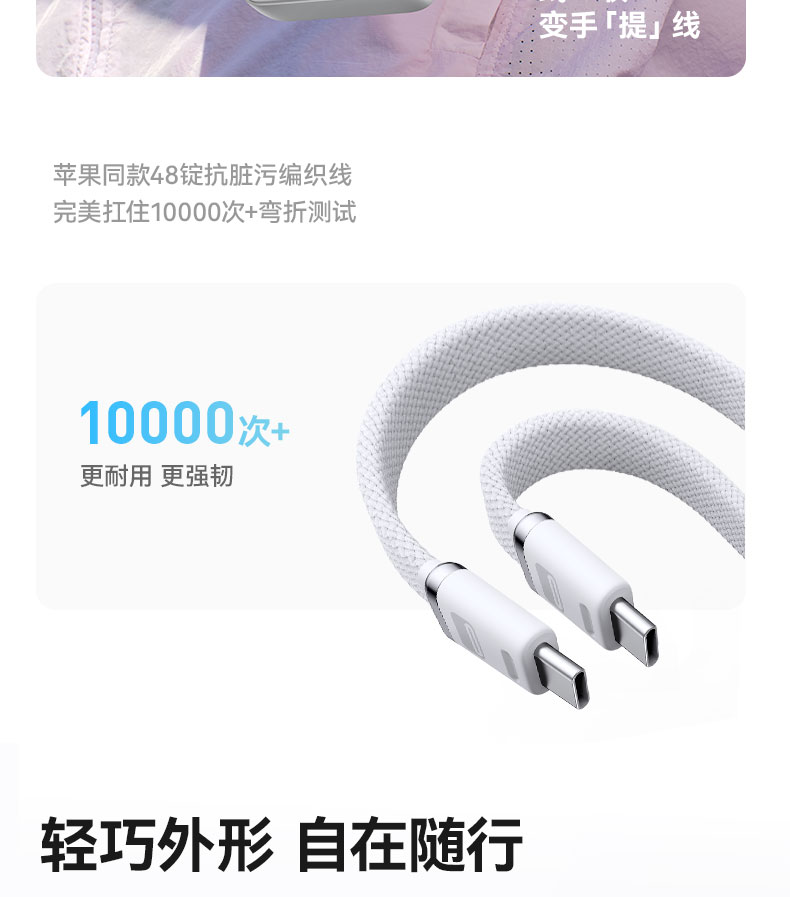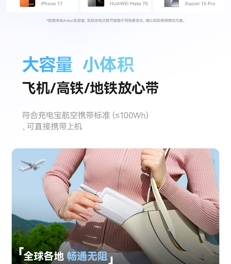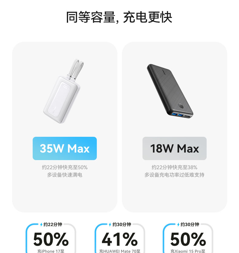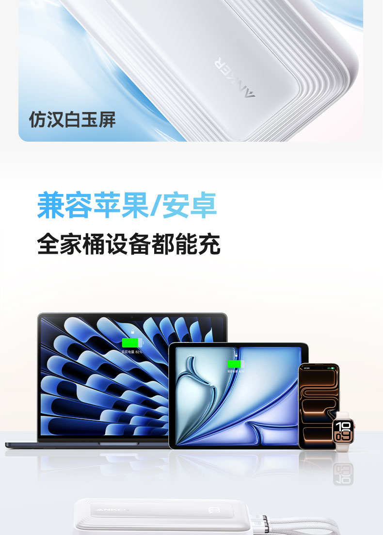 【新品】Anker安克 自带双C线10000mAh移动电源 35W快充可上飞机适配苹果17/小米/华为手机 A110L