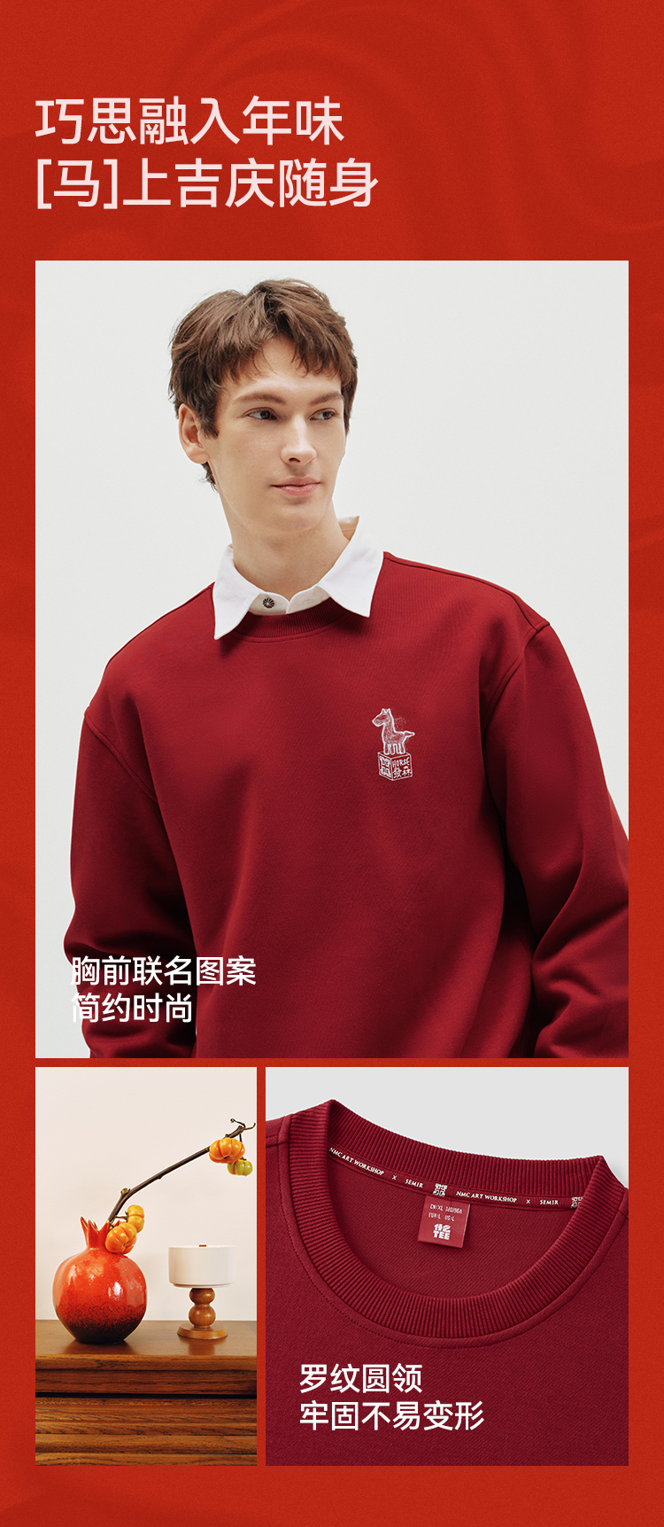 商场同款|森马国博衍艺联名系列卫衣男春小宽松圆领上衣2026新款