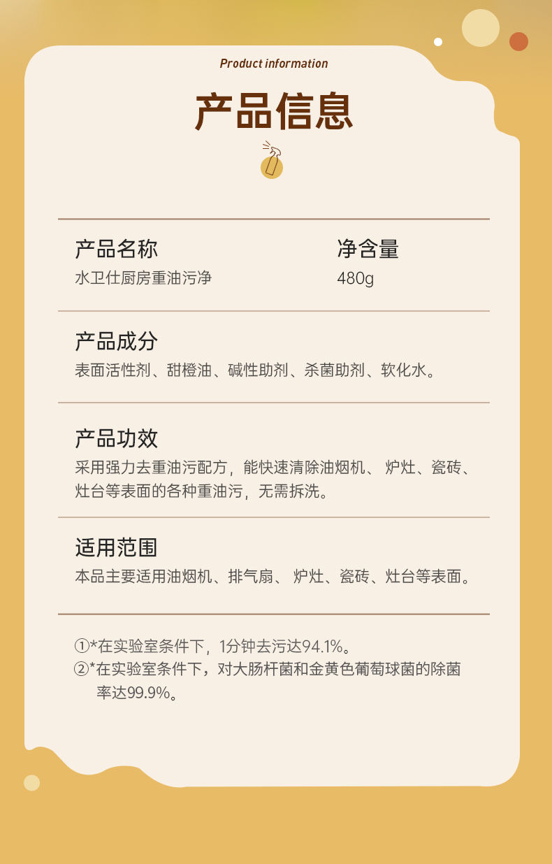 【爆款超低价预售 急单慎拍】水卫仕厨房重油污净抽油烟机清洁剂清洗油渍污垢家用强力去污神器