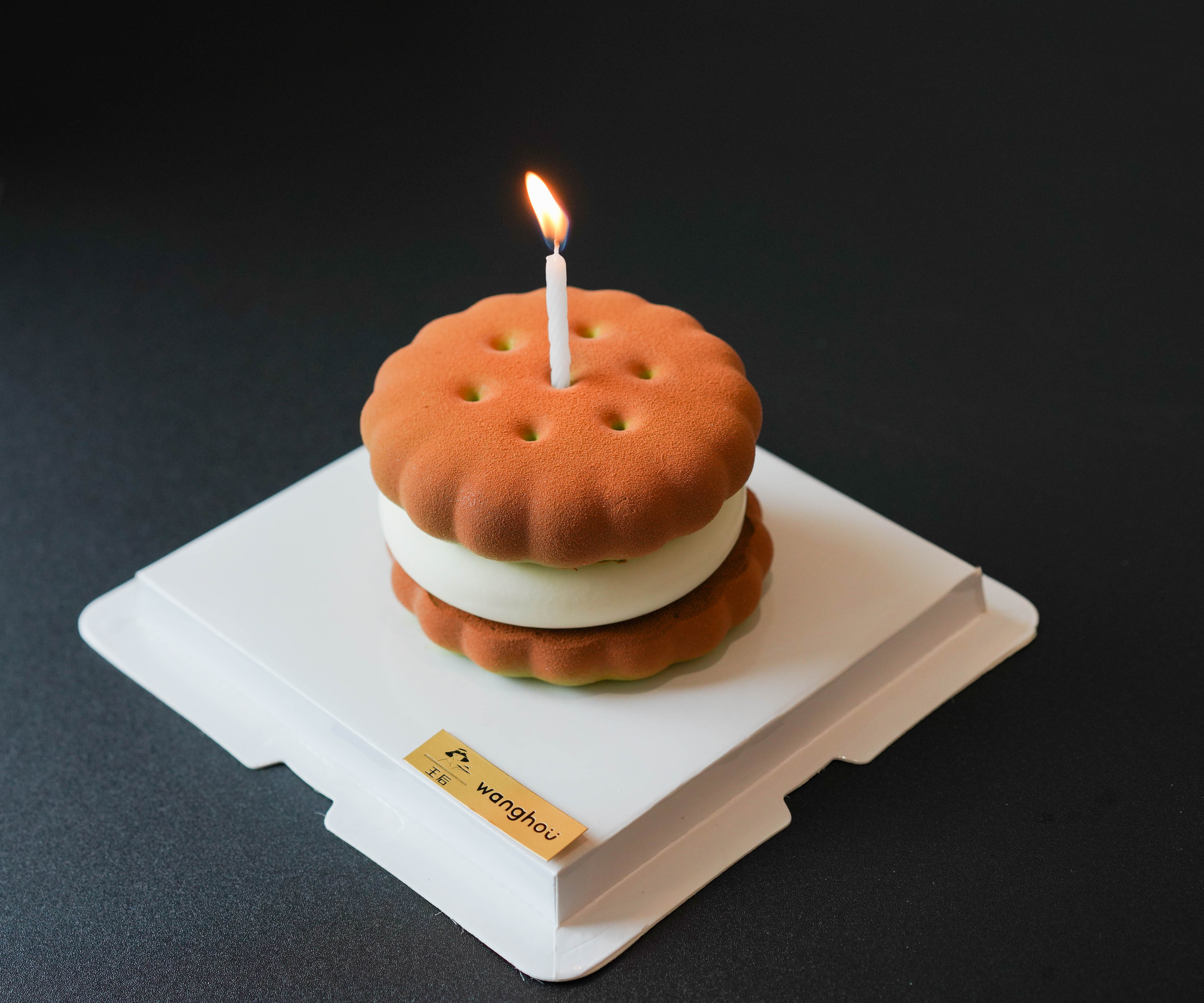 开心果覆盆子慕斯,小小的饼干造型却有丰富的层次感!