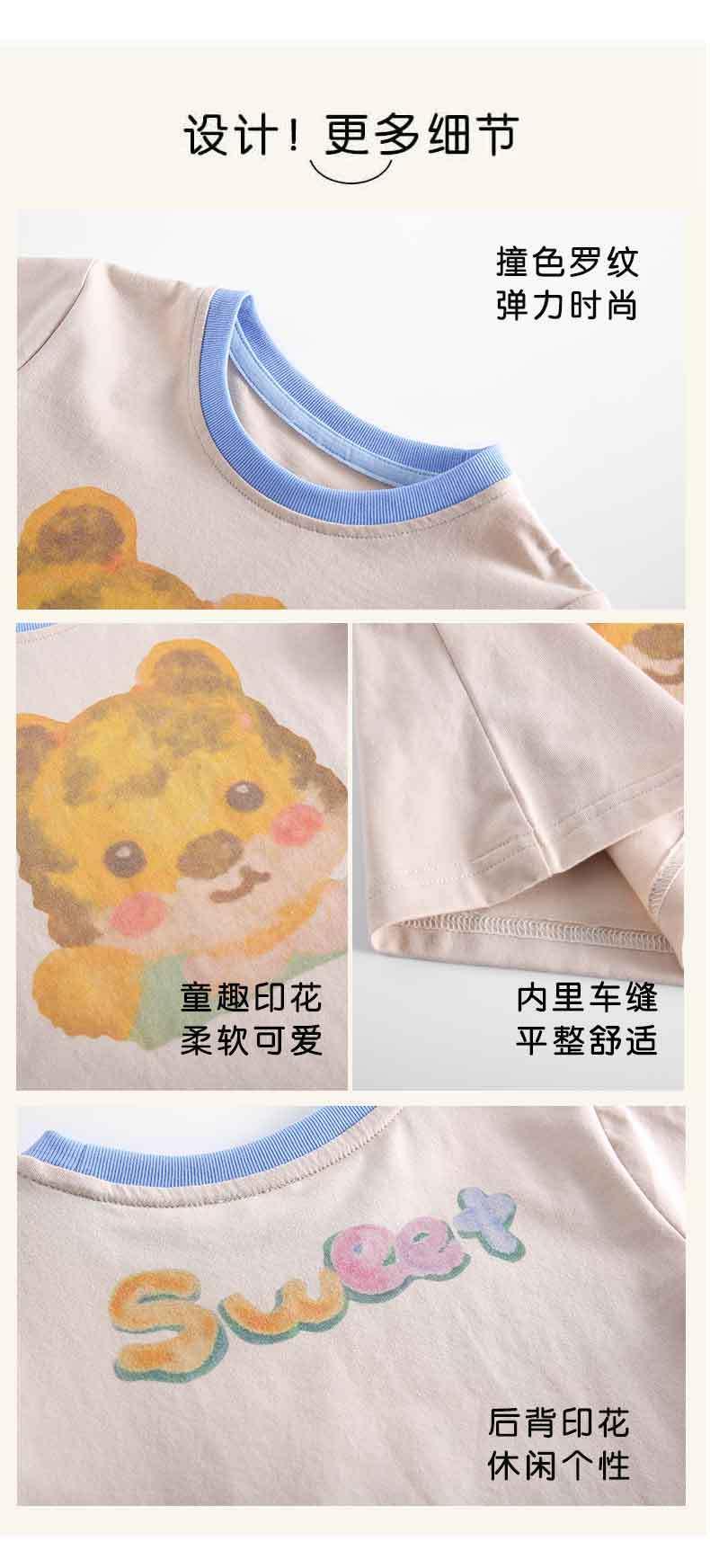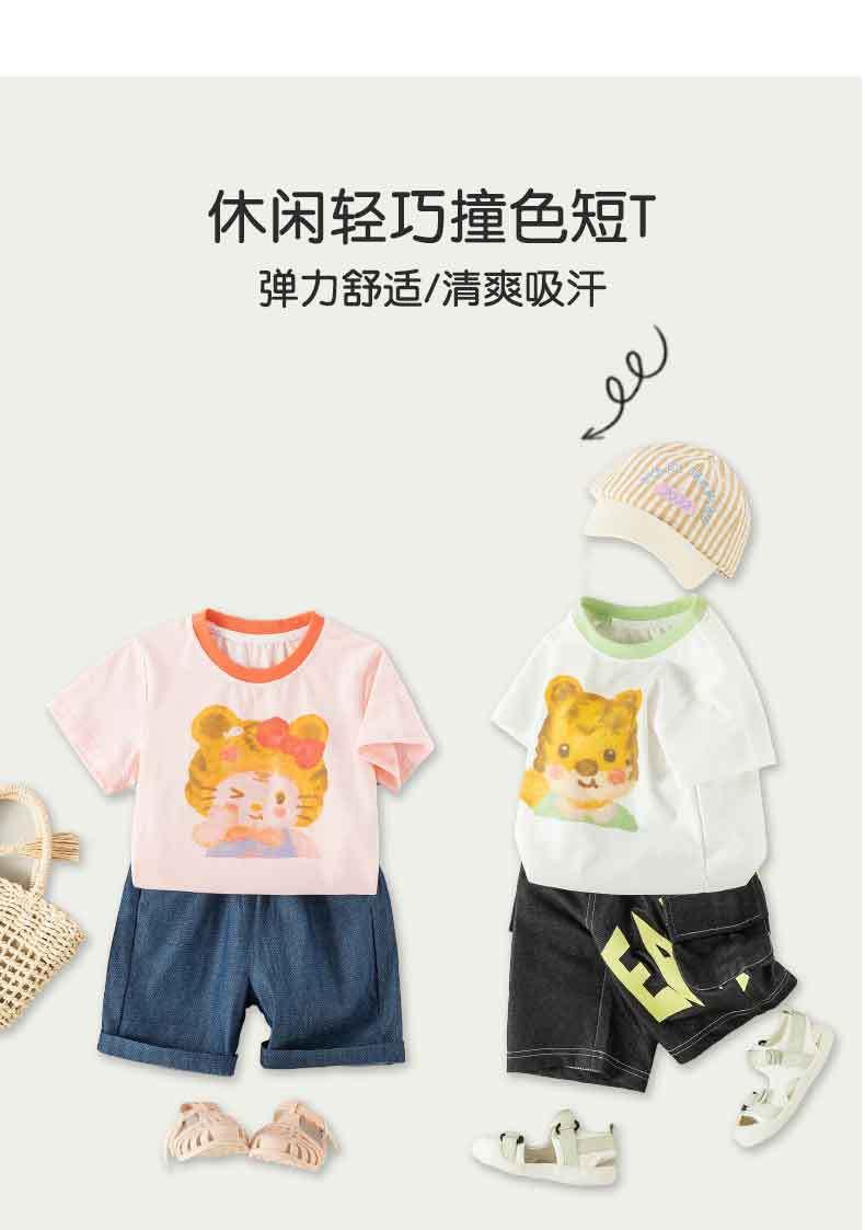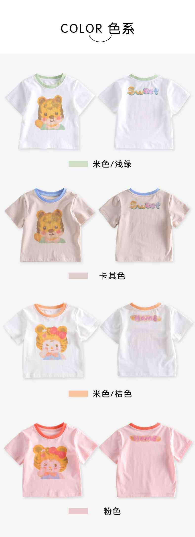 儿童t恤夏季薄款男童短袖上衣宝宝卡通老虎短t夏装韩版女童体恤夏