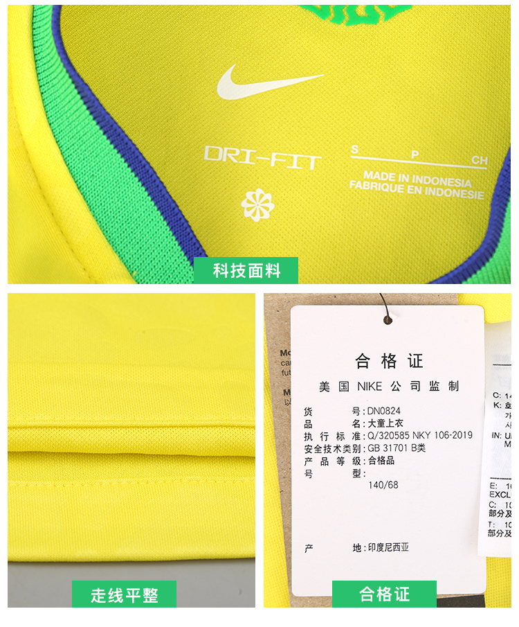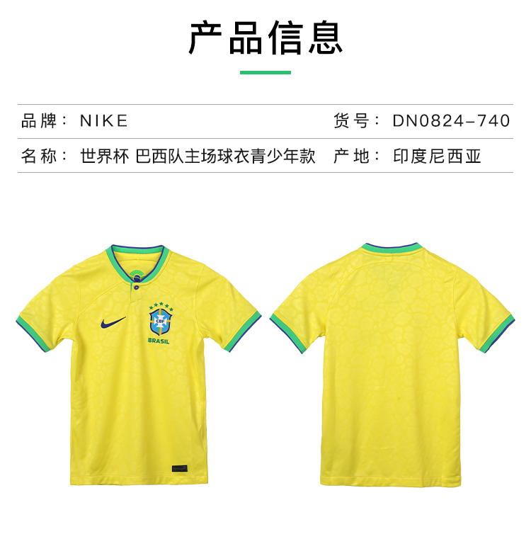 NIKE/耐克 CBF Y NK DF STAD JSY SS HM 2022世界杯 巴西队主场球衣 青少年款